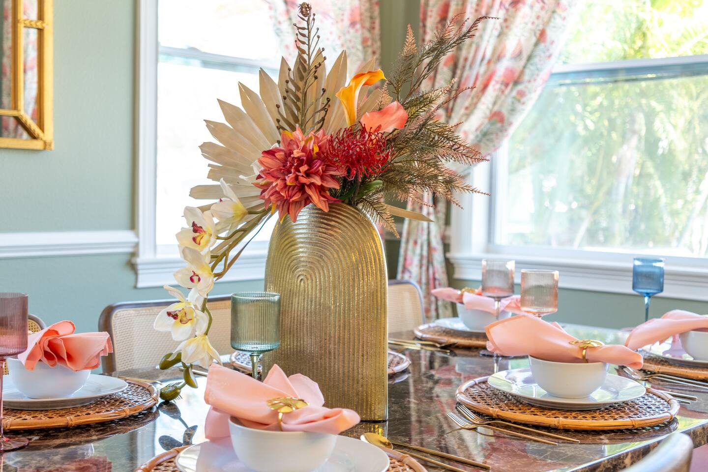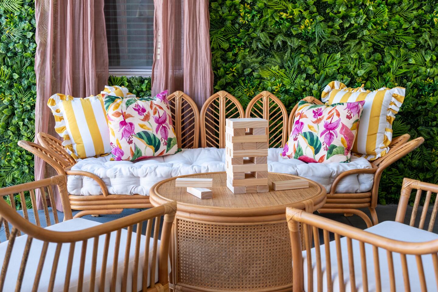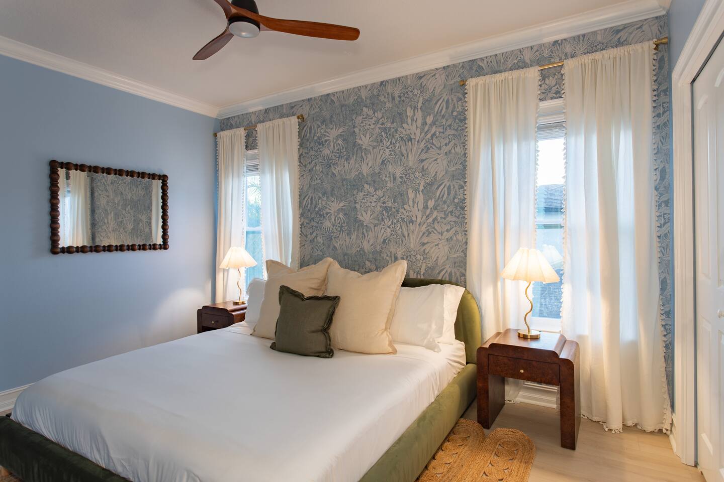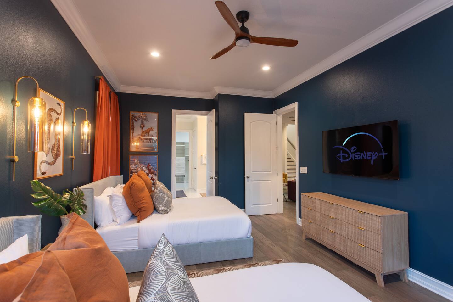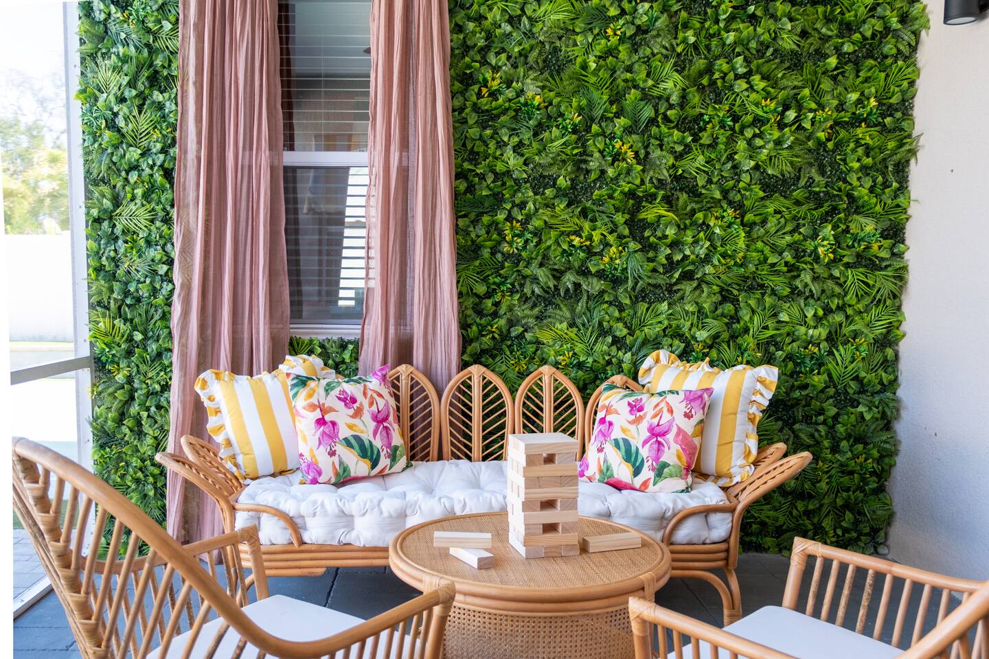 Welcome to The Palm Royale - A Gatsby Coastal Estate. Step into timeless elegance at this spacious two-story retreat. Just minutes from beaches, this home is 4 bedroom, 3.5 baths + a bonus bunkbed area! Spend sun-filled afternoons beside your heated pool, challenge friends to mini golf or pickleball then gather beneath the pergola for cocktails by the fire and outdoor cinema. Inside, the climate-controlled game lounge invites guests to unwind with poker, record spinning, and billiards!