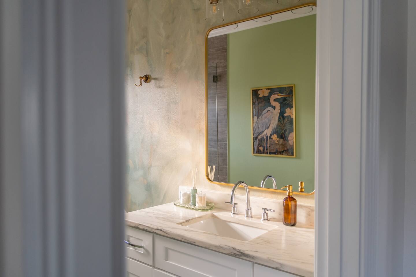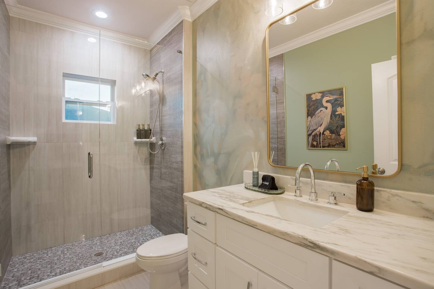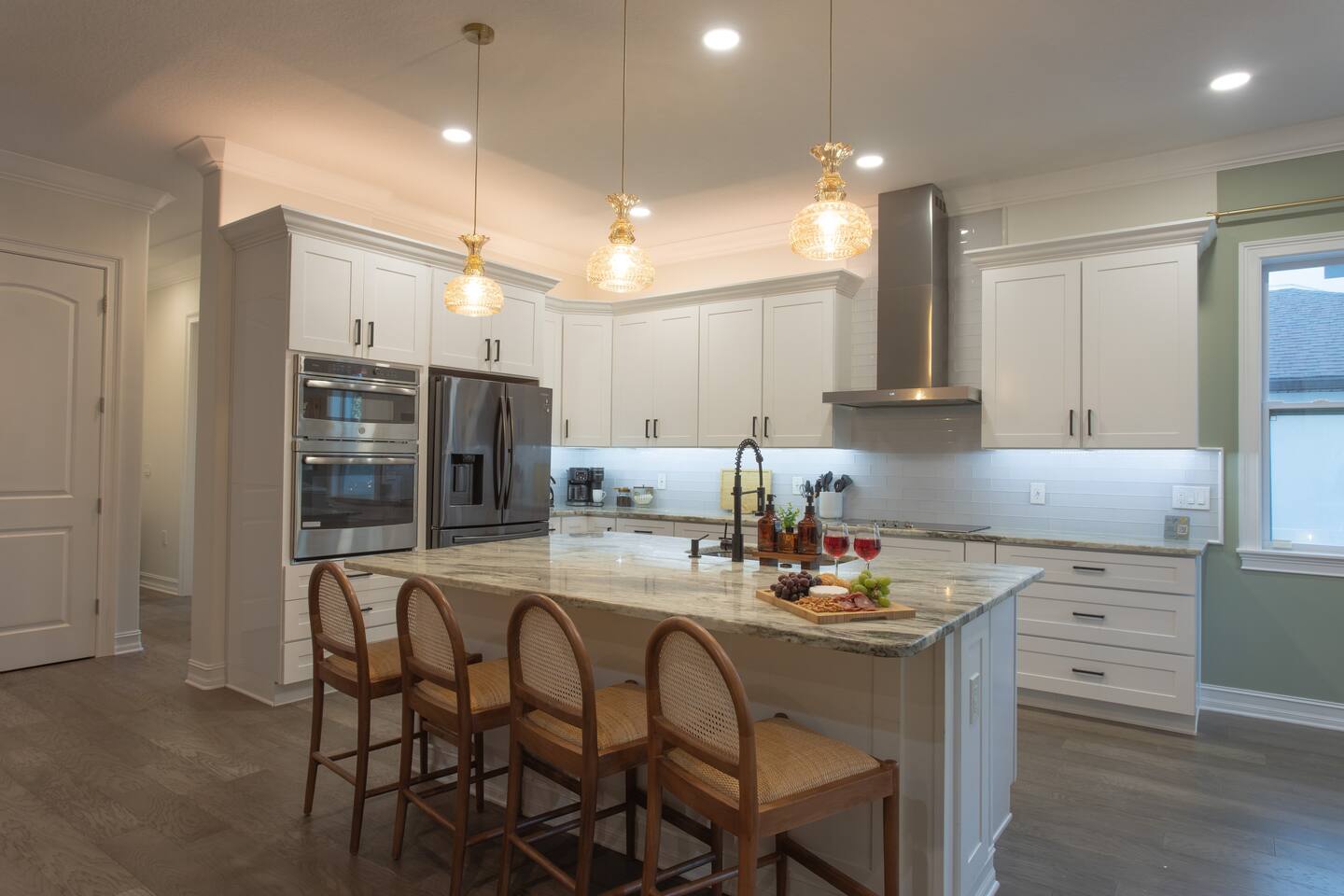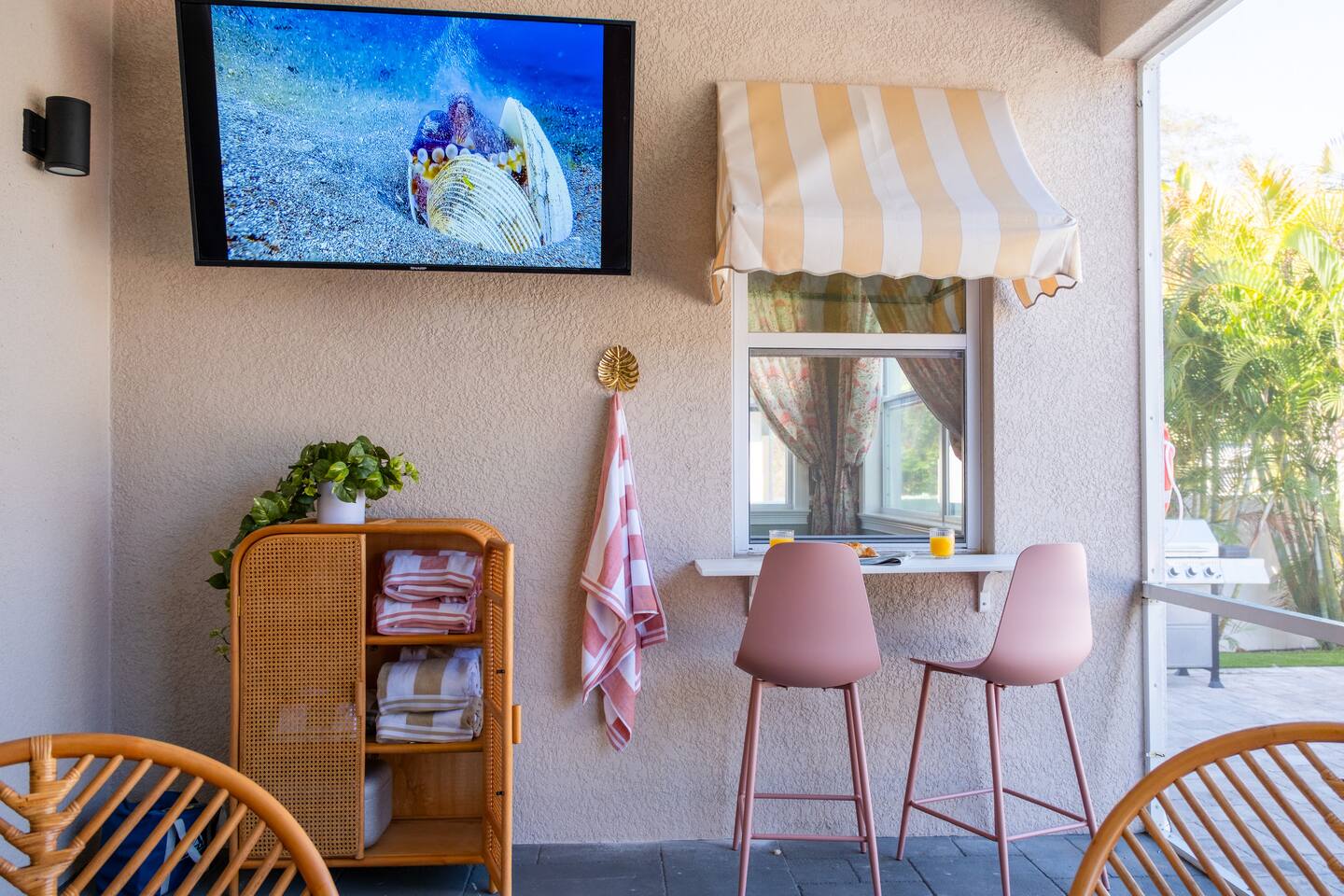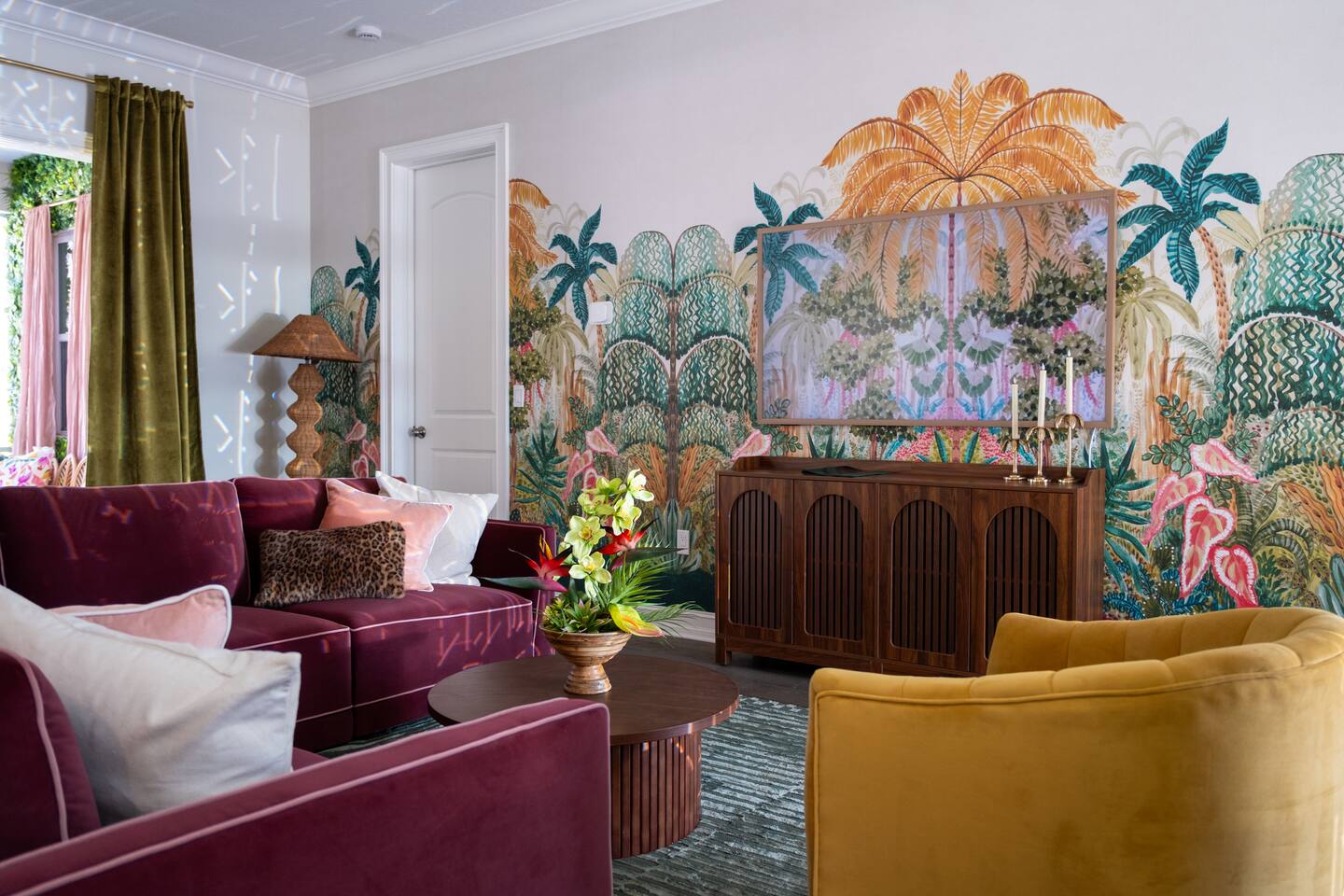 Welcome to The Palm Royale - A Gatsby Coastal Estate. Step into timeless elegance at this spacious two-story retreat. Just minutes from beaches, this home is 4 bedroom, 3.5 baths + a bonus bunkbed area! Spend sun-filled afternoons beside your heated pool, challenge friends to mini golf or pickleball then gather beneath the pergola for cocktails by the fire and outdoor cinema. Inside, the climate-controlled game lounge invites guests to unwind with poker, record spinning, and billiards!