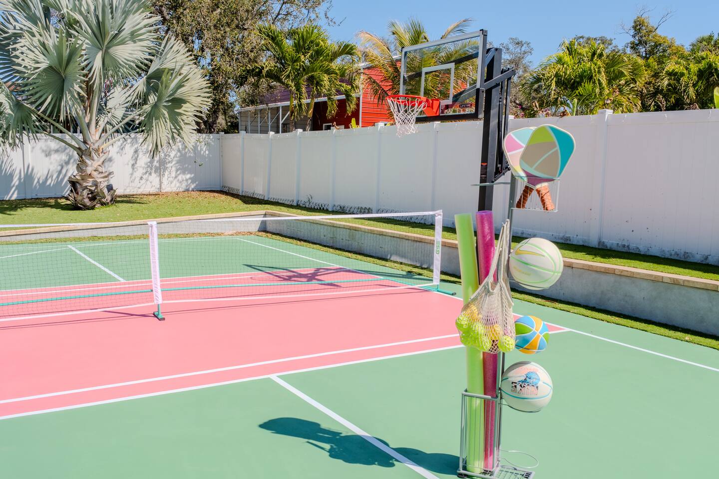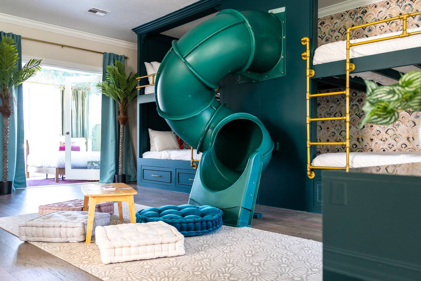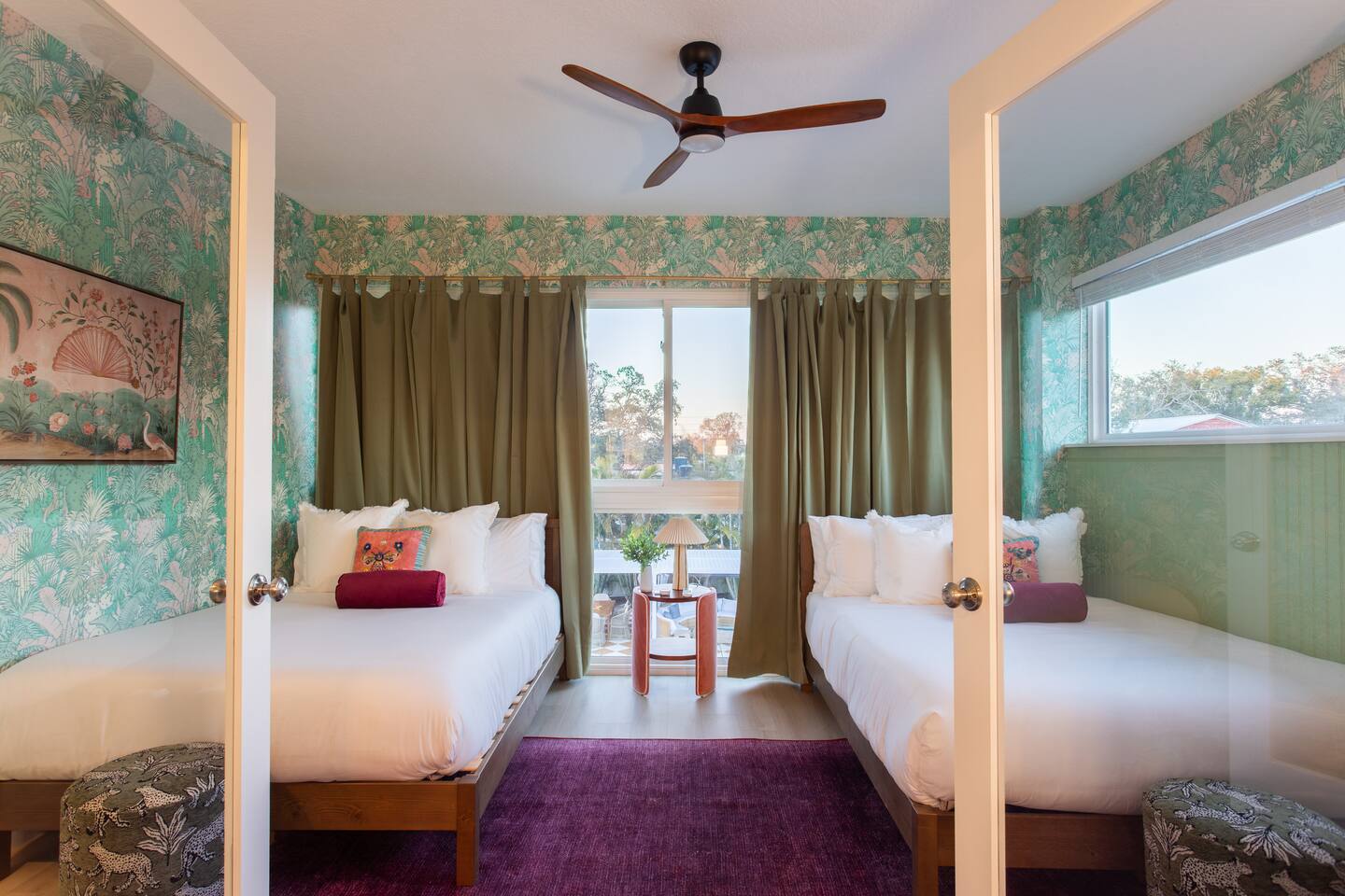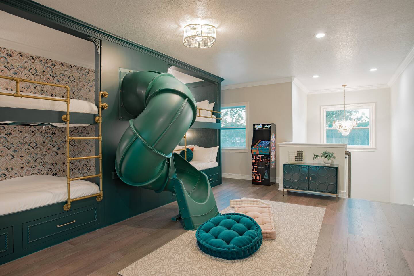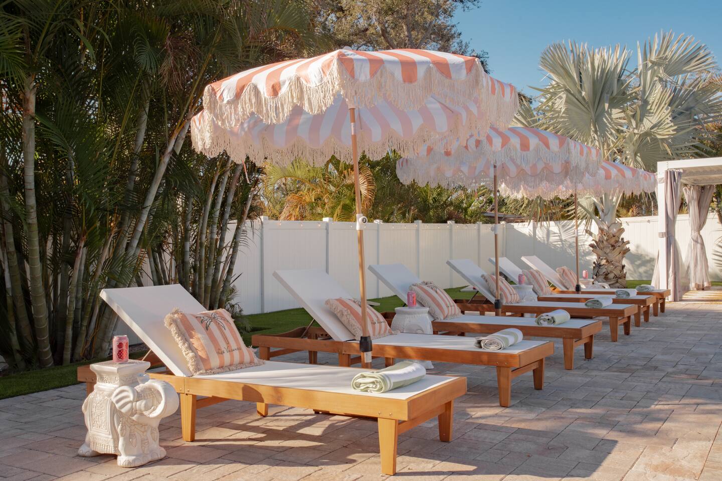 🛏️ Sleeping Arrangements- Sleeps up to 16-20 guests! Thoughtfully designed to give groups plenty of space to unwind. First Floor • Bedroom 1 — Two Queen beds with ensuite bathroom Second Floor • Bonus Bunk Area — Four Queen beds in bunk bed style • Bedroom 2 — King bed with ensuite bathroom • Bedroom 3 — Two Full beds • Bedroom 4 — Two Queen beds • Additional full guest bathroom Fresh linens, towels, and essentials are provided for every guest. 🐘The Estate Designed for comfort, style, and memorable group stays. • 2,700 sq ft two-story home • 4 bedrooms + spacious bunkbed bonus area • 3 full bathrooms (2 ensuite) • Elegant open-concept living spaces • Smart TVs (Roku + Google TV) • Climate-controlled garage lounge and game room • Samsung washer & dryer Rich finishes, warm lighting, and darker tones create a relaxed yet refined atmosphere perfect for gathering together. 🍽️ Chef-Ready Kitchen The fully equipped kitchen makes hosting effortless. • Keurig Duo (drip + single K-cup) • Toaster • Tea kettle • Blender • Air fryer • Full cookware set • Full glassware set • Refrigerator with filtered water & ice maker • Paper towels and essentials provided Perfect for group dinners, celebratory meals, or late-night snacks after a day by the pool. 🎮 Garage Lounge & Game Room A stylish entertainment space for relaxed evenings. • Billiards table • Poker table • Vintage-style record player with a collection of our favorite records • Climate-controlled comfort • Arcade machine located upstairs in the bunk suite room The perfect place for friendly games, music, and late-night conversations. 🌴 Private Backyard Oasis Step outside to your palm-lined outdoor retreat. • Heated pool (3–5 ft depth) • Sun shelf loungers in the pool • Outdoor pergola lounge • Outdoor dining seating for up to 6 • Projector screen for outdoor movies • 4-hole mini golf • Pickleball court • Basketball hoop • Cornhole • Giant Jenga • Propane fire table in the pergola • BBQ Grill and Utensils • Pool floats available 🏝️ Heated Pool – Additional Fee Required • Pool: $30/day and must be on at least 2 consecutive days • Pool Target Temp: 84-87°F 👶 Family Amenities • Pack-n-play • High chair • Kids utensils Baby amenities are located in the downstairs bedroom closet. 🏖️ Beach Day Essentials Located in the outdoor shed: • 6–8 beach chairs • Umbrella • Cooler • Beach wagon Beach towels are available in the patio cabinet and downstairs bedroom closet. 📍 Prime St. Petersburg Location Conveniently located in a quiet residential neighborhood of St. Petersburg, with easy access to some of the Gulf Coast’s best beaches, dining, and attractions. • 5 minutes to Madeira Beach • 15 minutes to St. Pete Beach • 6 minutes to Redington Beach • 9 minutes to John's Pass Village & Boardwalk • 30 minutes to St. Pete Pier and downtown St. Pete • 30 minutes to St. Pete–Clearwater International Airport • 45 minutes to Tampa International Airport 🚗 Parking • Driveway parking for 4–6 vehicles • Up to 2 additional vehicles with tandem parking • No street parking permitted 📌 House Rules Respecting the home ensures a wonderful stay for all guests. • Maximum occupancy: 20 guests • Quiet hours: 10 PM – 8 AM • No smoking or vaping • No open flames indoors • Thermostat must remain between 69°F and 78°F • No shoes inside the house • Use of pool and recreational equipment is at guest’s own risk • Please keep doors and windows closed to prevent pests • Report any damage promptly • Respect neighbors and the property at all times 🔒 Security For safety and property protection: • Exterior security cameras located at the front, side, and backyard of the home (no audio recording). The Palm Royale is perfect for elegant group getaways, celebrations, and memorable coastal retreats, where sun-drenched afternoons and glamorous evenings come together in true Florida style. 🌴✨