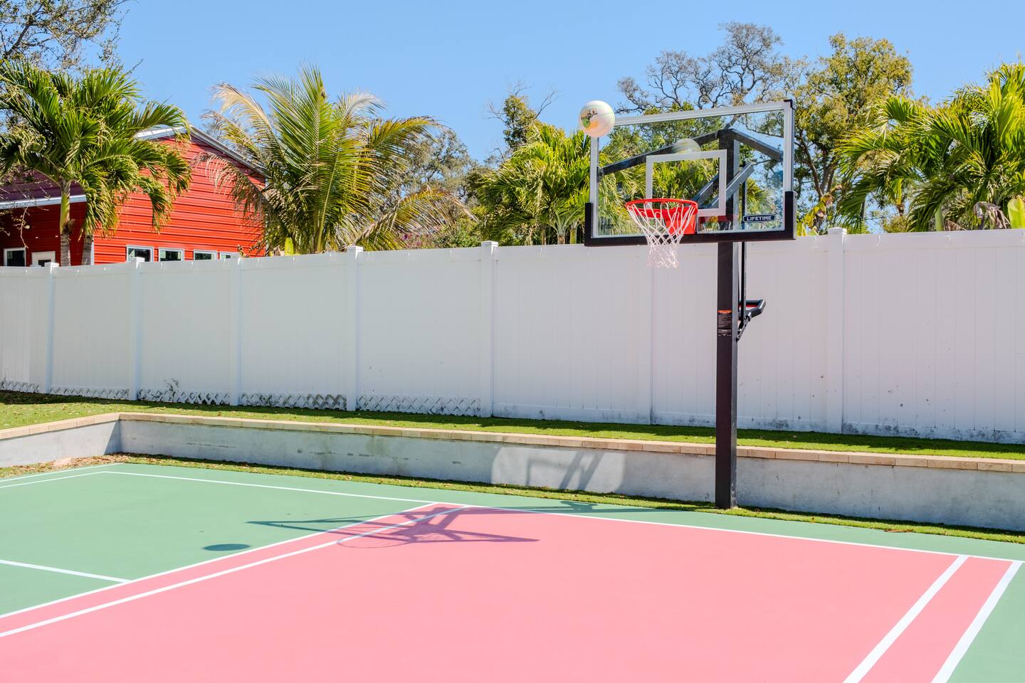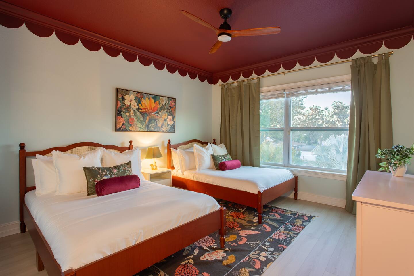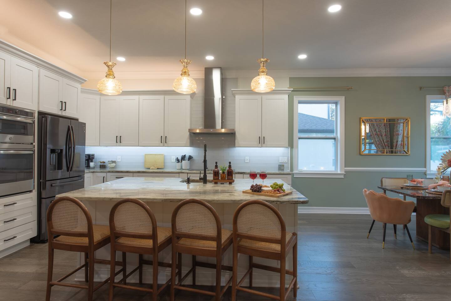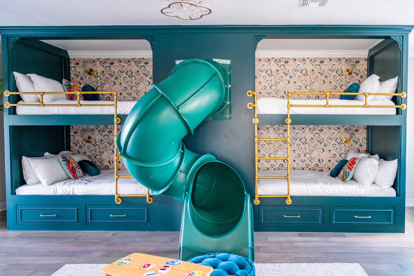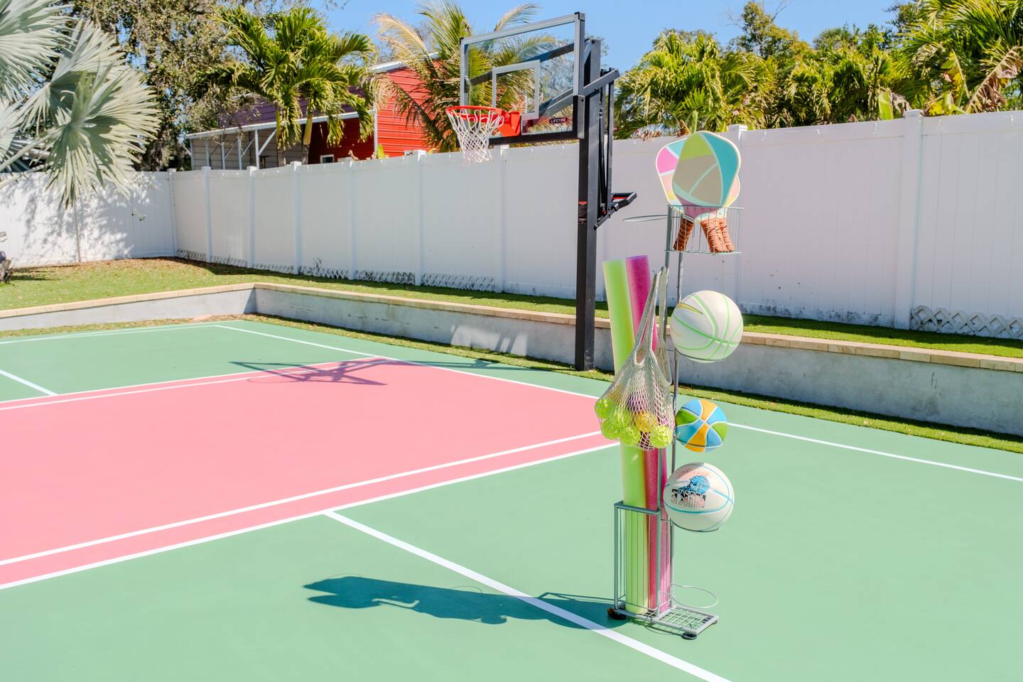 🛏️ Sleeping Arrangements- Sleeps up to 16-20 guests! Thoughtfully designed to give groups plenty of space to unwind. First Floor • Bedroom 1 — Two Queen beds with ensuite bathroom Second Floor • Bonus Bunk Area — Four Queen beds in bunk bed style • Bedroom 2 — King bed with ensuite bathroom • Bedroom 3 — Two Full beds • Bedroom 4 — Two Queen beds • Additional full guest bathroom Fresh linens, towels, and essentials are provided for every guest. 🐘The Estate Designed for comfort, style, and memorable group stays. • 2,700 sq ft two-story home • 4 bedrooms + spacious bunkbed bonus area • 3 full bathrooms (2 ensuite) • Elegant open-concept living spaces • Smart TVs (Roku + Google TV) • Climate-controlled garage lounge and game room • Samsung washer & dryer Rich finishes, warm lighting, and darker tones create a relaxed yet refined atmosphere perfect for gathering together. 🍽️ Chef-Ready Kitchen The fully equipped kitchen makes hosting effortless. • Keurig Duo (drip + single K-cup) • Toaster • Tea kettle • Blender • Air fryer • Full cookware set • Full glassware set • Refrigerator with filtered water & ice maker • Paper towels and essentials provided Perfect for group dinners, celebratory meals, or late-night snacks after a day by the pool. 🎮 Garage Lounge & Game Room A stylish entertainment space for relaxed evenings. • Billiards table • Poker table • Vintage-style record player with a collection of our favorite records • Climate-controlled comfort • Arcade machine located upstairs in the bunk suite room The perfect place for friendly games, music, and late-night conversations. 🌴 Private Backyard Oasis Step outside to your palm-lined outdoor retreat. • Heated pool (3–5 ft depth) • Sun shelf loungers in the pool • Outdoor pergola lounge • Outdoor dining seating for up to 6 • Projector screen for outdoor movies • 4-hole mini golf • Pickleball court • Basketball hoop • Cornhole • Giant Jenga • Propane fire table in the pergola • BBQ Grill and Utensils • Pool floats available 🏝️ Heated Pool – Additional Fee Required • Pool: $30/day and must be on at least 2 consecutive days • Pool Target Temp: 84-87°F 👶 Family Amenities • Pack-n-play • High chair • Kids utensils Baby amenities are located in the downstairs bedroom closet. 🏖️ Beach Day Essentials Located in the outdoor shed: • 6–8 beach chairs • Umbrella • Cooler • Beach wagon Beach towels are available in the patio cabinet and downstairs bedroom closet. 📍 Prime St. Petersburg Location Conveniently located in a quiet residential neighborhood of St. Petersburg, with easy access to some of the Gulf Coast’s best beaches, dining, and attractions. • 5 minutes to Madeira Beach • 15 minutes to St. Pete Beach • 6 minutes to Redington Beach • 9 minutes to John's Pass Village & Boardwalk • 30 minutes to St. Pete Pier and downtown St. Pete • 30 minutes to St. Pete–Clearwater International Airport • 45 minutes to Tampa International Airport 🚗 Parking • Driveway parking for 4–6 vehicles • Up to 2 additional vehicles with tandem parking • No street parking permitted 📌 House Rules Respecting the home ensures a wonderful stay for all guests. • Maximum occupancy: 20 guests • Quiet hours: 10 PM – 8 AM • No smoking or vaping • No open flames indoors • Thermostat must remain between 69°F and 78°F • No shoes inside the house • Use of pool and recreational equipment is at guest’s own risk • Please keep doors and windows closed to prevent pests • Report any damage promptly • Respect neighbors and the property at all times 🔒 Security For safety and property protection: • Exterior security cameras located at the front, side, and backyard of the home (no audio recording). The Palm Royale is perfect for elegant group getaways, celebrations, and memorable coastal retreats, where sun-drenched afternoons and glamorous evenings come together in true Florida style. 🌴✨