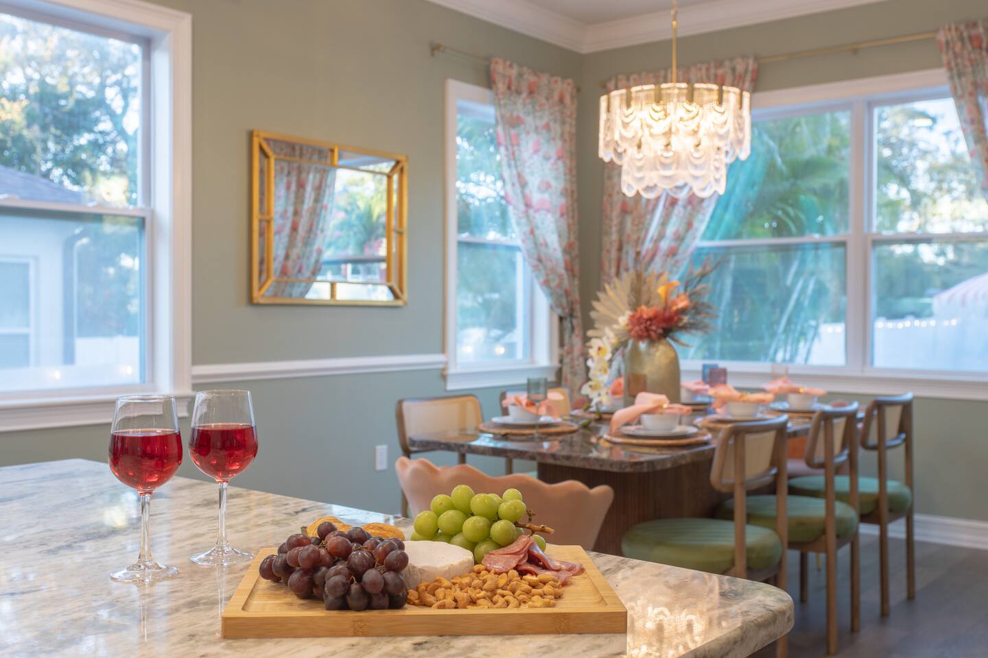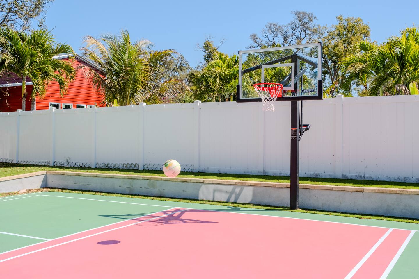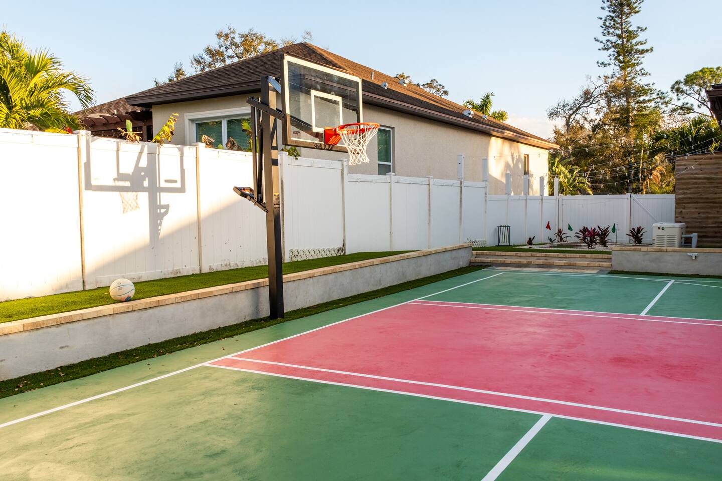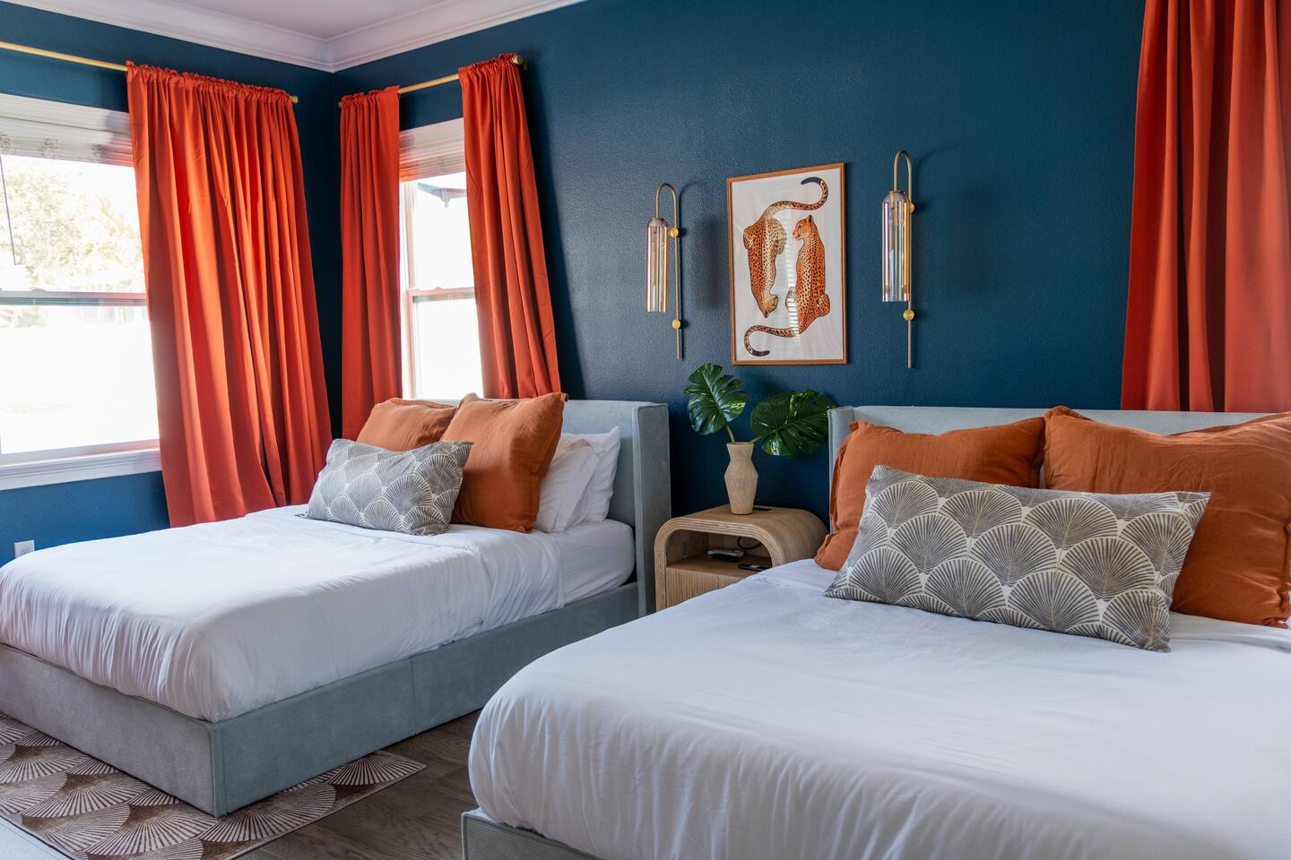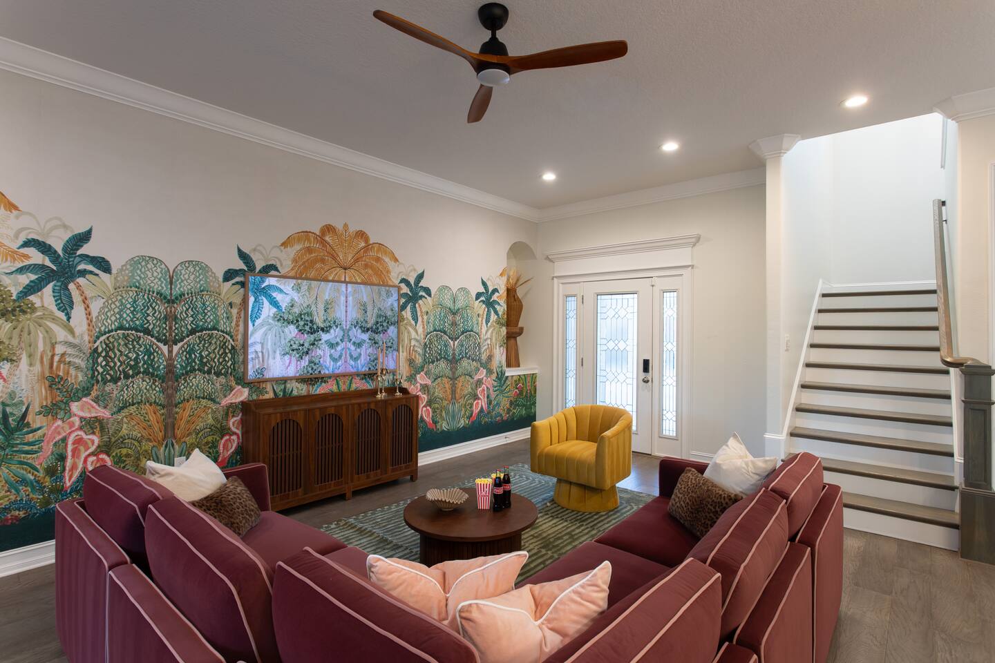 🛏️ Sleeping Arrangements- Sleeps up to 16-20 guests! Thoughtfully designed to give groups plenty of space to unwind. First Floor • Bedroom 1 — Two Queen beds with ensuite bathroom Second Floor • Bonus Bunk Area — Four Queen beds in bunk bed style • Bedroom 2 — King bed with ensuite bathroom • Bedroom 3 — Two Full beds • Bedroom 4 — Two Queen beds • Additional full guest bathroom Fresh linens, towels, and essentials are provided for every guest. 🐘The Estate Designed for comfort, style, and memorable group stays. • 2,700 sq ft two-story home • 4 bedrooms + spacious bunkbed bonus area • 3 full bathrooms (2 ensuite) • Elegant open-concept living spaces • Smart TVs (Roku + Google TV) • Climate-controlled garage lounge and game room • Samsung washer & dryer Rich finishes, warm lighting, and darker tones create a relaxed yet refined atmosphere perfect for gathering together. 🍽️ Chef-Ready Kitchen The fully equipped kitchen makes hosting effortless. • Keurig Duo (drip + single K-cup) • Toaster • Tea kettle • Blender • Air fryer • Full cookware set • Full glassware set • Refrigerator with filtered water & ice maker • Paper towels and essentials provided Perfect for group dinners, celebratory meals, or late-night snacks after a day by the pool. 🎮 Garage Lounge & Game Room A stylish entertainment space for relaxed evenings. • Billiards table • Poker table • Vintage-style record player with a collection of our favorite records • Climate-controlled comfort • Arcade machine located upstairs in the bunk suite room The perfect place for friendly games, music, and late-night conversations. 🌴 Private Backyard Oasis Step outside to your palm-lined outdoor retreat. • Heated pool (3–5 ft depth) • Sun shelf loungers in the pool • Outdoor pergola lounge • Outdoor dining seating for up to 6 • Projector screen for outdoor movies • 4-hole mini golf • Pickleball court • Basketball hoop • Cornhole • Giant Jenga • Propane fire table in the pergola • BBQ Grill and Utensils • Pool floats available 🏝️ Heated Pool – Additional Fee Required • Pool: $30/day and must be on at least 2 consecutive days • Pool Target Temp: 84-87°F 👶 Family Amenities • Pack-n-play • High chair • Kids utensils Baby amenities are located in the downstairs bedroom closet. 🏖️ Beach Day Essentials Located in the outdoor shed: • 6–8 beach chairs • Umbrella • Cooler • Beach wagon Beach towels are available in the patio cabinet and downstairs bedroom closet. 📍 Prime St. Petersburg Location Conveniently located in a quiet residential neighborhood of St. Petersburg, with easy access to some of the Gulf Coast’s best beaches, dining, and attractions. • 5 minutes to Madeira Beach • 15 minutes to St. Pete Beach • 6 minutes to Redington Beach • 9 minutes to John's Pass Village & Boardwalk • 30 minutes to St. Pete Pier and downtown St. Pete • 30 minutes to St. Pete–Clearwater International Airport • 45 minutes to Tampa International Airport 🚗 Parking • Driveway parking for 4–6 vehicles • Up to 2 additional vehicles with tandem parking • No street parking permitted 📌 House Rules Respecting the home ensures a wonderful stay for all guests. • Maximum occupancy: 20 guests • Quiet hours: 10 PM – 8 AM • No smoking or vaping • No open flames indoors • Thermostat must remain between 69°F and 78°F • No shoes inside the house • Use of pool and recreational equipment is at guest’s own risk • Please keep doors and windows closed to prevent pests • Report any damage promptly • Respect neighbors and the property at all times 🔒 Security For safety and property protection: • Exterior security cameras located at the front, side, and backyard of the home (no audio recording). The Palm Royale is perfect for elegant group getaways, celebrations, and memorable coastal retreats, where sun-drenched afternoons and glamorous evenings come together in true Florida style. 🌴✨