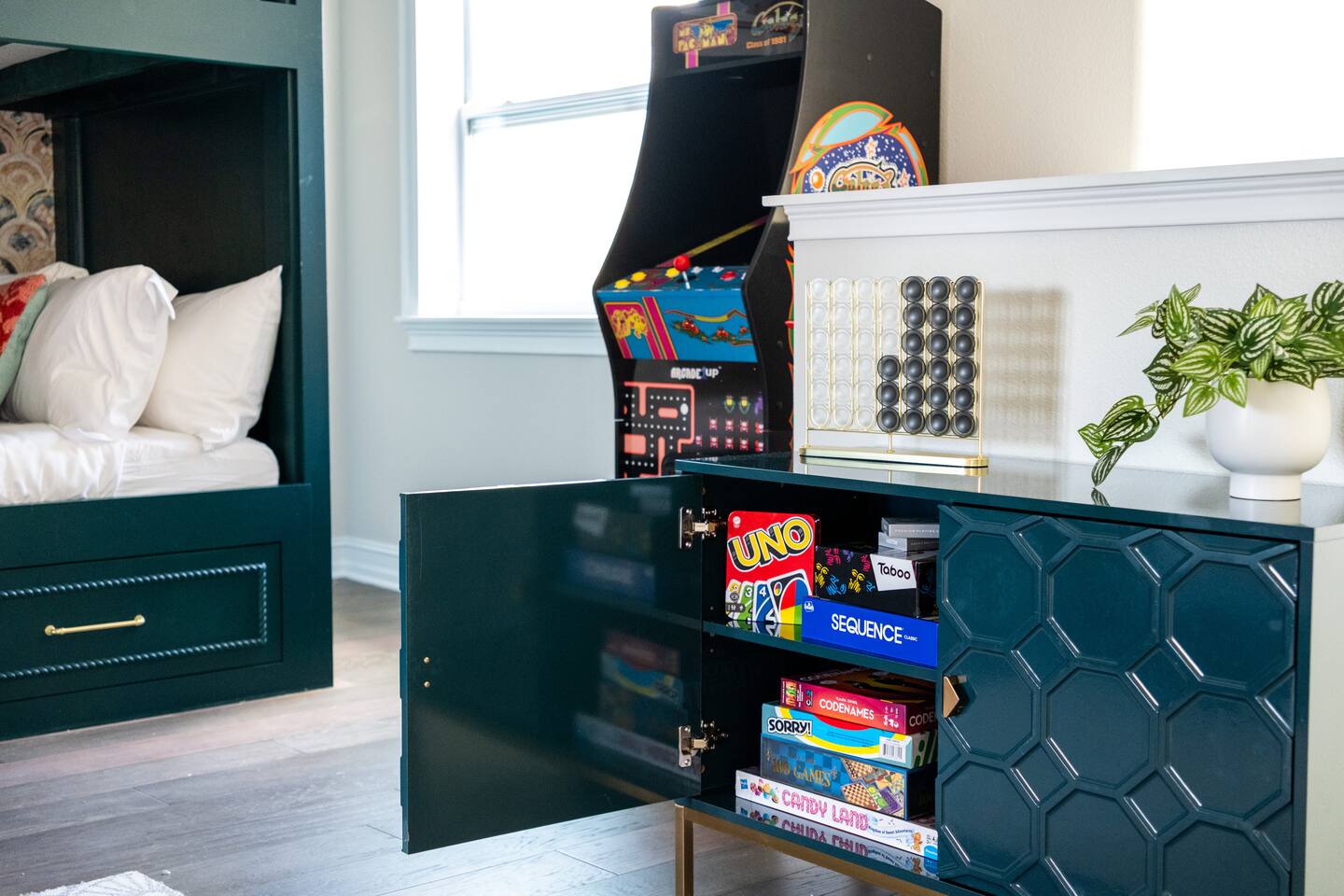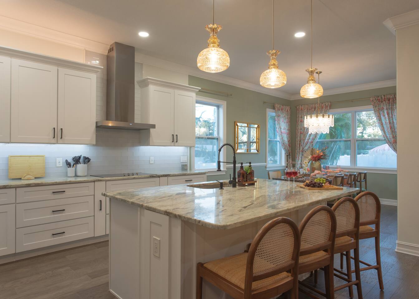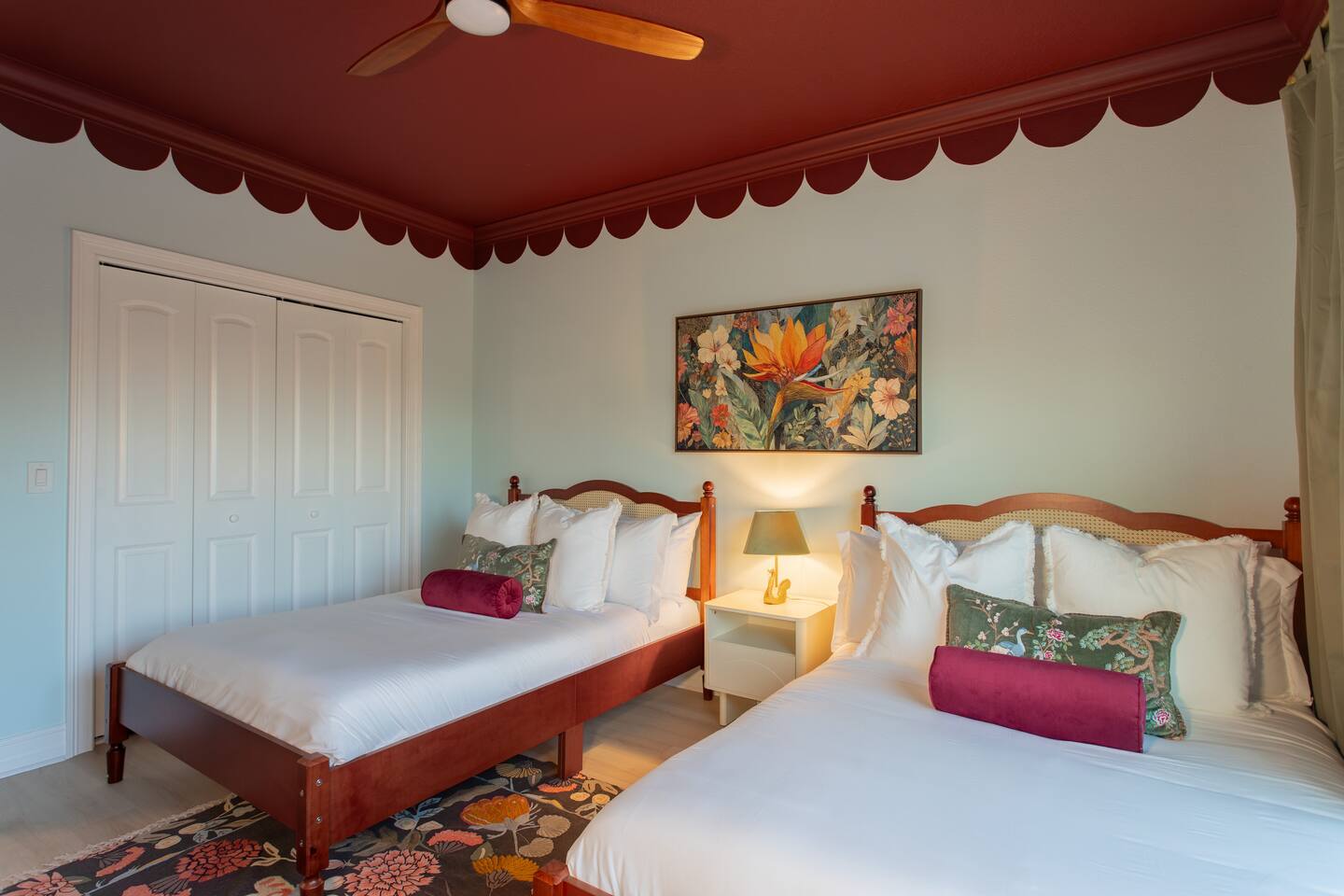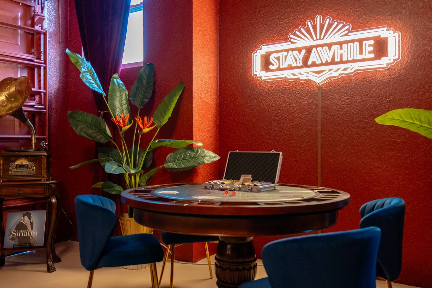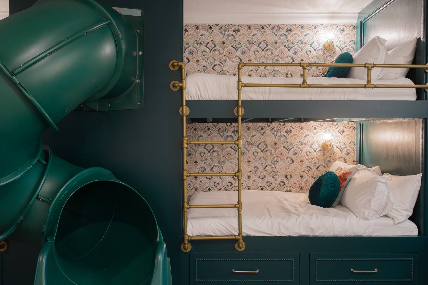 🛏️ Sleeping Arrangements- Sleeps up to 16-20 guests! Thoughtfully designed to give groups plenty of space to unwind. First Floor • Bedroom 1 — Two Queen beds with ensuite bathroom Second Floor • Bonus Bunk Area — Four Queen beds in bunk bed style • Bedroom 2 — King bed with ensuite bathroom • Bedroom 3 — Two Full beds • Bedroom 4 — Two Queen beds • Additional full guest bathroom Fresh linens, towels, and essentials are provided for every guest. 🐘The Estate Designed for comfort, style, and memorable group stays. • 2,700 sq ft two-story home • 4 bedrooms + spacious bunkbed bonus area • 3 full bathrooms (2 ensuite) • Elegant open-concept living spaces • Smart TVs (Roku + Google TV) • Climate-controlled garage lounge and game room • Samsung washer & dryer Rich finishes, warm lighting, and darker tones create a relaxed yet refined atmosphere perfect for gathering together. 🍽️ Chef-Ready Kitchen The fully equipped kitchen makes hosting effortless. • Keurig Duo (drip + single K-cup) • Toaster • Tea kettle • Blender • Air fryer • Full cookware set • Full glassware set • Refrigerator with filtered water & ice maker • Paper towels and essentials provided Perfect for group dinners, celebratory meals, or late-night snacks after a day by the pool. 🎮 Garage Lounge & Game Room A stylish entertainment space for relaxed evenings. • Billiards table • Poker table • Vintage-style record player with a collection of our favorite records • Climate-controlled comfort • Arcade machine located upstairs in the bunk suite room The perfect place for friendly games, music, and late-night conversations. 🌴 Private Backyard Oasis Step outside to your palm-lined outdoor retreat. • Heated pool (3–5 ft depth) • Sun shelf loungers in the pool • Outdoor pergola lounge • Outdoor dining seating for up to 6 • Projector screen for outdoor movies • 4-hole mini golf • Pickleball court • Basketball hoop • Cornhole • Giant Jenga • Propane fire table in the pergola • BBQ Grill and Utensils • Pool floats available 🏝️ Heated Pool – Additional Fee Required • Pool: $30/day and must be on at least 2 consecutive days • Pool Target Temp: 84-87°F 👶 Family Amenities • Pack-n-play • High chair • Kids utensils Baby amenities are located in the downstairs bedroom closet. 🏖️ Beach Day Essentials Located in the outdoor shed: • 6–8 beach chairs • Umbrella • Cooler • Beach wagon Beach towels are available in the patio cabinet and downstairs bedroom closet. 📍 Prime St. Petersburg Location Conveniently located in a quiet residential neighborhood of St. Petersburg, with easy access to some of the Gulf Coast’s best beaches, dining, and attractions. • 5 minutes to Madeira Beach • 15 minutes to St. Pete Beach • 6 minutes to Redington Beach • 9 minutes to John's Pass Village & Boardwalk • 30 minutes to St. Pete Pier and downtown St. Pete • 30 minutes to St. Pete–Clearwater International Airport • 45 minutes to Tampa International Airport 🚗 Parking • Driveway parking for 4–6 vehicles • Up to 2 additional vehicles with tandem parking • No street parking permitted 📌 House Rules Respecting the home ensures a wonderful stay for all guests. • Maximum occupancy: 20 guests • Quiet hours: 10 PM – 8 AM • No smoking or vaping • No open flames indoors • Thermostat must remain between 69°F and 78°F • No shoes inside the house • Use of pool and recreational equipment is at guest’s own risk • Please keep doors and windows closed to prevent pests • Report any damage promptly • Respect neighbors and the property at all times 🔒 Security For safety and property protection: • Exterior security cameras located at the front, side, and backyard of the home (no audio recording). The Palm Royale is perfect for elegant group getaways, celebrations, and memorable coastal retreats, where sun-drenched afternoons and glamorous evenings come together in true Florida style. 🌴✨