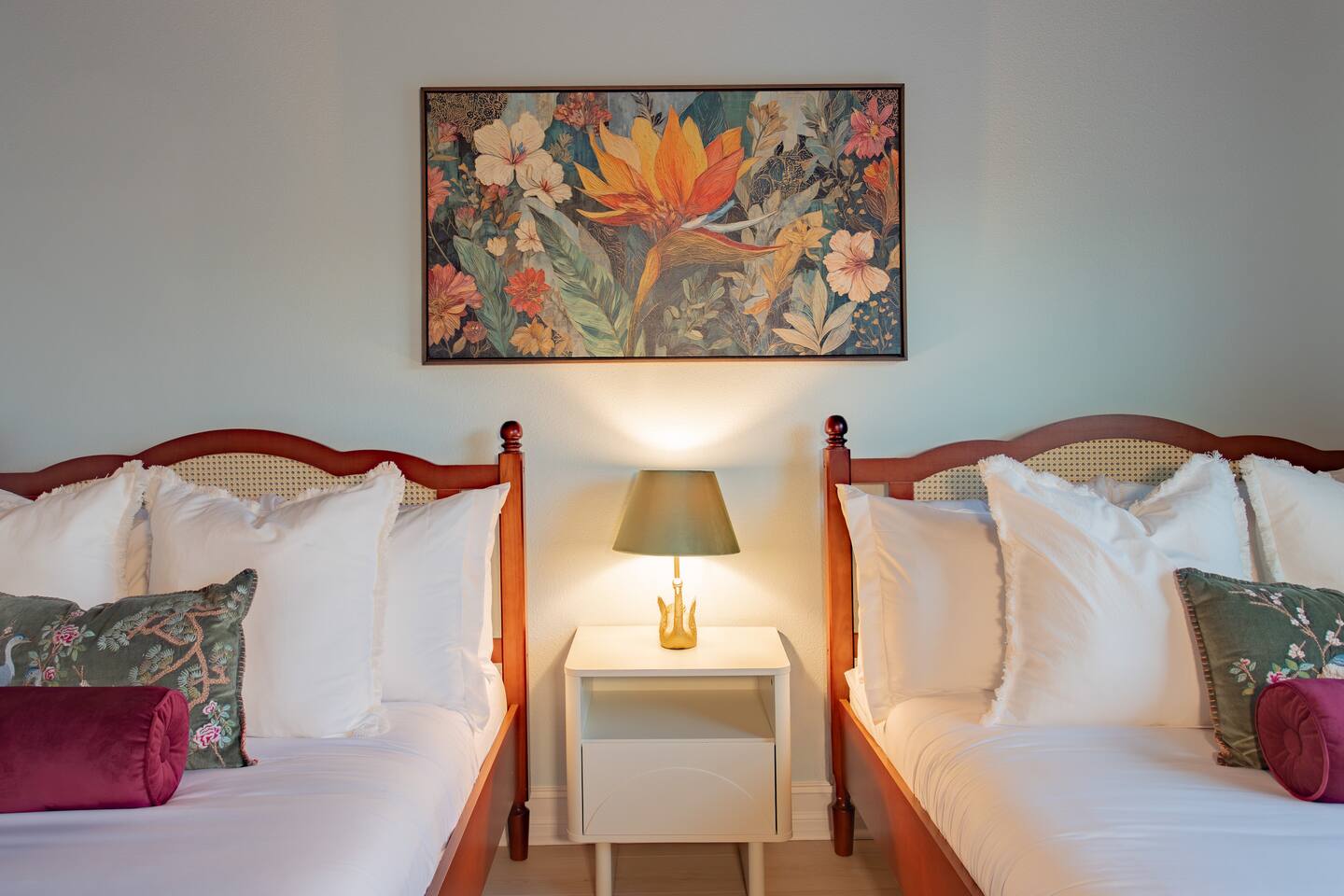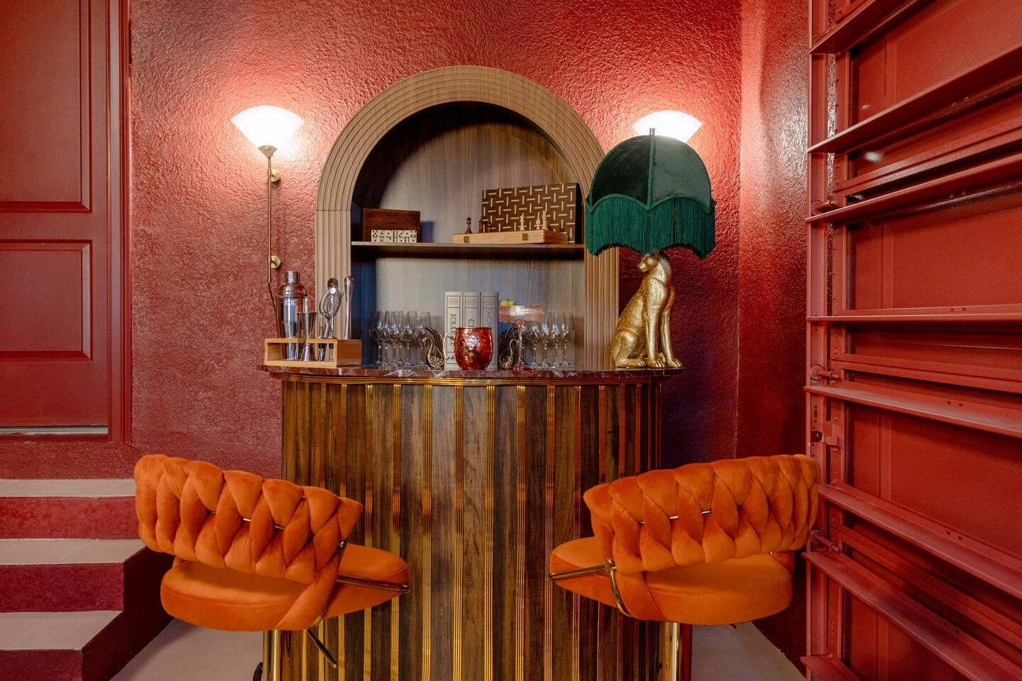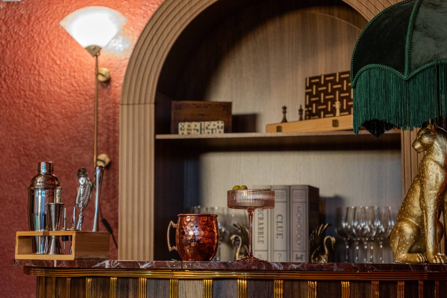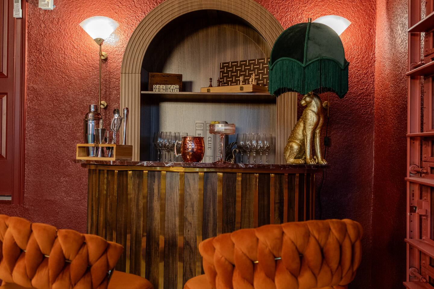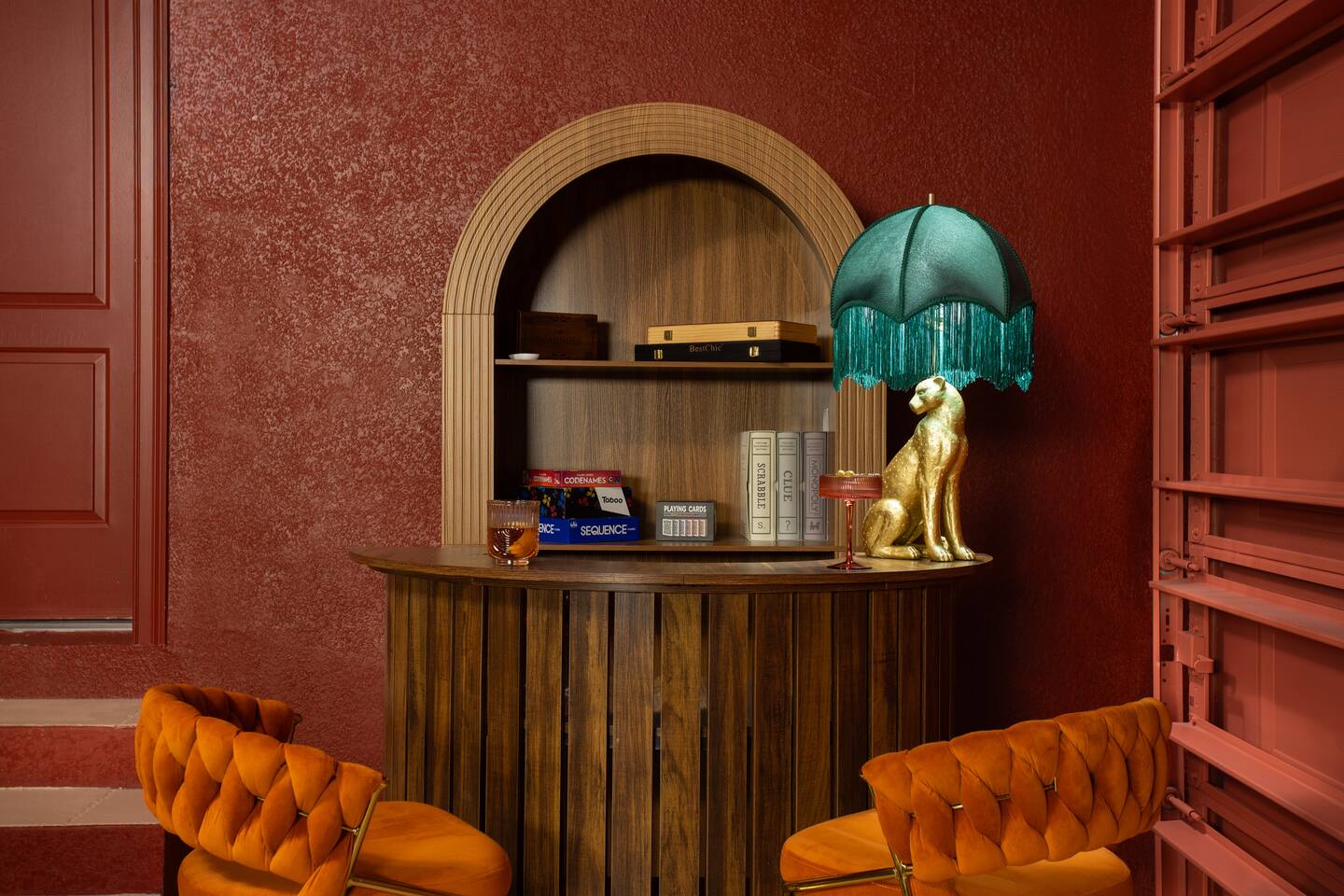 🛏️ Sleeping Arrangements- Sleeps up to 16-20 guests! Thoughtfully designed to give groups plenty of space to unwind. First Floor • Bedroom 1 — Two Queen beds with ensuite bathroom Second Floor • Bonus Bunk Area — Four Queen beds in bunk bed style • Bedroom 2 — King bed with ensuite bathroom • Bedroom 3 — Two Full beds • Bedroom 4 — Two Queen beds • Additional full guest bathroom Fresh linens, towels, and essentials are provided for every guest. 🐘The Estate Designed for comfort, style, and memorable group stays. • 2,700 sq ft two-story home • 4 bedrooms + spacious bunkbed bonus area • 3 full bathrooms (2 ensuite) • Elegant open-concept living spaces • Smart TVs (Roku + Google TV) • Climate-controlled garage lounge and game room • Samsung washer & dryer Rich finishes, warm lighting, and darker tones create a relaxed yet refined atmosphere perfect for gathering together. 🍽️ Chef-Ready Kitchen The fully equipped kitchen makes hosting effortless. • Keurig Duo (drip + single K-cup) • Toaster • Tea kettle • Blender • Air fryer • Full cookware set • Full glassware set • Refrigerator with filtered water & ice maker • Paper towels and essentials provided Perfect for group dinners, celebratory meals, or late-night snacks after a day by the pool. 🎮 Garage Lounge & Game Room A stylish entertainment space for relaxed evenings. • Billiards table • Poker table • Vintage-style record player with a collection of our favorite records • Climate-controlled comfort • Arcade machine located upstairs in the bunk suite room The perfect place for friendly games, music, and late-night conversations. 🌴 Private Backyard Oasis Step outside to your palm-lined outdoor retreat. • Heated pool (3–5 ft depth) • Sun shelf loungers in the pool • Outdoor pergola lounge • Outdoor dining seating for up to 6 • Projector screen for outdoor movies • 4-hole mini golf • Pickleball court • Basketball hoop • Cornhole • Giant Jenga • Propane fire table in the pergola • BBQ Grill and Utensils • Pool floats available 🏝️ Heated Pool – Additional Fee Required • Pool: $30/day and must be on at least 2 consecutive days • Pool Target Temp: 84-87°F 👶 Family Amenities • Pack-n-play • High chair • Kids utensils Baby amenities are located in the downstairs bedroom closet. 🏖️ Beach Day Essentials Located in the outdoor shed: • 6–8 beach chairs • Umbrella • Cooler • Beach wagon Beach towels are available in the patio cabinet and downstairs bedroom closet. 📍 Prime St. Petersburg Location Conveniently located in a quiet residential neighborhood of St. Petersburg, with easy access to some of the Gulf Coast’s best beaches, dining, and attractions. • 5 minutes to Madeira Beach • 15 minutes to St. Pete Beach • 6 minutes to Redington Beach • 9 minutes to John's Pass Village & Boardwalk • 30 minutes to St. Pete Pier and downtown St. Pete • 30 minutes to St. Pete–Clearwater International Airport • 45 minutes to Tampa International Airport 🚗 Parking • Driveway parking for 4–6 vehicles • Up to 2 additional vehicles with tandem parking • No street parking permitted 📌 House Rules Respecting the home ensures a wonderful stay for all guests. • Maximum occupancy: 20 guests • Quiet hours: 10 PM – 8 AM • No smoking or vaping • No open flames indoors • Thermostat must remain between 69°F and 78°F • No shoes inside the house • Use of pool and recreational equipment is at guest’s own risk • Please keep doors and windows closed to prevent pests • Report any damage promptly • Respect neighbors and the property at all times 🔒 Security For safety and property protection: • Exterior security cameras located at the front, side, and backyard of the home (no audio recording). The Palm Royale is perfect for elegant group getaways, celebrations, and memorable coastal retreats, where sun-drenched afternoons and glamorous evenings come together in true Florida style. 🌴✨