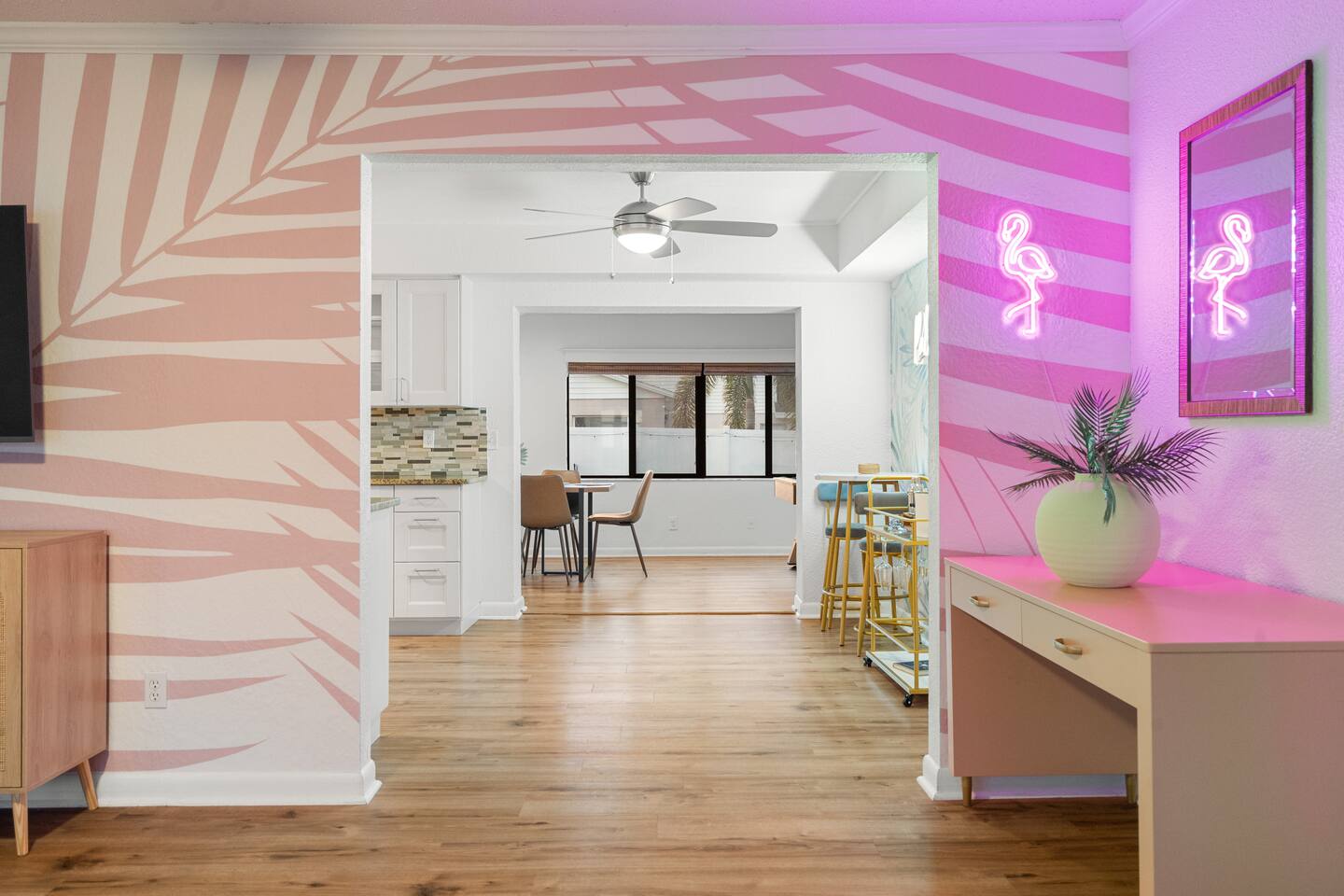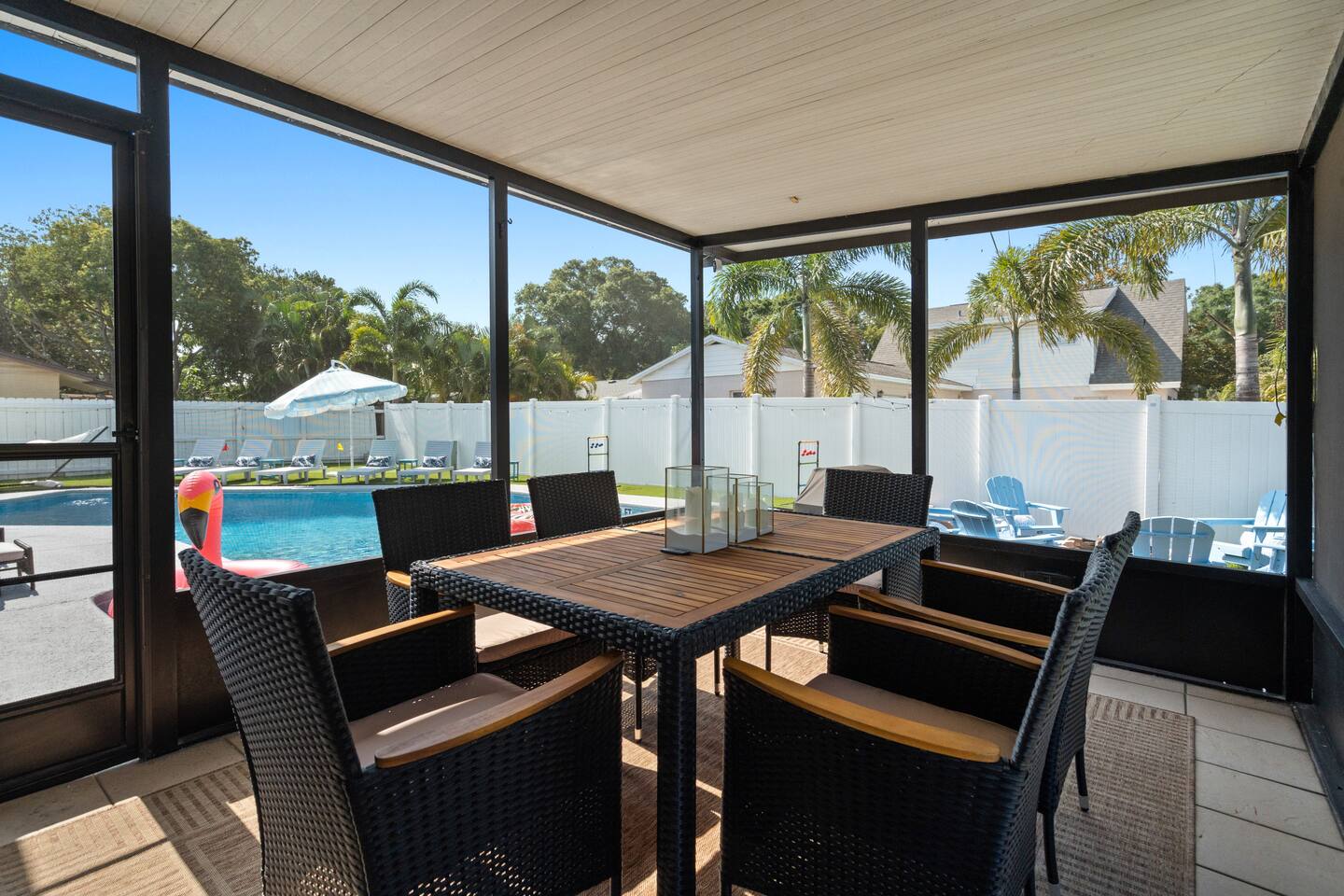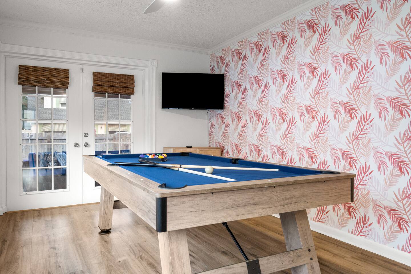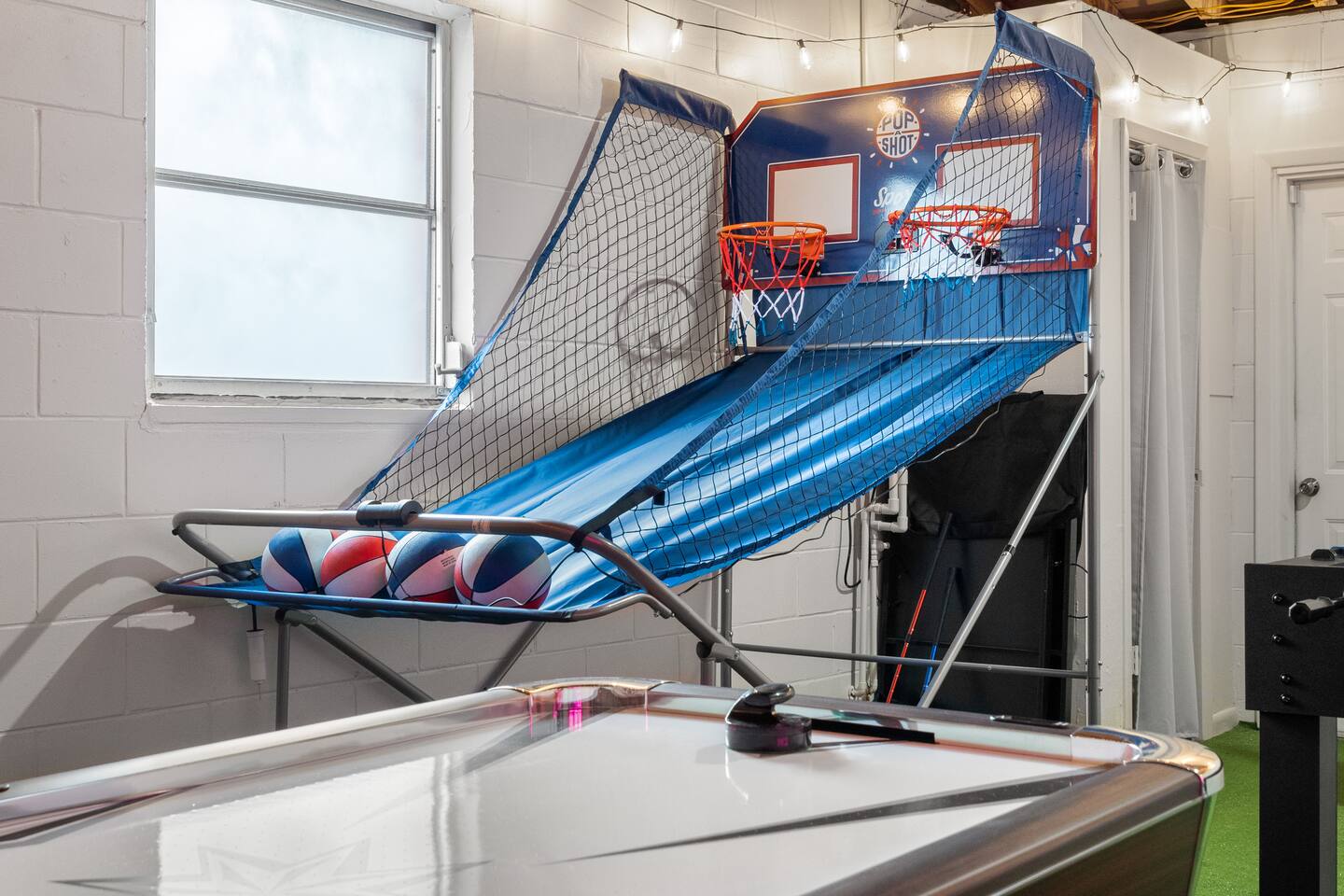 The Palm Haven offers 7 beds (3 King Beds, 2 Queen Beds, and 2 Twin Beds – Bunk/Trundle), comfortably sleeping up to 12 guests! 🛏️ Outside, enjoy a heated pool, plenty of seating, a grill, and a firepit. 🔥 Next to the pool, challenge your group to mini putt-putt, cornhole, 4-in-a-row, and more! Kids will love the outdoor playset/swingset, while the garage has air-hockey, billiards, card games, board games, and a 1v1 basketball shootout! 🏀 Only 2 miles from the beach, you’ll receive a beach kit and beach towels for your convenience! 🏖️ Laundry machines are also available, along with a coffee bar to start your day right! ☕ 🌟 Amenities • Yard Games & Board Games • Cornhole & Mini Putt-Putt • Outdoor Playset/Swingset for Kids • Air Hockey & 1v1 Basketball Shootout • Beach Kit (Loungers, Umbrella, Beach Toys) • Beach Towels • Billiards • Full Coffee Bar • Smart TVs (Roku) 🏝️ Heated Pool – Additional Fee Required • Pool heat: $30/day • Temperature set to 85F *can vary depend on external weather conditions 📌House Rules This home is equipped with outdoor security cameras 📸 as well as noise-detection hardware 🔊 (which does not record audio) that monitors high noise levels. Breaking any of the house rules—such as having unregistered guests, hosting parties, allowing unregistered pets🐾, engaging in illegal activity, smoking indoors, or violating quiet hours 🔕—can and will result in the immediate cancellation of your reservation without a refund💸. Neighbors are diligent in reporting any violations, so please be respectful of the property, the furnishings, quiet hours🌙, and the neighbors to ensure a positive stay! 😊 • Parties, events, and gatherings are strictly prohibited. • Quiet hours: 10 PM – 8 AM • No open flames, candles, or matches • No shoes inside the house – cleaning/replacement fees apply for stains • Thermostat must be set between 69°F and 78°F • Keep doors/windows closed to avoid pest entry (Florida is a tropical climate) Pet fee: Pet fee is $150 per stay for 1 pet, and $50 per each additional pet. Please limit your pets to 2 total. 🔥 Please note: Due to Florida’s tropical climate 🌴 and related storage concerns, we do not provide firewood for the firepit. 🪵 Firewood can be conveniently purchased at nearby supermarkets 🛒 or hardware stores 🛠️. We’ve thoughtfully prepared this home to offer both fun and relaxation for your family or group. Enjoy every moment—indoors and out!🙂