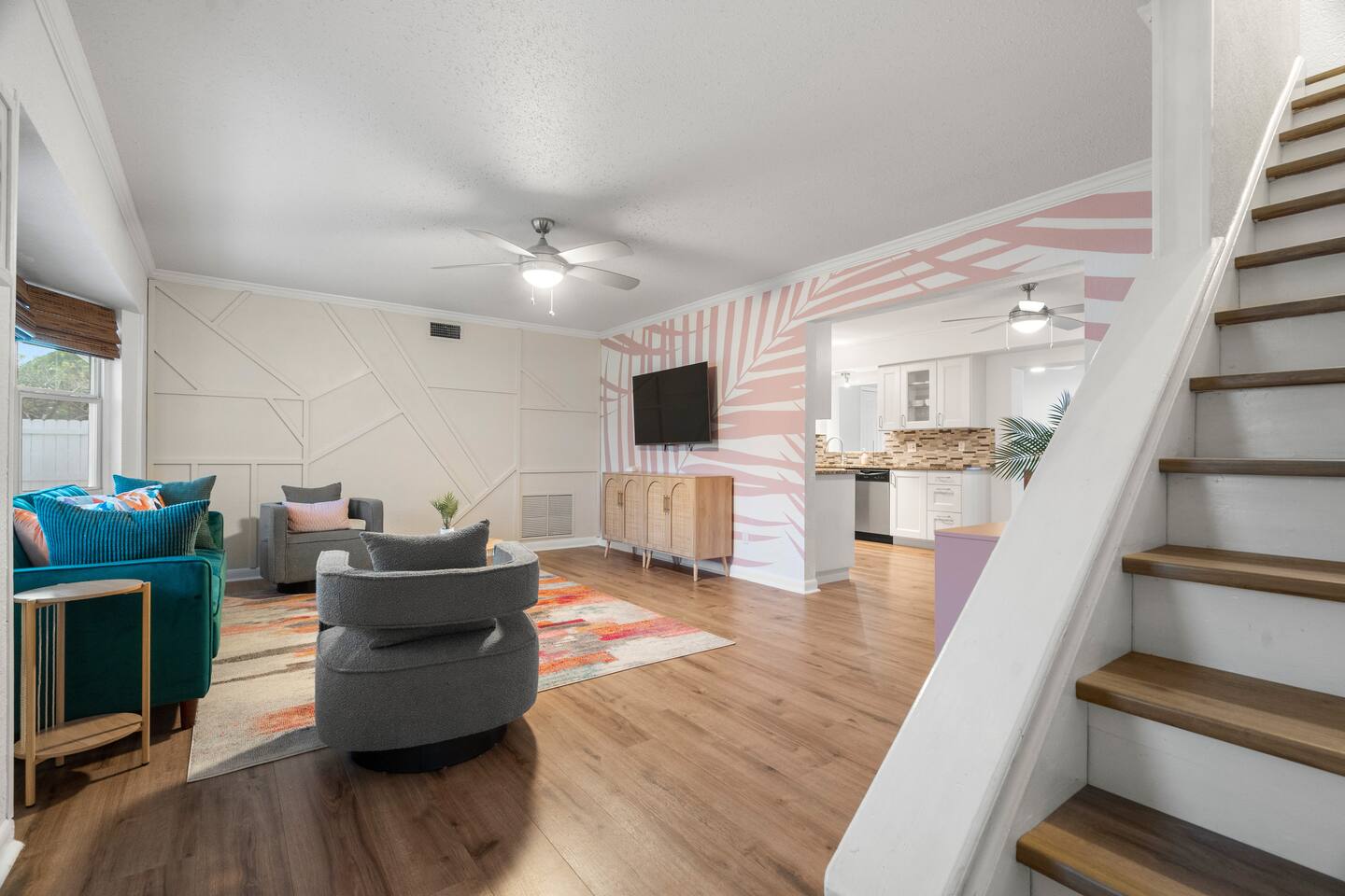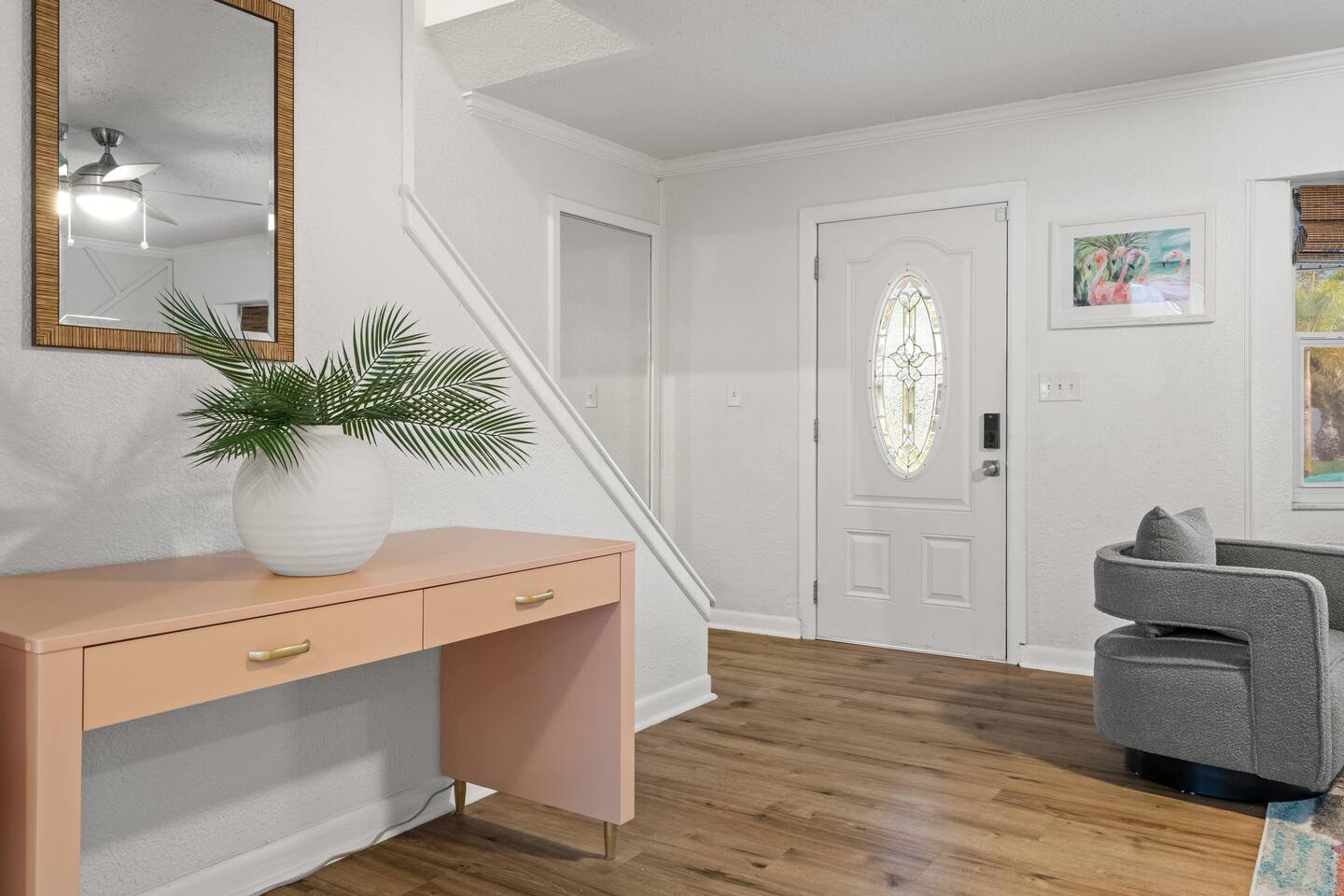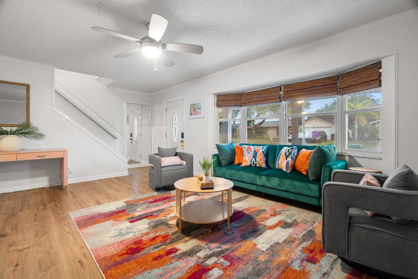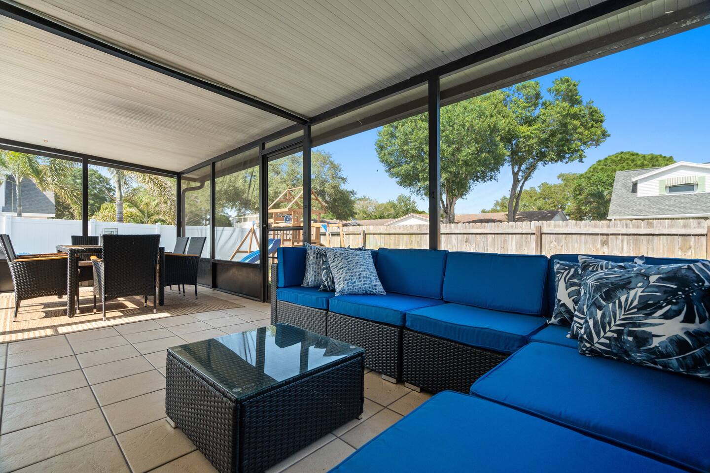 The Palm Haven offers 7 beds (3 King Beds, 2 Queen Beds, and 2 Twin Beds – Bunk/Trundle), comfortably sleeping up to 12 guests! 🛏️ Outside, enjoy a heated pool, plenty of seating, a grill, and a firepit. 🔥 Next to the pool, challenge your group to mini putt-putt, cornhole, 4-in-a-row, and more! Kids will love the outdoor playset/swingset, while the garage has air-hockey, billiards, card games, board games, and a 1v1 basketball shootout! 🏀 Only 2 miles from the beach, you’ll receive a beach kit and beach towels for your convenience! 🏖️ Laundry machines are also available, along with a coffee bar to start your day right! ☕ 🌟 Amenities • Yard Games & Board Games • Cornhole & Mini Putt-Putt • Outdoor Playset/Swingset for Kids • Air Hockey & 1v1 Basketball Shootout • Beach Kit (Loungers, Umbrella, Beach Toys) • Beach Towels • Billiards • Full Coffee Bar • Smart TVs (Roku) 🏝️ Heated Pool – Additional Fee Required • Pool heat: $30/day • Temperature set to 85F *can vary depend on external weather conditions 📌House Rules This home is equipped with outdoor security cameras 📸 as well as noise-detection hardware 🔊 (which does not record audio) that monitors high noise levels. Breaking any of the house rules—such as having unregistered guests, hosting parties, allowing unregistered pets🐾, engaging in illegal activity, smoking indoors, or violating quiet hours 🔕—can and will result in the immediate cancellation of your reservation without a refund💸. Neighbors are diligent in reporting any violations, so please be respectful of the property, the furnishings, quiet hours🌙, and the neighbors to ensure a positive stay! 😊 • Parties, events, and gatherings are strictly prohibited. • Quiet hours: 10 PM – 8 AM • No open flames, candles, or matches • No shoes inside the house – cleaning/replacement fees apply for stains • Thermostat must be set between 69°F and 78°F • Keep doors/windows closed to avoid pest entry (Florida is a tropical climate) Pet fee: Pet fee is $150 per stay for 1 pet, and $50 per each additional pet. Please limit your pets to 2 total. 🔥 Please note: Due to Florida’s tropical climate 🌴 and related storage concerns, we do not provide firewood for the firepit. 🪵 Firewood can be conveniently purchased at nearby supermarkets 🛒 or hardware stores 🛠️. We’ve thoughtfully prepared this home to offer both fun and relaxation for your family or group. Enjoy every moment—indoors and out!🙂