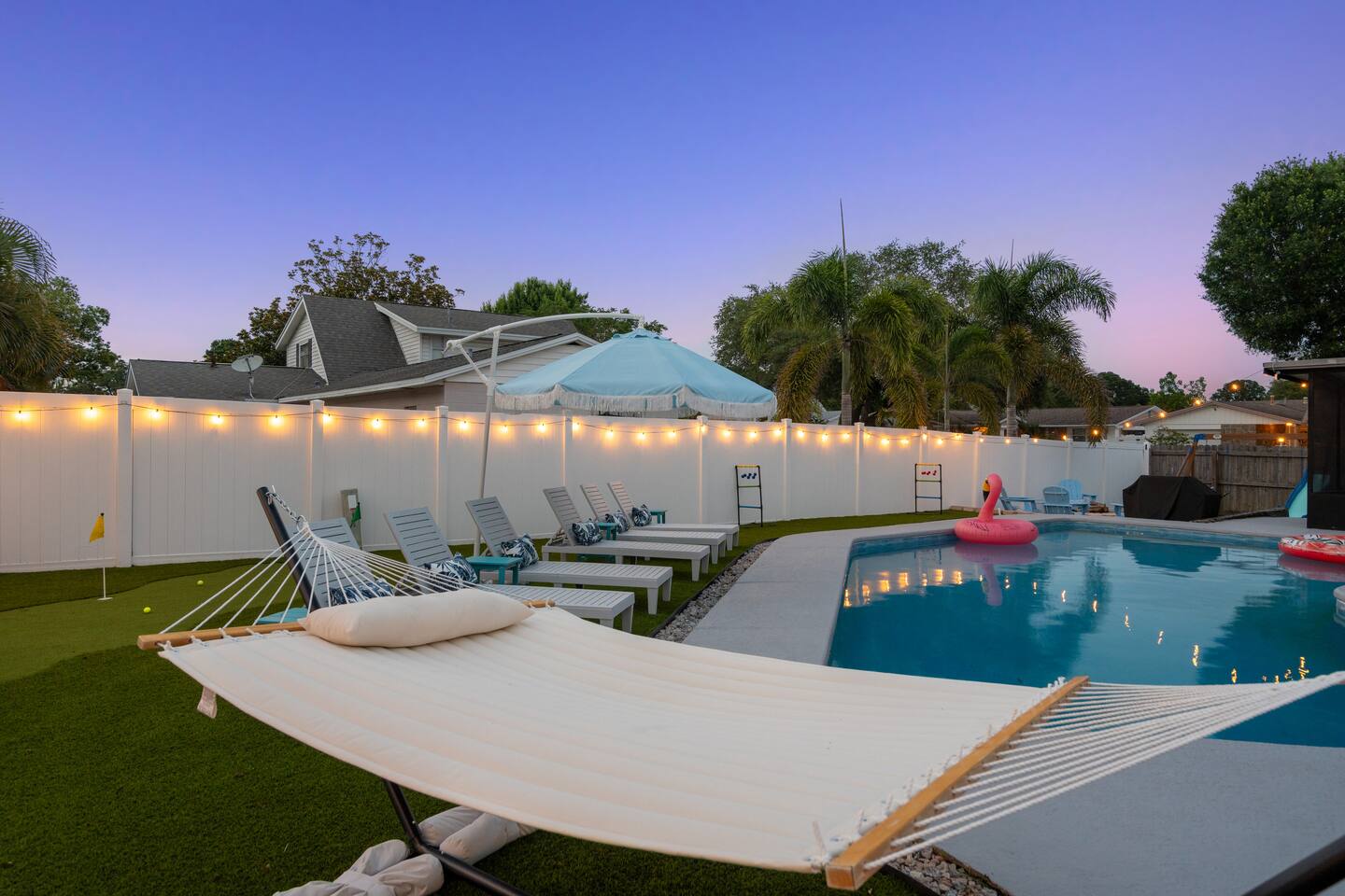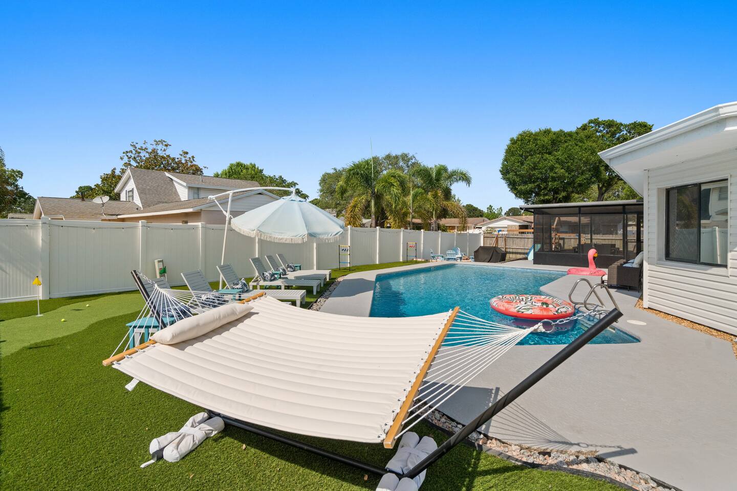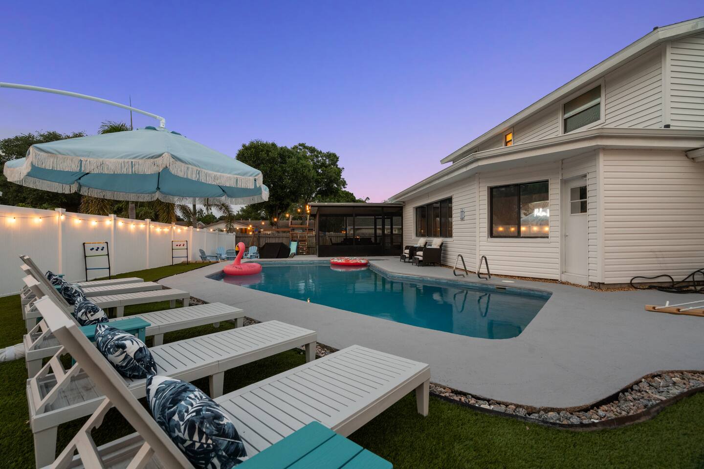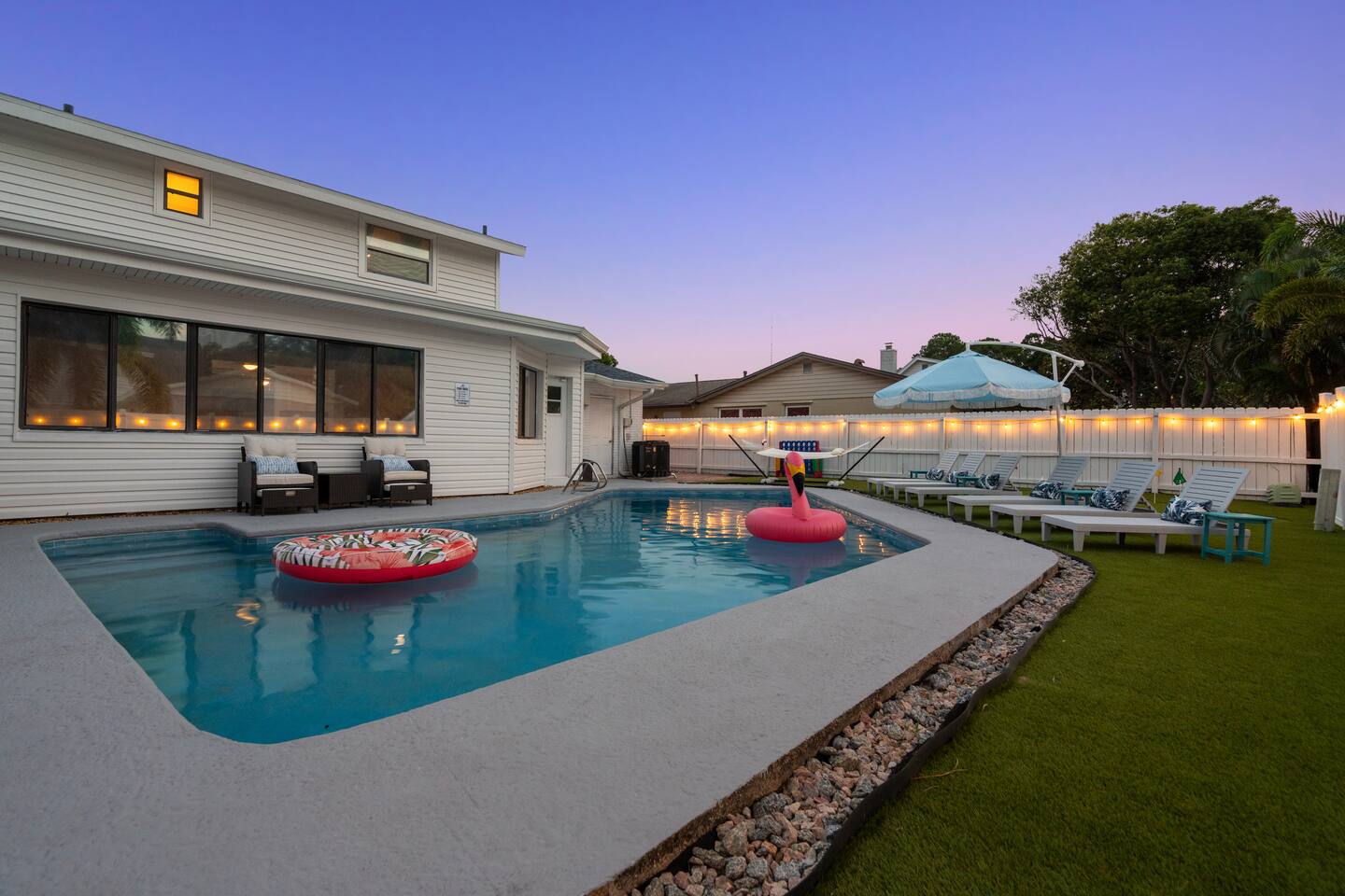 Don't compromise — you're just a 2-mile drive to the beach! 🏖️The Palm Haven features a HEATED POOL, Golf Putt-Putt, Air Hockey, Pool Table, Cornhole, Basketball Shootout Challenge, Outdoor Firepit, Kids Swingset, a Grill, and so much more! 🎯 This 4-bedroom, 2-bath home offers: 3 King Beds, 2 Queen Beds, and 2 Twin Beds (bunk/trundle) — comfortably sleeping 12+ guests! 💤You'll also enjoy Laundry machines, a Beach Essentials Kit + Beach Towels, and a fully stocked Coffee Bar at Palm Haven! ☕