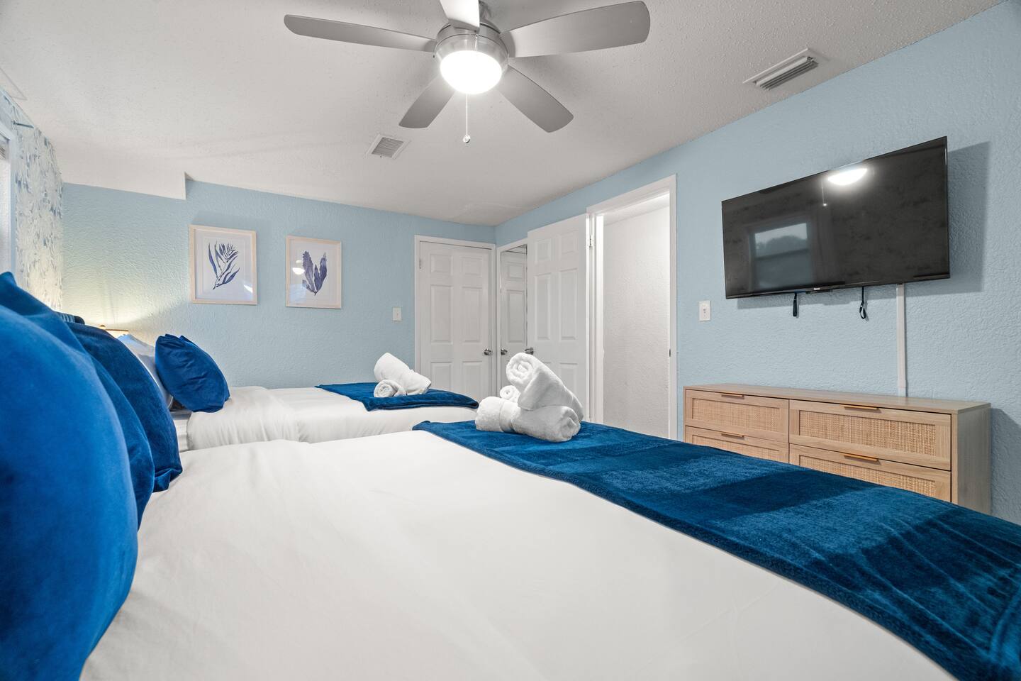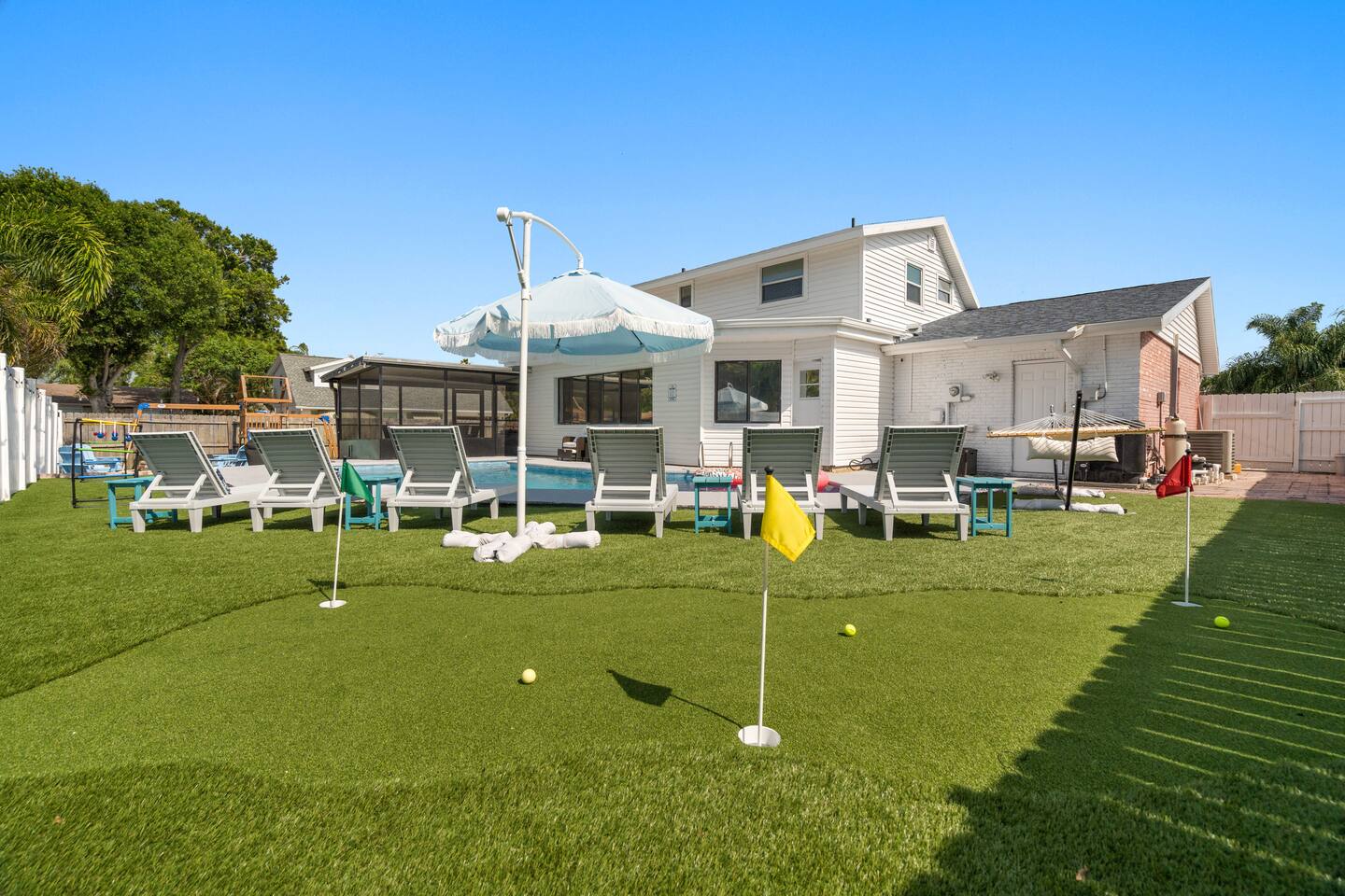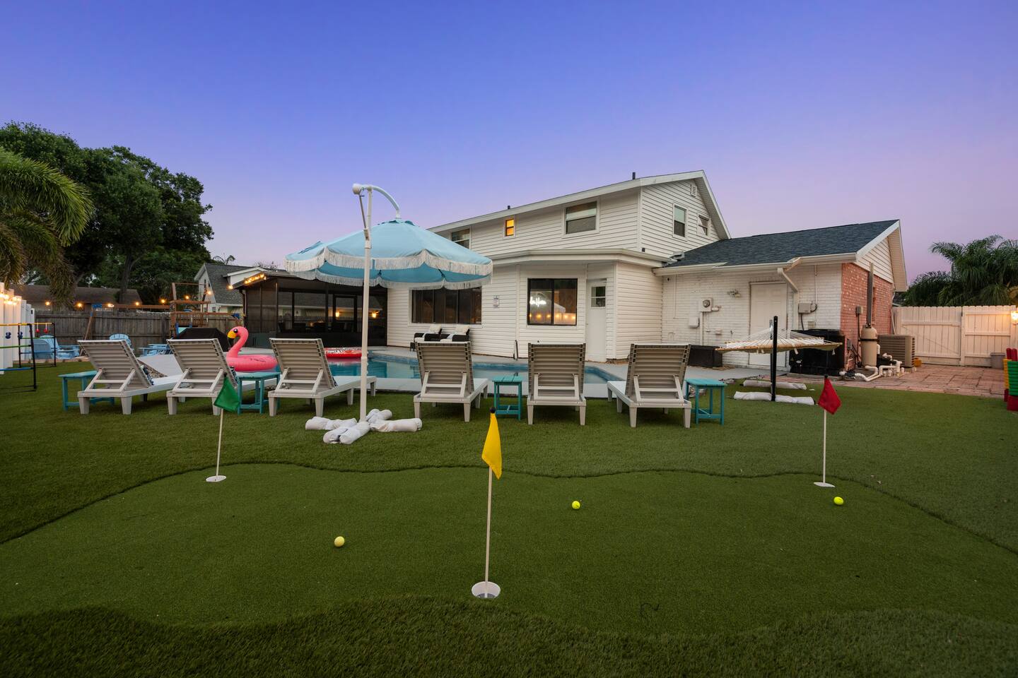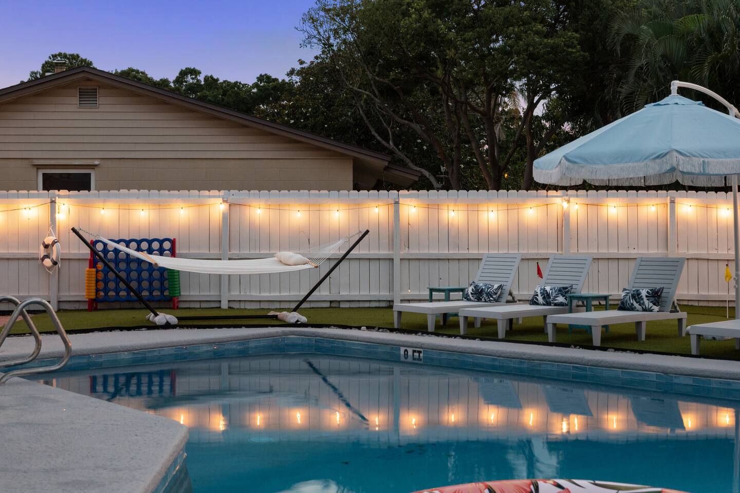 Don't compromise — you're just a 2-mile drive to the beach! 🏖️The Palm Haven features a HEATED POOL, Golf Putt-Putt, Air Hockey, Pool Table, Cornhole, Basketball Shootout Challenge, Outdoor Firepit, Kids Swingset, a Grill, and so much more! 🎯 This 4-bedroom, 2-bath home offers: 3 King Beds, 2 Queen Beds, and 2 Twin Beds (bunk/trundle) — comfortably sleeping 12+ guests! 💤You'll also enjoy Laundry machines, a Beach Essentials Kit + Beach Towels, and a fully stocked Coffee Bar at Palm Haven! ☕