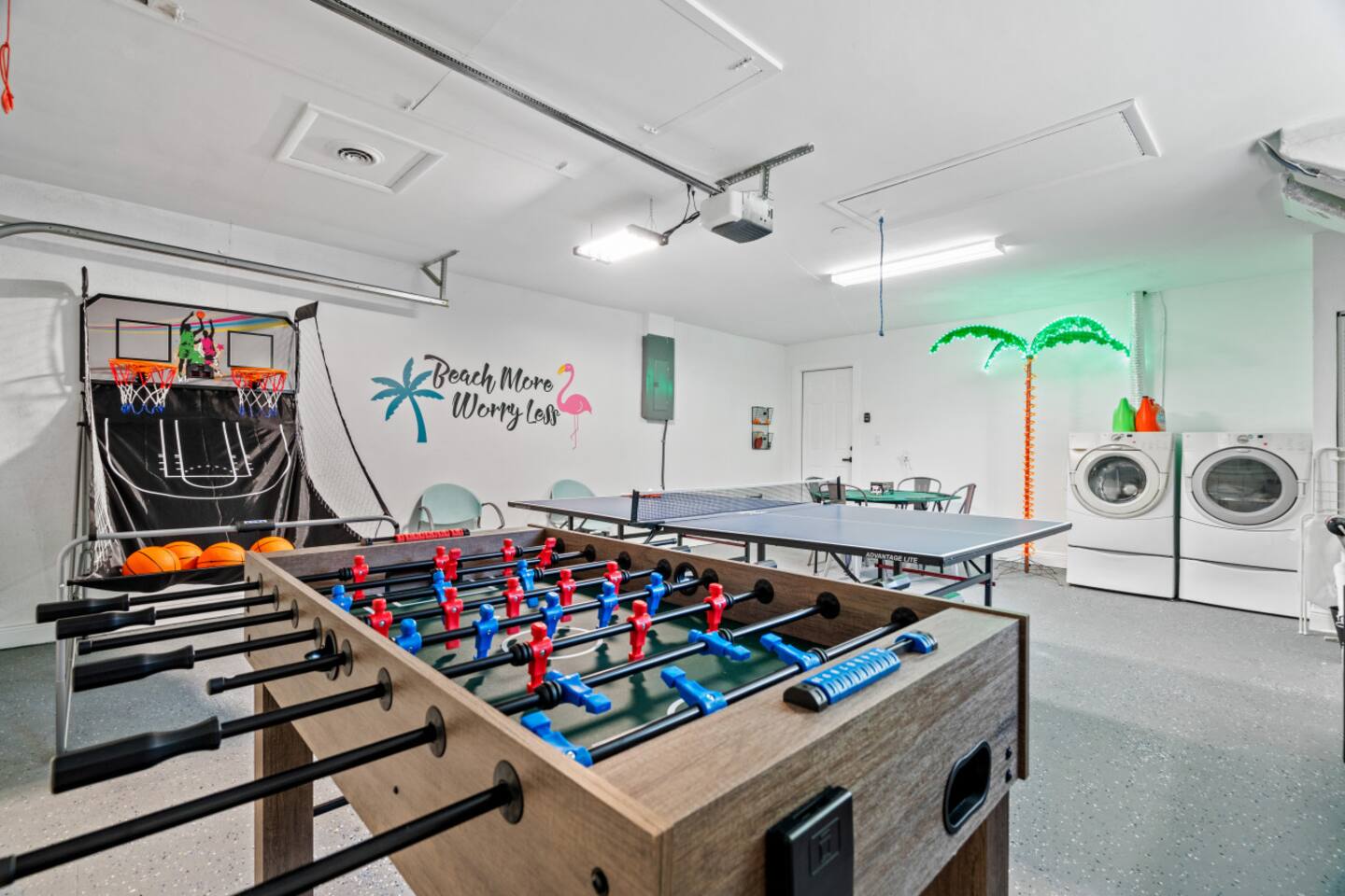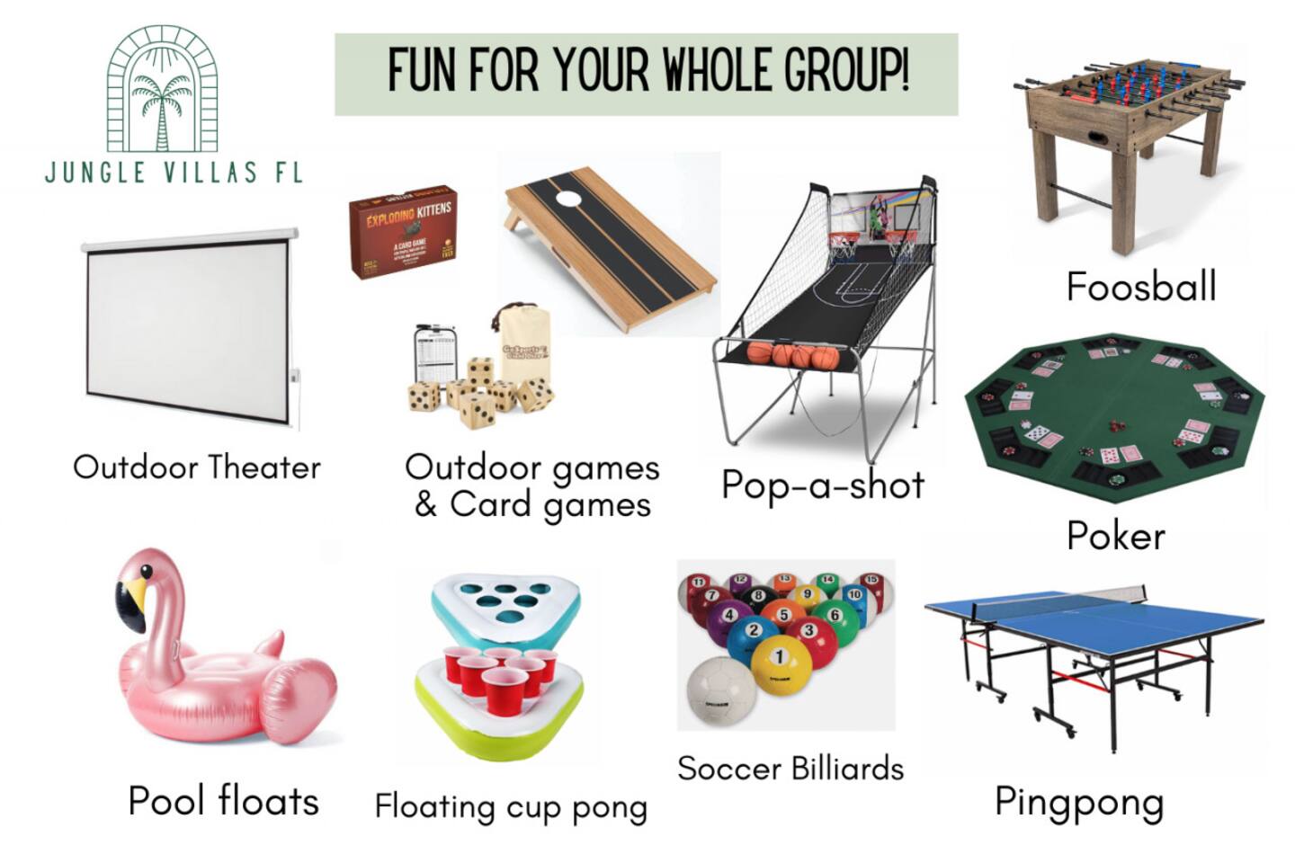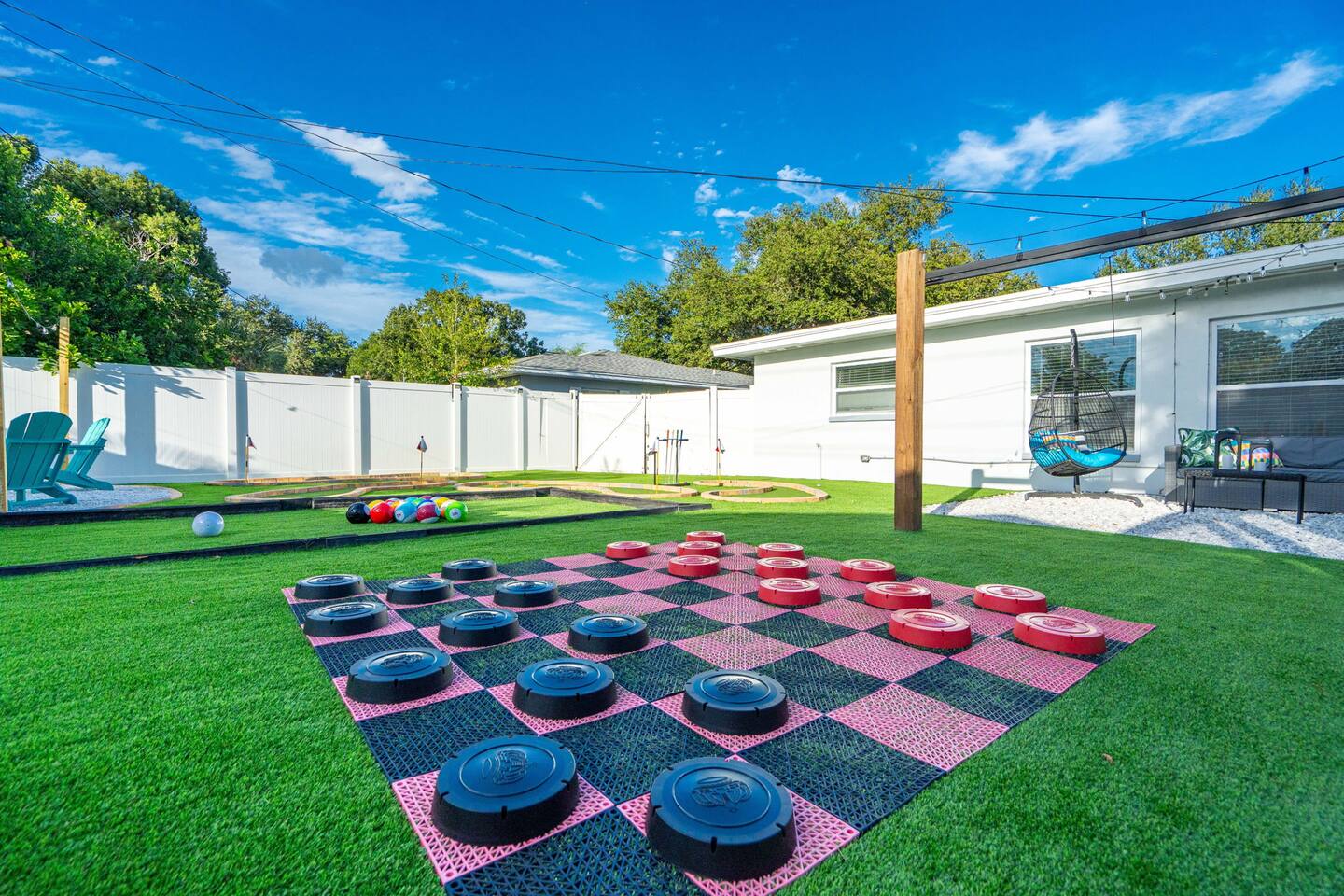 The Jungle Villa has 8 beds (2 king beds + 2 full-size bunks with twin trundles) and sleeps up to 12 guests! 💤✨ Enjoy a heated pool and hot tub with loungers, seating, and a grill — perfect for sunny days! ☀️🍹 Play Minigolf, Cornhole, or our exclusive Kick-Billiards by the pool. 🎯 At night, relax with a movie on the outdoor projector 🎬 or hit the game room for Ping Pong, Poker, Foosball, Card Games, and a 1v1 Basketball Shootout! 🏓🏀 You're just 12 minutes to Clearwater Beach 🏖️ — and we’ve got your Beach Kit ready with loungers, umbrella, and toys! Before heading out, grab a boost from our stocked Coffee Bar! ☕ 🌟 Amenities • Heated Pool & Hot Tub (additional fees apply) • Mini Golf • Soccer Billiards • Giant Yard Games • Firepit • Outdoor Projector & Movie Area • Ping Pong, Foosball, Poker Table, 1v1 Basketball Shootout • Beach Kit (loungers, 1 umbrella, beach toys) • Beach/Pool Towels • Full Coffee Bar • Smart TVs (Amazon Fire TV) 🏝️ Heated Pool & Hot Tub – Additional Fee Required • Pool heat: $35/day • Hot tub: $25/day • Both: $50/day (applied to entire reservation) 📌House Rules This home is equipped with outdoor security cameras 📸 as well as noise-detection hardware 🔊 (which does not record audio) that monitors high noise levels. Breaking any of the house rules—such as having unregistered guests, hosting parties, allowing unregistered pets🐾, engaging in illegal activity, smoking indoors, or violating quiet hours 🔕—can and will result in the immediate cancellation of your reservation without a refund💸. Neighbors are diligent in reporting any violations, so please be respectful of the property, the furnishings, quiet hours🌙, and the neighbors to ensure a positive stay! 😊 📏 Please Note – House Rules Respecting the space ensures a smooth and enjoyable stay. Violation of these rules may result in immediate cancellation without refund: Pet fee: Pet fee is $150 per stay for 1 pet, and $50 per each additional pet. Please limit your pets to 2 total. • Parties, events, and gatherings are strictly prohibited. • Quiet hours: 10 PM – 8 AM • No open flames, candles, or matches • No shoes inside the house – cleaning/replacement fees apply for stains • Thermostat must be set between 69°F and 78°F • Keep doors/windows closed to avoid pest entry (Florida is a tropical climate) We’ve thoughtfully prepared this home to offer both fun and relaxation for your family or group. Enjoy every moment—indoors and out!🙂