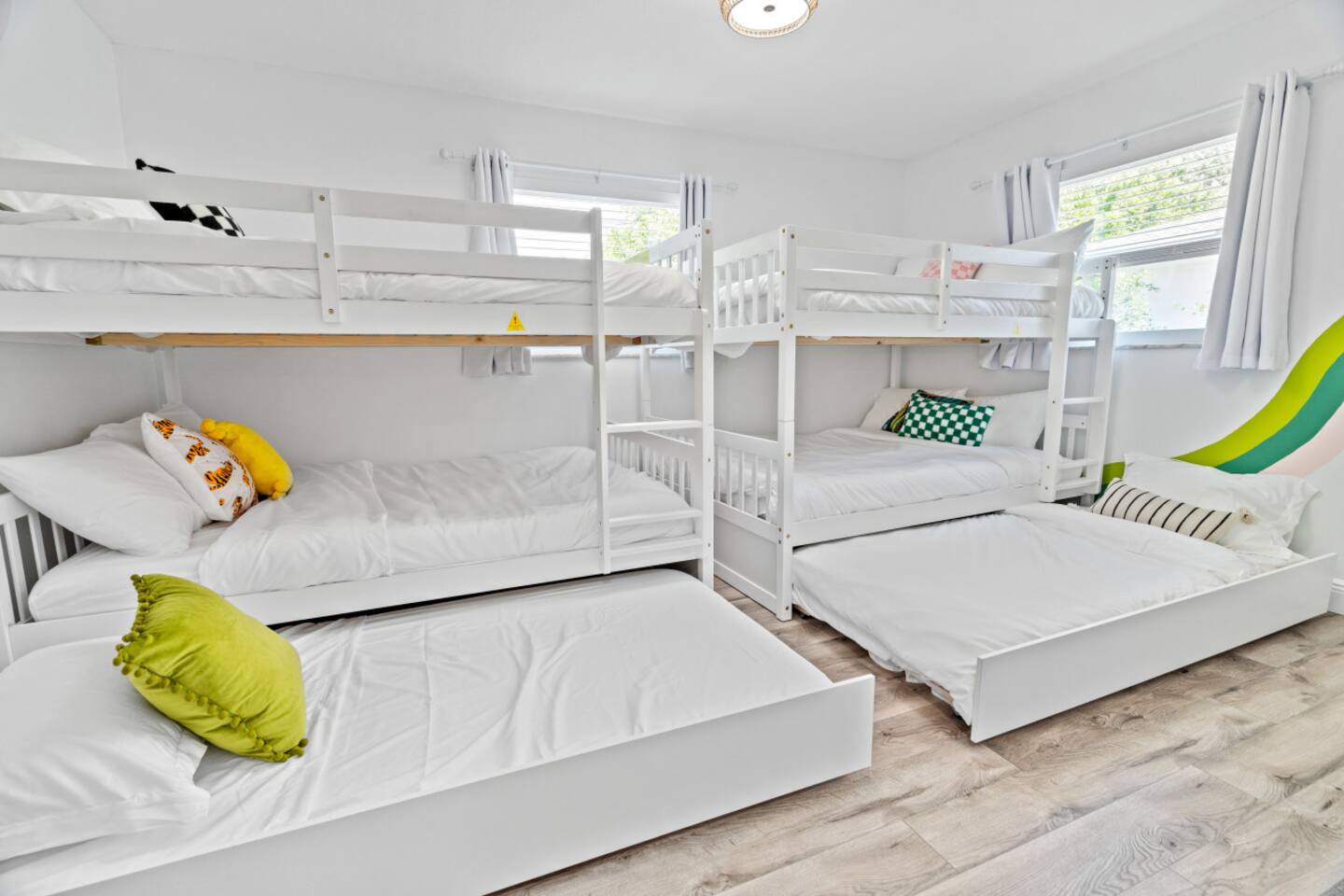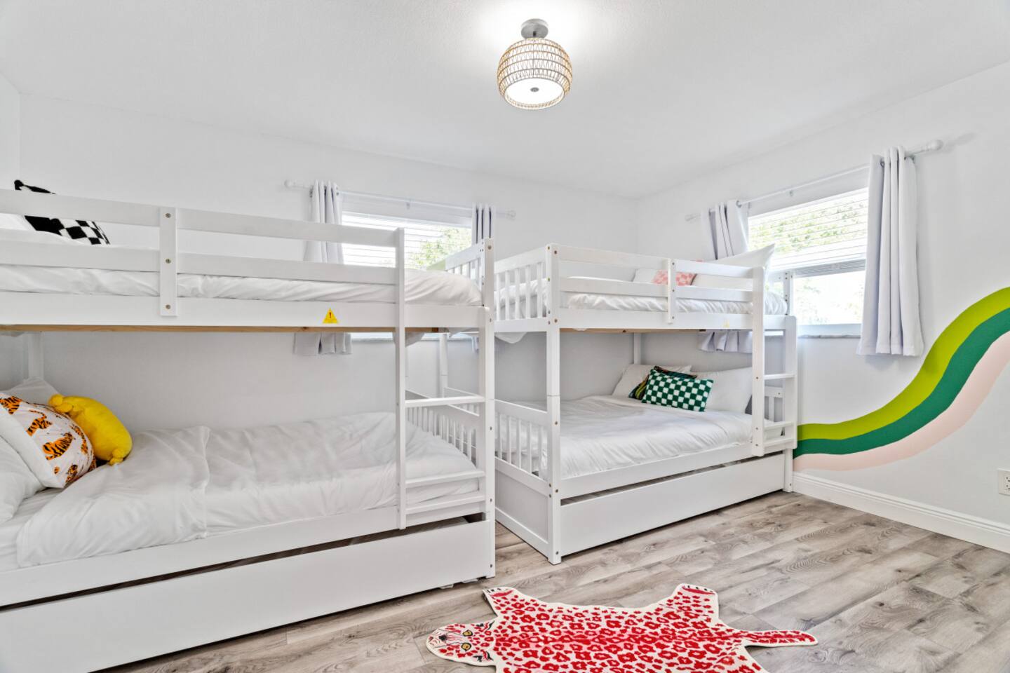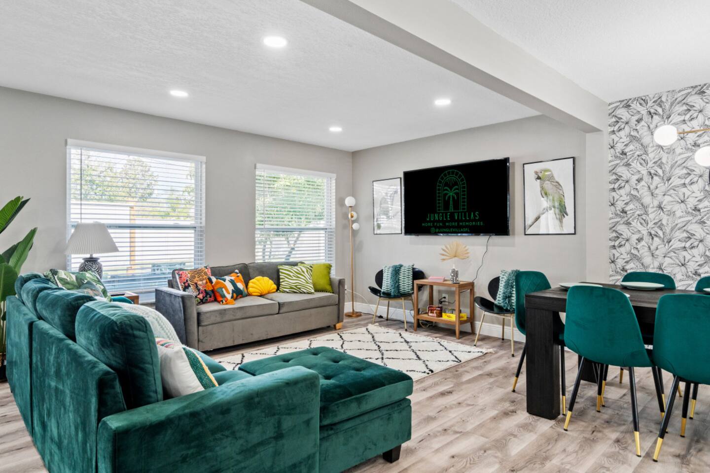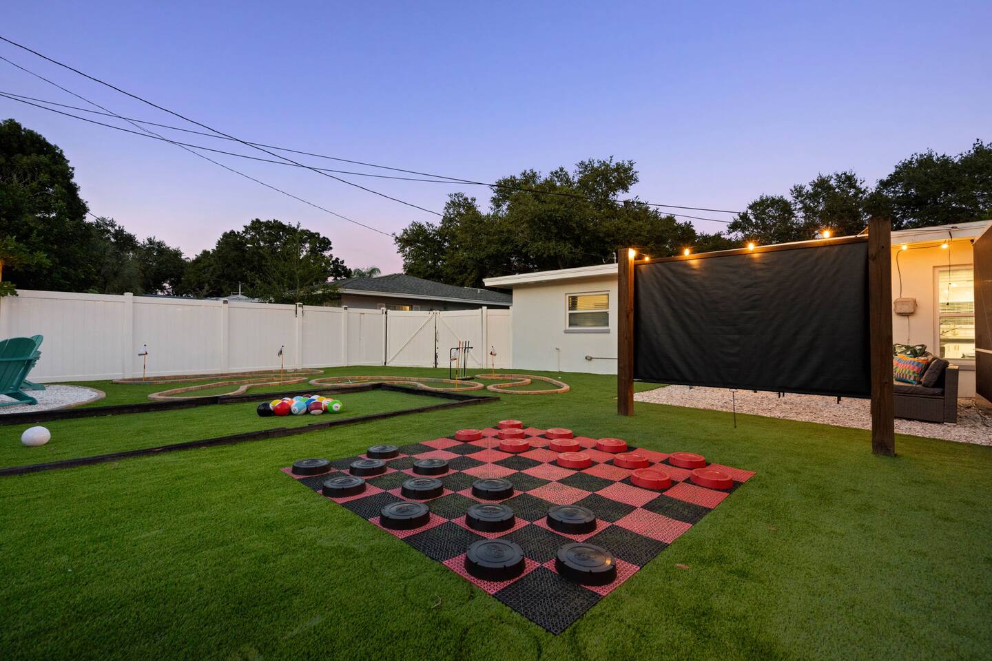 The Jungle Villa has 8 beds (2 king beds + 2 full-size bunks with twin trundles) and sleeps up to 12 guests! 💤✨ Enjoy a heated pool and hot tub with loungers, seating, and a grill — perfect for sunny days! ☀️🍹 Play Minigolf, Cornhole, or our exclusive Kick-Billiards by the pool. 🎯 At night, relax with a movie on the outdoor projector 🎬 or hit the game room for Ping Pong, Poker, Foosball, Card Games, and a 1v1 Basketball Shootout! 🏓🏀 You're just 12 minutes to Clearwater Beach 🏖️ — and we’ve got your Beach Kit ready with loungers, umbrella, and toys! Before heading out, grab a boost from our stocked Coffee Bar! ☕ 🌟 Amenities • Heated Pool & Hot Tub (additional fees apply) • Mini Golf • Soccer Billiards • Giant Yard Games • Firepit • Outdoor Projector & Movie Area • Ping Pong, Foosball, Poker Table, 1v1 Basketball Shootout • Beach Kit (loungers, 1 umbrella, beach toys) • Beach/Pool Towels • Full Coffee Bar • Smart TVs (Amazon Fire TV) 🏝️ Heated Pool & Hot Tub – Additional Fee Required • Pool heat: $35/day • Hot tub: $25/day • Both: $50/day (applied to entire reservation) 📌House Rules This home is equipped with outdoor security cameras 📸 as well as noise-detection hardware 🔊 (which does not record audio) that monitors high noise levels. Breaking any of the house rules—such as having unregistered guests, hosting parties, allowing unregistered pets🐾, engaging in illegal activity, smoking indoors, or violating quiet hours 🔕—can and will result in the immediate cancellation of your reservation without a refund💸. Neighbors are diligent in reporting any violations, so please be respectful of the property, the furnishings, quiet hours🌙, and the neighbors to ensure a positive stay! 😊 📏 Please Note – House Rules Respecting the space ensures a smooth and enjoyable stay. Violation of these rules may result in immediate cancellation without refund: Pet fee: Pet fee is $150 per stay for 1 pet, and $50 per each additional pet. Please limit your pets to 2 total. • Parties, events, and gatherings are strictly prohibited. • Quiet hours: 10 PM – 8 AM • No open flames, candles, or matches • No shoes inside the house – cleaning/replacement fees apply for stains • Thermostat must be set between 69°F and 78°F • Keep doors/windows closed to avoid pest entry (Florida is a tropical climate) We’ve thoughtfully prepared this home to offer both fun and relaxation for your family or group. Enjoy every moment—indoors and out!🙂