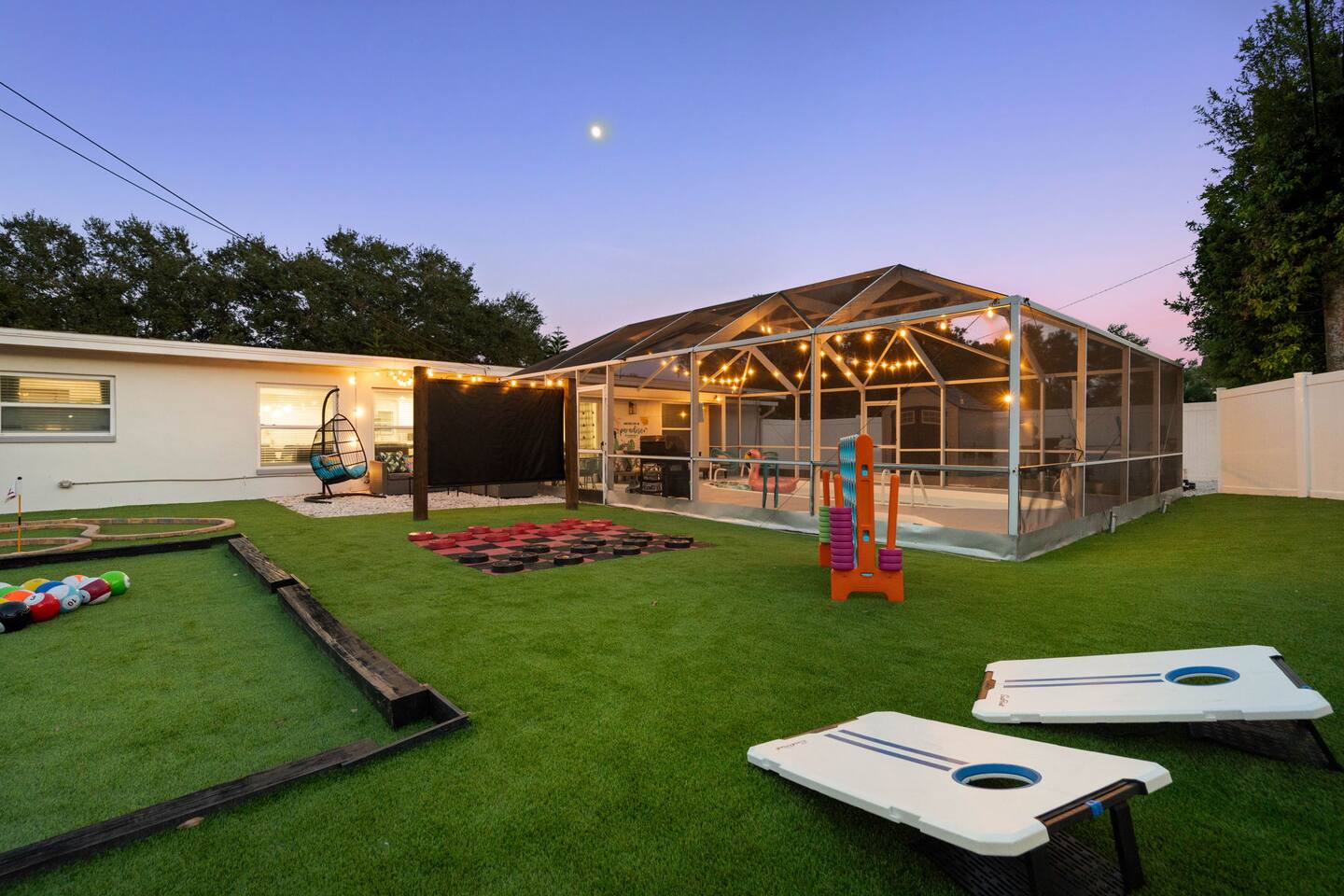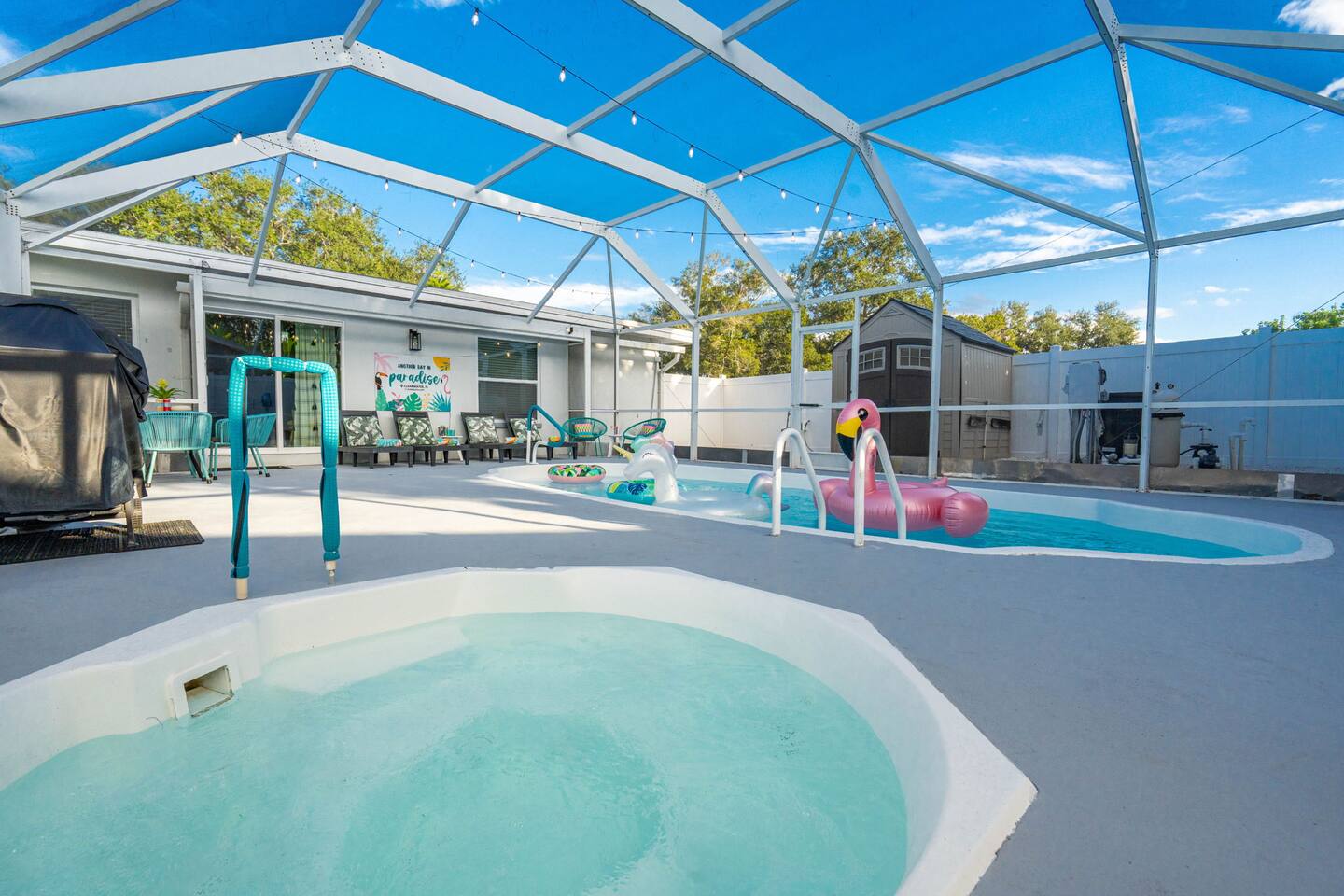 Come stay at one of Clearwater’s most fun and iconic homes! 🌴 The Jungle Villa features 8 beds, sleeps up to 12 guests, and offers a heated pool, in-ground hot tub, outdoor grill, mini golf, fire pit, exclusive kick-billiards, and a movie projector by the pool. 🎥☀️ Located just 12 minutes from Clearwater Beach, it’s the perfect place for more fun and more memories with family and friends! 🏖️🎉