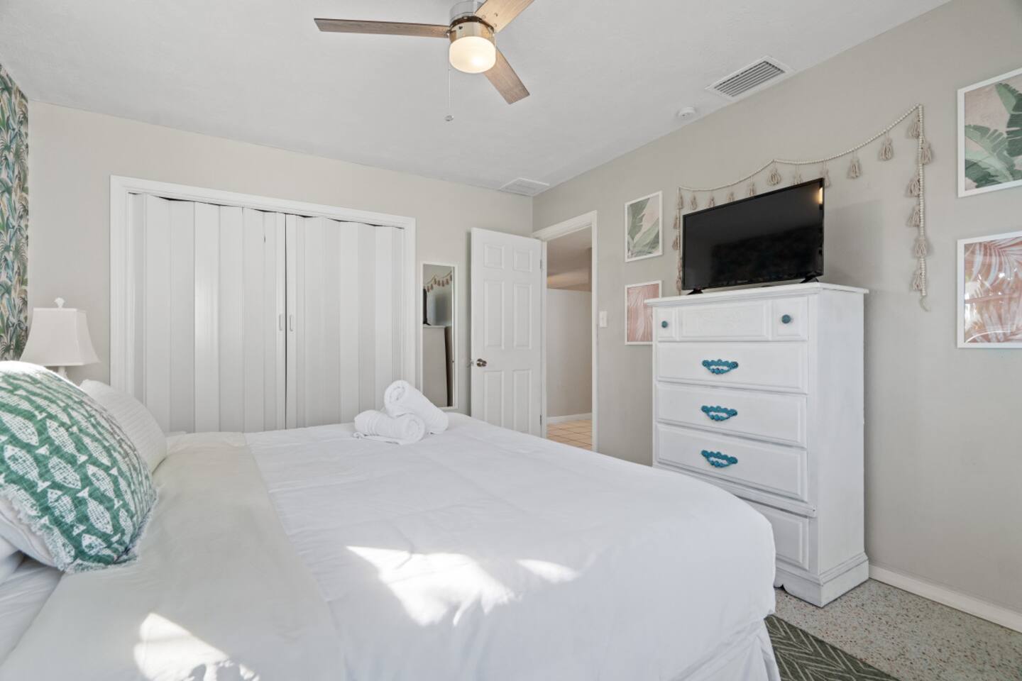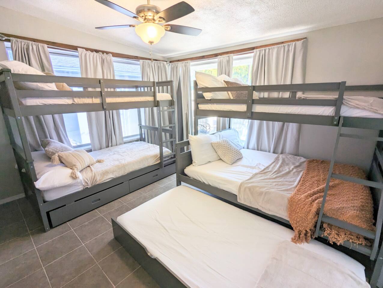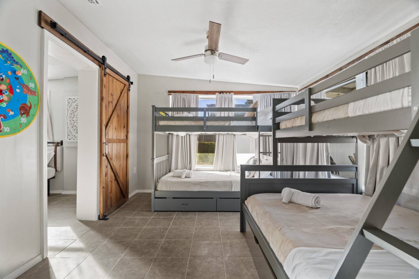 The home features 4 bedrooms and 2 bathrooms, with a total of 8 beds (2 Kings, 1 Queen, a Twin over Twin Bunk, and a Twin over Full Bunk with a pullout Twin Trundle Bed), comfortably sleeping up to 12 guests. It’s perfect for families or groups of friends to stay together and make lasting memories! 🏡✨ The kitchen is fully equipped, allowing you to cook your own meals or enjoy takeout from one of the many nearby restaurants. 🍽️ Additional amenities include a heated pool (available for an additional charge), pool beer pong, and a screened-in lanai. 🌴 There's plenty of parking, convenient on-site laundry, and a shaded outdoor space perfect for relaxing and enjoying the fresh Florida air. 🔥🏖️ You’ll also have access to a fire pit, BBQ grill, and beach towels provided for your use around the pool! 🏝️ Heated Pool – Additional Fee Required • Pool heat: $30/day 🌟 Amenities • Beach Kit (Boogie Boards) • Foosball Table • Ping Pong Table • Ladder Golf • Cornhole • Giant Connect 4 • Giant Jenga • Poker Set • Charades • Kids Darts Game • 360 Floating Basketball • Large Checkers/Chess/Tic Tac Toe Game • Twister • Pool Floats 🌟 Activities To Do • Jet Skiing • Parasailing • Skydiving • Whale Watching • Sunset Cruises • Kayaking • Paddleboarding • Snorkeling • Beach Hopping • Fishing Charters • Fishing • Nature Preserves & Hiking • Variety of Local Restaurants • Music & Art Festivals, Local Events • Entertainment (Comedy, Magicians, Performers, Sand Castle Competitions, Live Music, Museums, Aquariums, Theme Parks, Water Sports, Professional Sports, and more) 📌House Rules This home is equipped with outdoor security cameras 📸 as well as noise-detection hardware 🔊 (which does not record audio) that monitors high noise levels. Breaking any of the house rules—such as having unregistered guests, hosting parties, allowing unregistered pets🐾, engaging in illegal activity, smoking indoors, or violating quiet hours 🔕—can and will result in the immediate cancellation of your reservation without a refund💸. Neighbors are diligent in reporting any violations, so please be respectful of the property, the furnishings, quiet hours🌙, and the neighbors to ensure a positive stay! 😊 📏 Please Note – House Rules Respecting the space ensures a smooth and enjoyable stay. Violation of these rules may result in immediate cancellation without refund: Pet fee: Pet fee is $150 per stay for 1 pet, and $50 per each additional pet. Please limit your pets to 2 total. • Parties, events, and gatherings are strictly prohibited. • Quiet hours: 10 PM – 8 AM • No open flames, candles, or matches • No shoes inside the house – cleaning/replacement fees apply for stains • Thermostat must be set between 69°F and 78°F • Keep doors/windows closed to avoid pest entry (Florida is a tropical climate)