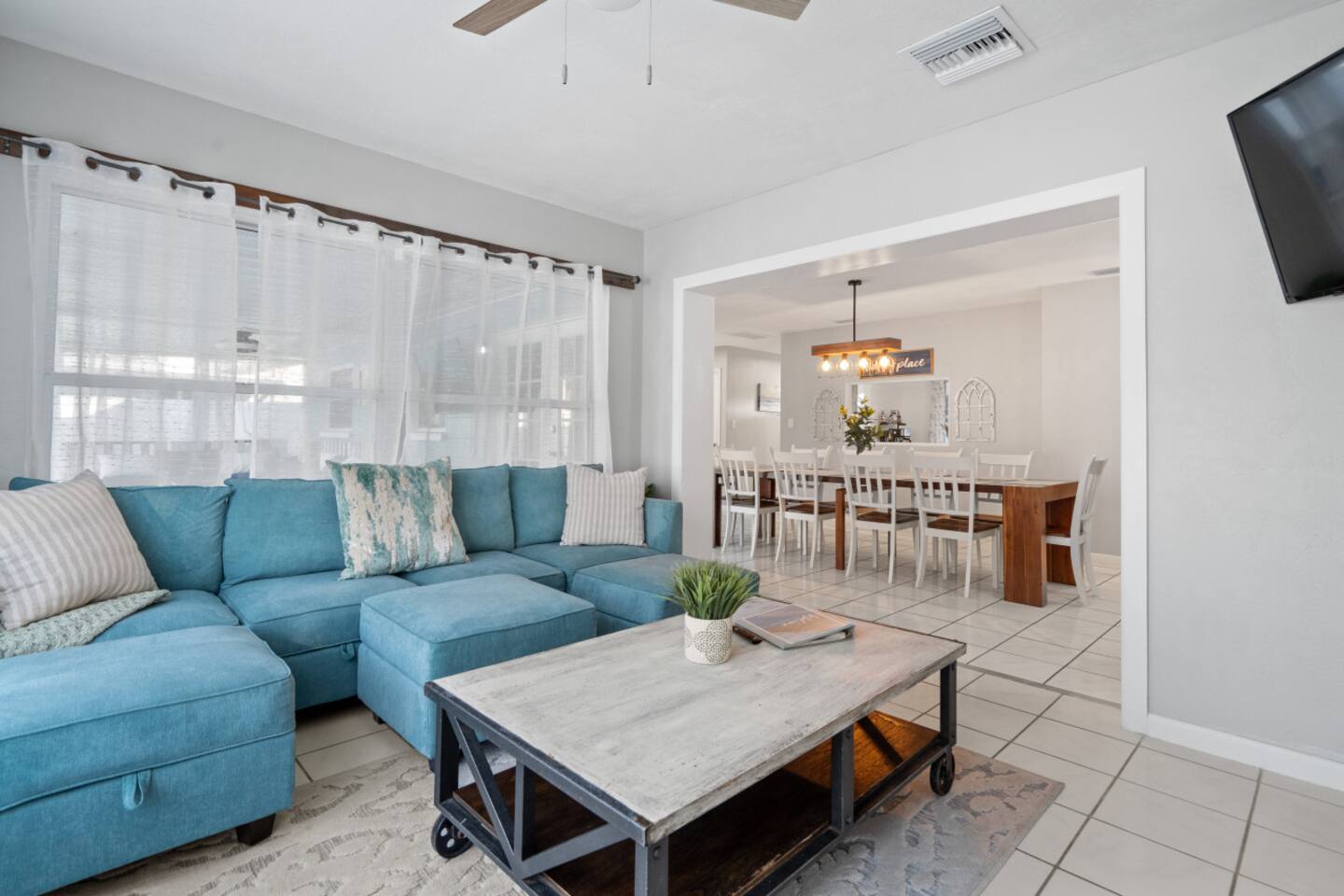 Welcome to your Florida beach paradise! 🌞 This charming beachy home features a gorgeous heated pool and is just 5 minutes away from the famous white sugar sand beaches. Perfect for relaxation, swimming, and exploring the Gulf Coast's ocean wildlife. Comfortably sleeps up to 12 with 8 beds: 2 Kings, 1 Queen, 1 Twin Bunk, and 1 Twin-over-Full-over-Twin Trundle.