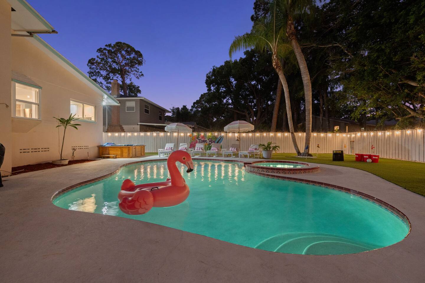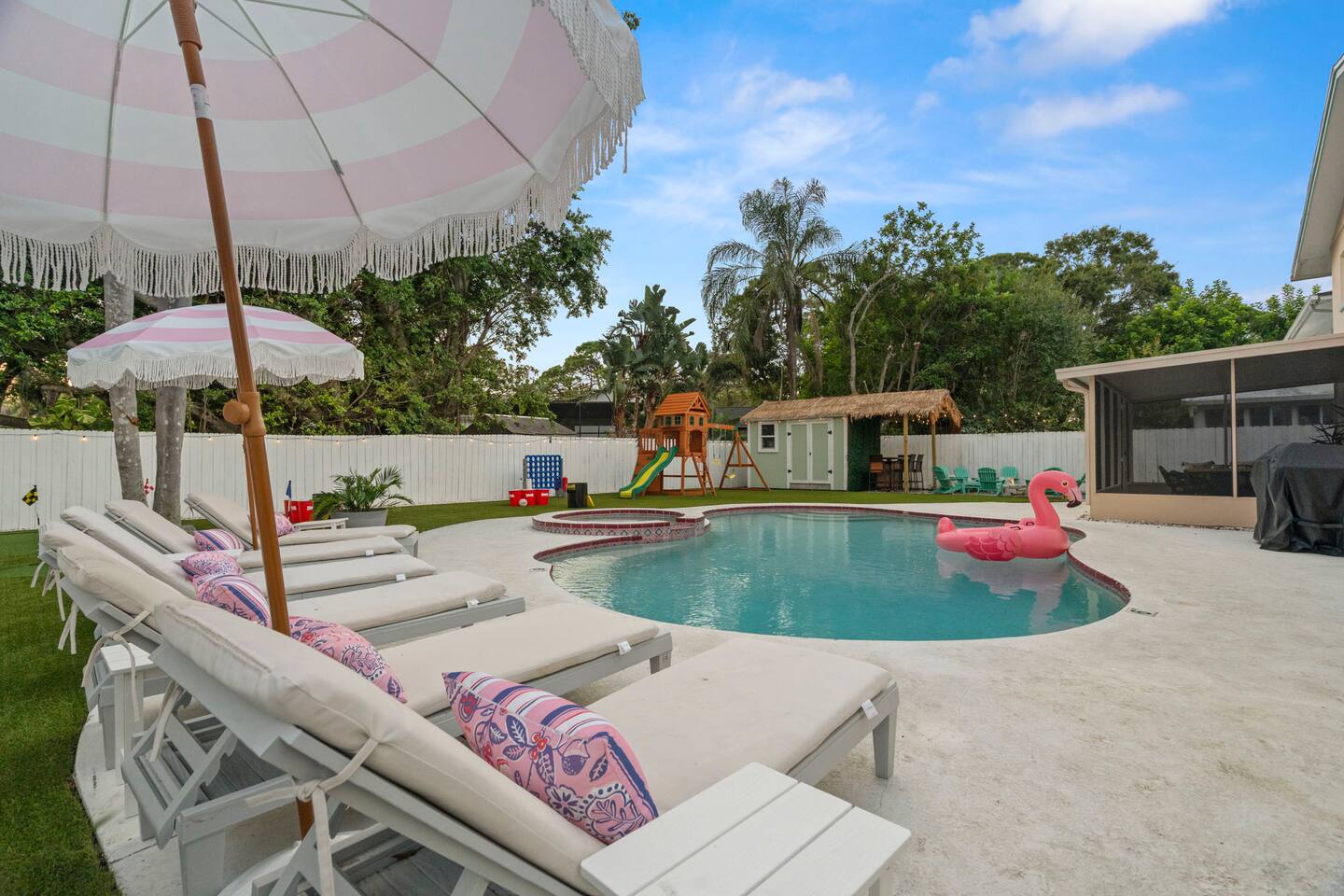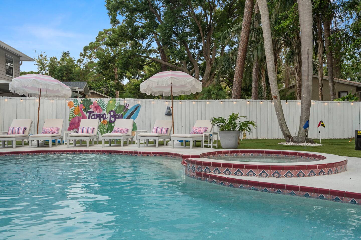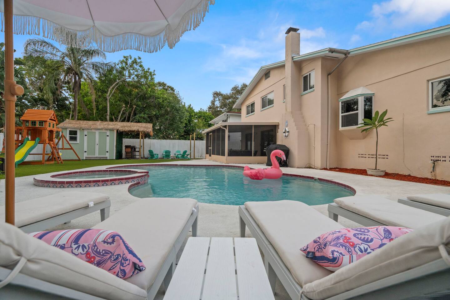 Spend your vacation at this fun-filled home in Seminole, just a 5 minute drive to the world-renowned white sand beaches! Comfortably sleeps up to 16 guests and is perfect for your Florida getaway! Enjoy a heated pool and hot tub, outdoor dining, a tiki cabana, and a grill — perfect for sunny days! ☀️🍹 Play a round of Mini golf, Cornhole, Yard pong or Kanjam by the pool. 🎯 And at night, roast marshmallows at the firepit, chill in the hot tub, or hit the game room for a Nintendo tournament! You're a short drive to the famous white sand beaches — and we’ve got your Beach Kit ready with loungers, umbrella, and cooler! 🌟 Amenities • Heated Pool • Hot tub • Mini Golf • Outdoor bowling • Billiards • Nintendo Switch and board games • Foosball and Skeeball • Basketball pop-a-shot • Home gym with cable machines and Peloton • Yard Games (Kanjam, Yard pong, cornhole, Bocce ball and connect 4) • Fire pit • Beach Kit (loungers, snorkel, body boards, umbrella, cooler) • Beach Towels • Coffee Bar • Smart TVs 🏝️ Heated Pool and Hot Tub – Additional Fees Required • Pool heat: $30/day • Hot Tub heat: $25/day • Both for a bundle price of $50! 📌House Rules Respecting the space ensures a smooth and enjoyable stay. Violation of these rules may result in immediate cancellation without refund: • No parties or events • Quiet hours are from 10 pm-8 am • No unregistered guests • No smoking • No open flames, candles, or matches • No shoes inside the house – cleaning/replacement fees apply for stains • Thermostat must be set between 69°F and 78°F • Keep doors/windows closed to avoid pest entry (Florida is a tropical climate) This home is equipped with outdoor security cameras 📸 as well as noise-detection hardware 🔊 (which does not record audio) that monitors high noise levels. Breaking any of the house rules—such as having unregistered guests, hosting parties, allowing unregistered pets🐾, engaging in illegal activity, smoking indoors, or violating quiet hours 🔕—can and will result in the immediate cancellation of your reservation without a refund💸. Neighbors are diligent in reporting any violations, so please be respectful of the property, the furnishings, quiet hours🌙, and the neighbors to ensure a positive stay! 😊 We’ve thoughtfully prepared this home to offer both fun and relaxation for your family or group. Enjoy every moment—indoors and out!🙂 The check-in instructions will be sent to you a day before your arrival 📅, so you'll have a clear guide to help with your check-in process 🏡. Similarly, the check-out instructions will be sent a day before your departure 🕒 to ensure a smooth check-out 🚪. If you need an early check-in ⏰ or late check-out 🛏️, please inform us ahead of time so we can check availability. Please note, this request is not guaranteed and depends on availability 🔄. We’re here to ensure you have a comfortable and enjoyable stay! 😊 If you need anything during your time here, don’t hesitate to reach out. Whether it’s recommendations, assistance with the property, or any special requests, we’re just a message away 📱. Pet fee: Pet fee is $150 per stay for 1 pet, and $50 per each additional pet. Please limit your pets to 2 total. Please note, we're happy to help during business hours, but in case of emergencies, we’re available 24/7 🚨. Please take a moment to carefully read the house rules 🏡 and any additional rules that may apply 🔑. These guidelines are in place to ensure a smooth and pleasant stay for everyone. If you have any questions or need clarifications, feel free to message us anytime 📩. We're here to help and make sure everything is clear!🙂