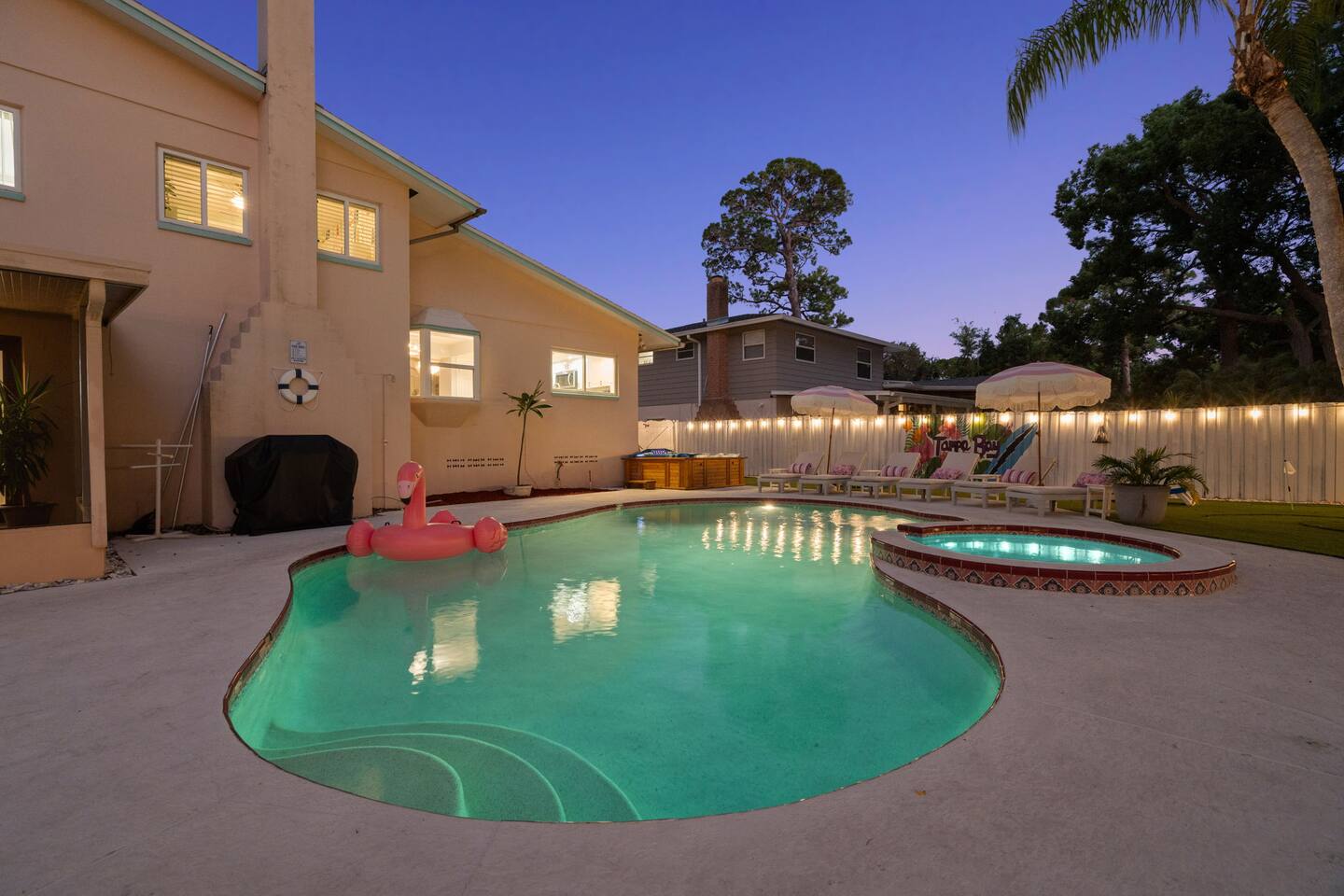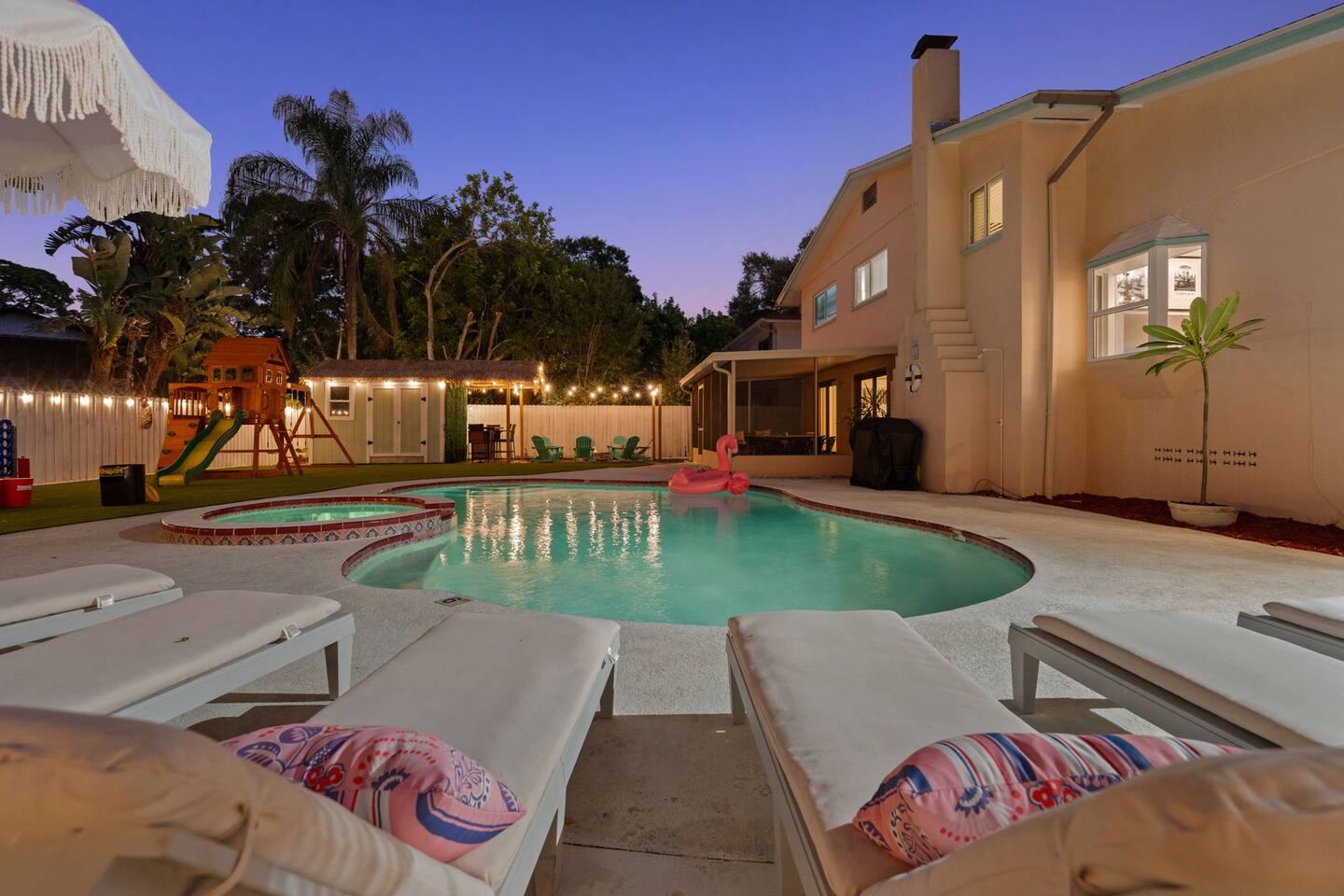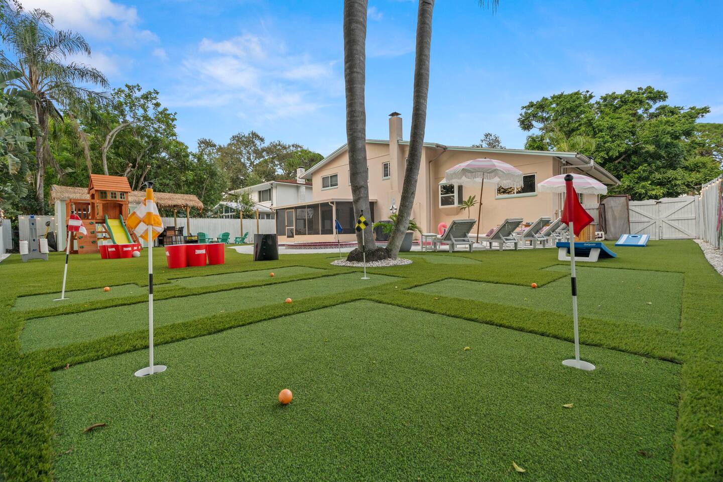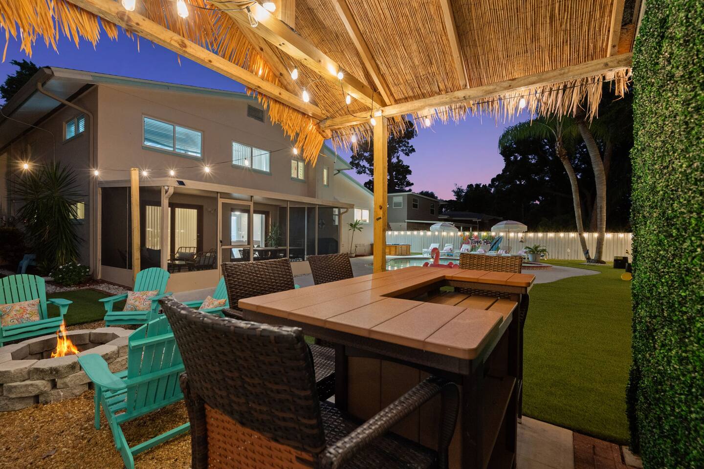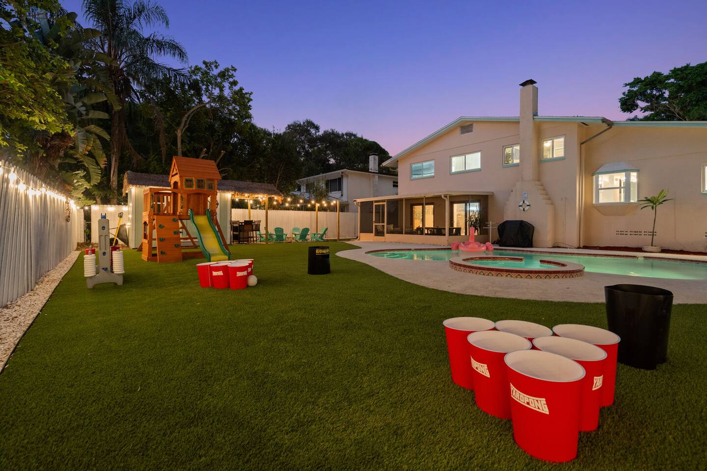 Spend your vacation at this fun-filled home in Seminole, just a 5 minute drive to the world-renowned white sand beaches! Comfortably sleeps up to 16 guests and is perfect for your Florida getaway! Enjoy a heated pool and hot tub, outdoor dining, a tiki cabana, and a grill — perfect for sunny days! ☀️🍹 Play a round of Mini golf, Cornhole, Yard pong or Kanjam by the pool. 🎯 And at night, roast marshmallows at the firepit, chill in the hot tub, or hit the game room for a Nintendo tournament! You're a short drive to the famous white sand beaches — and we’ve got your Beach Kit ready with loungers, umbrella, and cooler! 🌟 Amenities • Heated Pool • Hot tub • Mini Golf • Outdoor bowling • Billiards • Nintendo Switch and board games • Foosball and Skeeball • Basketball pop-a-shot • Home gym with cable machines and Peloton • Yard Games (Kanjam, Yard pong, cornhole, Bocce ball and connect 4) • Fire pit • Beach Kit (loungers, snorkel, body boards, umbrella, cooler) • Beach Towels • Coffee Bar • Smart TVs 🏝️ Heated Pool and Hot Tub – Additional Fees Required • Pool heat: $30/day • Hot Tub heat: $25/day • Both for a bundle price of $50! 📌House Rules Respecting the space ensures a smooth and enjoyable stay. Violation of these rules may result in immediate cancellation without refund: • No parties or events • Quiet hours are from 10 pm-8 am • No unregistered guests • No smoking • No open flames, candles, or matches • No shoes inside the house – cleaning/replacement fees apply for stains • Thermostat must be set between 69°F and 78°F • Keep doors/windows closed to avoid pest entry (Florida is a tropical climate) This home is equipped with outdoor security cameras 📸 as well as noise-detection hardware 🔊 (which does not record audio) that monitors high noise levels. Breaking any of the house rules—such as having unregistered guests, hosting parties, allowing unregistered pets🐾, engaging in illegal activity, smoking indoors, or violating quiet hours 🔕—can and will result in the immediate cancellation of your reservation without a refund💸. Neighbors are diligent in reporting any violations, so please be respectful of the property, the furnishings, quiet hours🌙, and the neighbors to ensure a positive stay! 😊 We’ve thoughtfully prepared this home to offer both fun and relaxation for your family or group. Enjoy every moment—indoors and out!🙂 The check-in instructions will be sent to you a day before your arrival 📅, so you'll have a clear guide to help with your check-in process 🏡. Similarly, the check-out instructions will be sent a day before your departure 🕒 to ensure a smooth check-out 🚪. If you need an early check-in ⏰ or late check-out 🛏️, please inform us ahead of time so we can check availability. Please note, this request is not guaranteed and depends on availability 🔄. We’re here to ensure you have a comfortable and enjoyable stay! 😊 If you need anything during your time here, don’t hesitate to reach out. Whether it’s recommendations, assistance with the property, or any special requests, we’re just a message away 📱. Pet fee: Pet fee is $150 per stay for 1 pet, and $50 per each additional pet. Please limit your pets to 2 total. Please note, we're happy to help during business hours, but in case of emergencies, we’re available 24/7 🚨. Please take a moment to carefully read the house rules 🏡 and any additional rules that may apply 🔑. These guidelines are in place to ensure a smooth and pleasant stay for everyone. If you have any questions or need clarifications, feel free to message us anytime 📩. We're here to help and make sure everything is clear!🙂