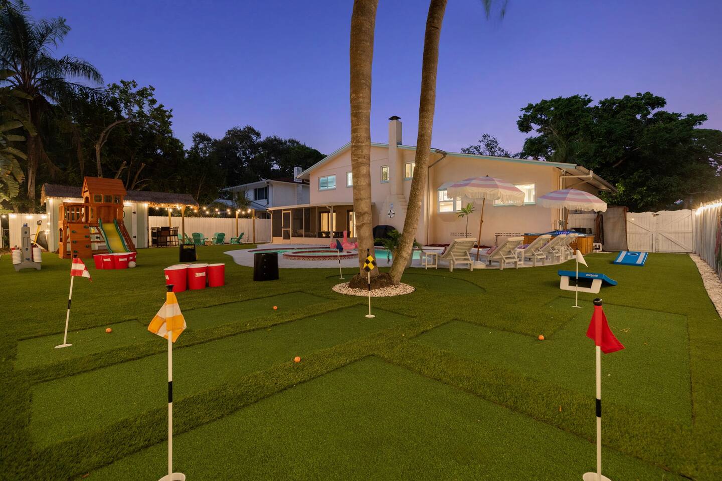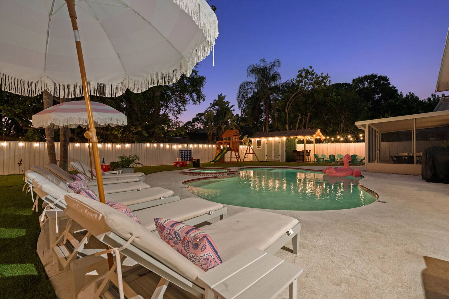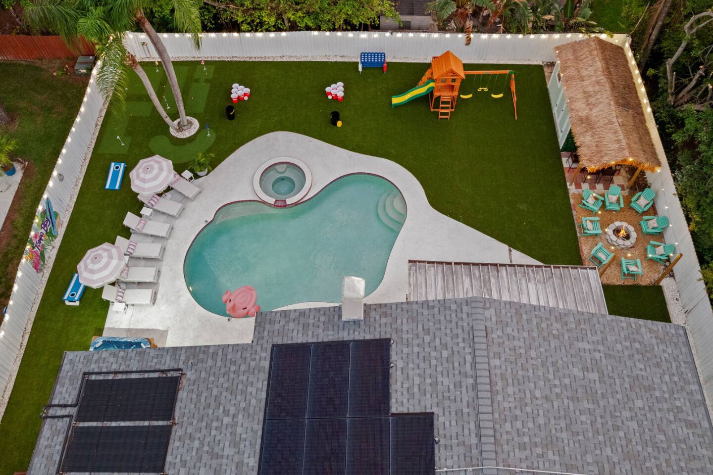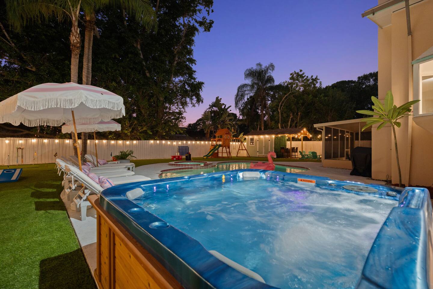 Spend your vacation at this fun-filled home in Seminole, just a 5 minute drive to the world-renowned white sand beaches! Comfortably sleeps up to 16 guests and is perfect for your Florida getaway! Enjoy a heated pool and hot tub, outdoor dining, a tiki cabana, and a grill — perfect for sunny days! ☀️🍹 Play a round of Mini golf, Cornhole, Yard pong or Kanjam by the pool. 🎯 And at night, roast marshmallows at the firepit, chill in the hot tub, or hit the game room for a Nintendo tournament! You're a short drive to the famous white sand beaches — and we’ve got your Beach Kit ready with loungers, umbrella, and cooler! 🌟 Amenities • Heated Pool • Hot tub • Mini Golf • Outdoor bowling • Billiards • Nintendo Switch and board games • Foosball and Skeeball • Basketball pop-a-shot • Home gym with cable machines and Peloton • Yard Games (Kanjam, Yard pong, cornhole, Bocce ball and connect 4) • Fire pit • Beach Kit (loungers, snorkel, body boards, umbrella, cooler) • Beach Towels • Coffee Bar • Smart TVs 🏝️ Heated Pool and Hot Tub – Additional Fees Required • Pool heat: $30/day • Hot Tub heat: $25/day • Both for a bundle price of $50! 📌House Rules Respecting the space ensures a smooth and enjoyable stay. Violation of these rules may result in immediate cancellation without refund: • No parties or events • Quiet hours are from 10 pm-8 am • No unregistered guests • No smoking • No open flames, candles, or matches • No shoes inside the house – cleaning/replacement fees apply for stains • Thermostat must be set between 69°F and 78°F • Keep doors/windows closed to avoid pest entry (Florida is a tropical climate) This home is equipped with outdoor security cameras 📸 as well as noise-detection hardware 🔊 (which does not record audio) that monitors high noise levels. Breaking any of the house rules—such as having unregistered guests, hosting parties, allowing unregistered pets🐾, engaging in illegal activity, smoking indoors, or violating quiet hours 🔕—can and will result in the immediate cancellation of your reservation without a refund💸. Neighbors are diligent in reporting any violations, so please be respectful of the property, the furnishings, quiet hours🌙, and the neighbors to ensure a positive stay! 😊 We’ve thoughtfully prepared this home to offer both fun and relaxation for your family or group. Enjoy every moment—indoors and out!🙂 The check-in instructions will be sent to you a day before your arrival 📅, so you'll have a clear guide to help with your check-in process 🏡. Similarly, the check-out instructions will be sent a day before your departure 🕒 to ensure a smooth check-out 🚪. If you need an early check-in ⏰ or late check-out 🛏️, please inform us ahead of time so we can check availability. Please note, this request is not guaranteed and depends on availability 🔄. We’re here to ensure you have a comfortable and enjoyable stay! 😊 If you need anything during your time here, don’t hesitate to reach out. Whether it’s recommendations, assistance with the property, or any special requests, we’re just a message away 📱. Pet fee: Pet fee is $150 per stay for 1 pet, and $50 per each additional pet. Please limit your pets to 2 total. Please note, we're happy to help during business hours, but in case of emergencies, we’re available 24/7 🚨. Please take a moment to carefully read the house rules 🏡 and any additional rules that may apply 🔑. These guidelines are in place to ensure a smooth and pleasant stay for everyone. If you have any questions or need clarifications, feel free to message us anytime 📩. We're here to help and make sure everything is clear!🙂