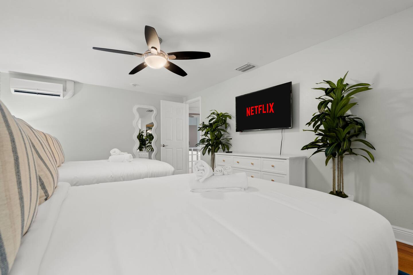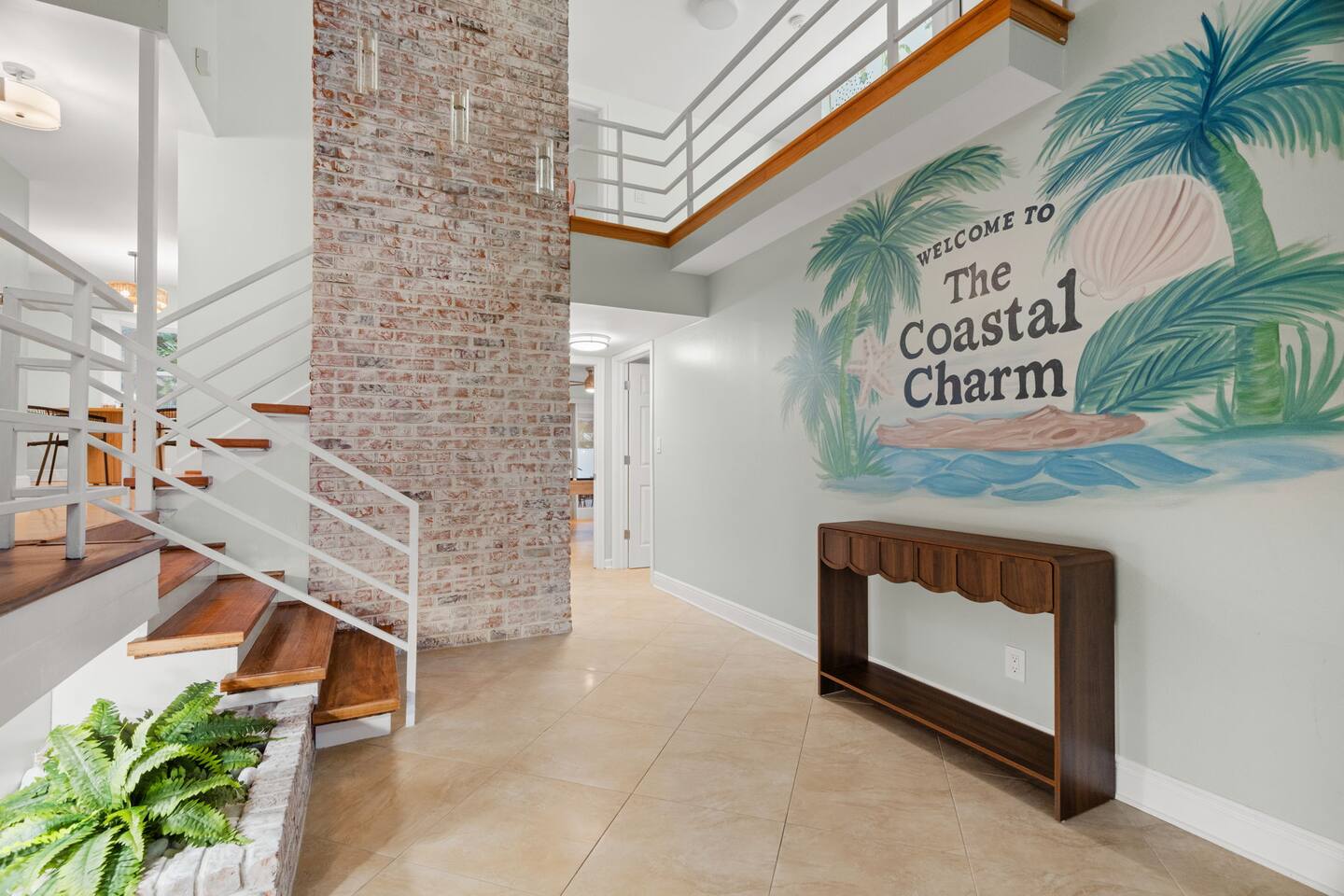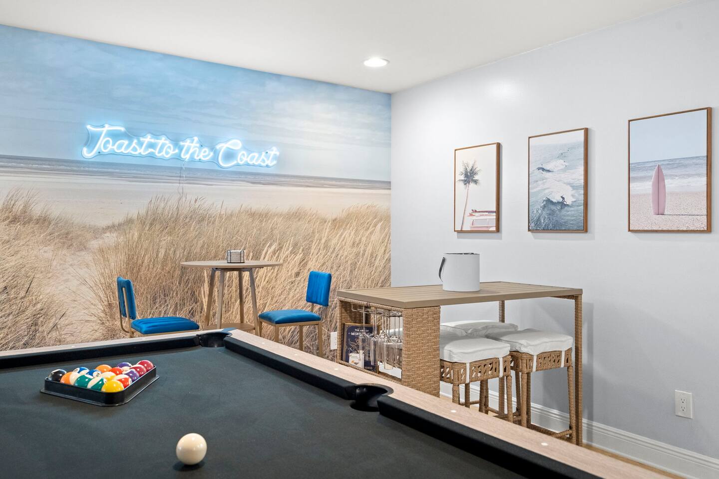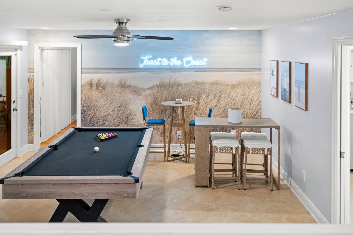 Soak up the Florida sunshine at The Coastal Charm- a 5 bedroom, 3 bathroom home that sleeps 16! With an indoor game room and Nintendo Switch, billiards table, and commercial workout equipment - this home has something for the whole family! This 5-bedroom home offers 9 beds: • 1 King in the downstairs suite • 1 King in an upstairs guest bedroom • 2 Queens in the upstairs suite • 1 King in an upstairs guest bedroom • Queen over queen and twin over twin bunk in an upstairs guest bedroom