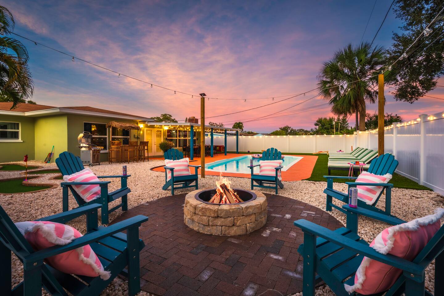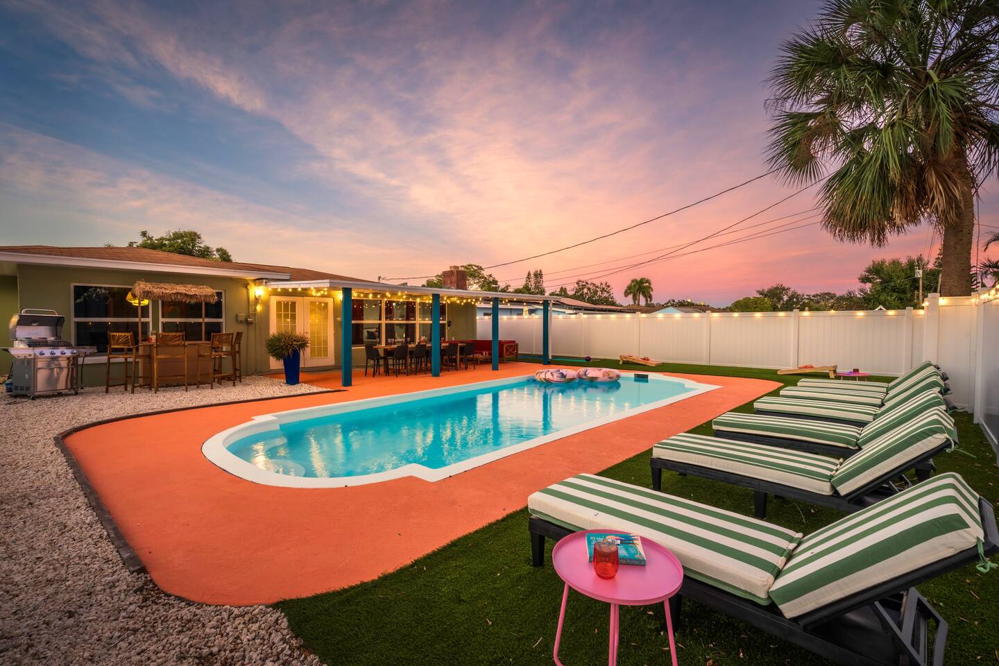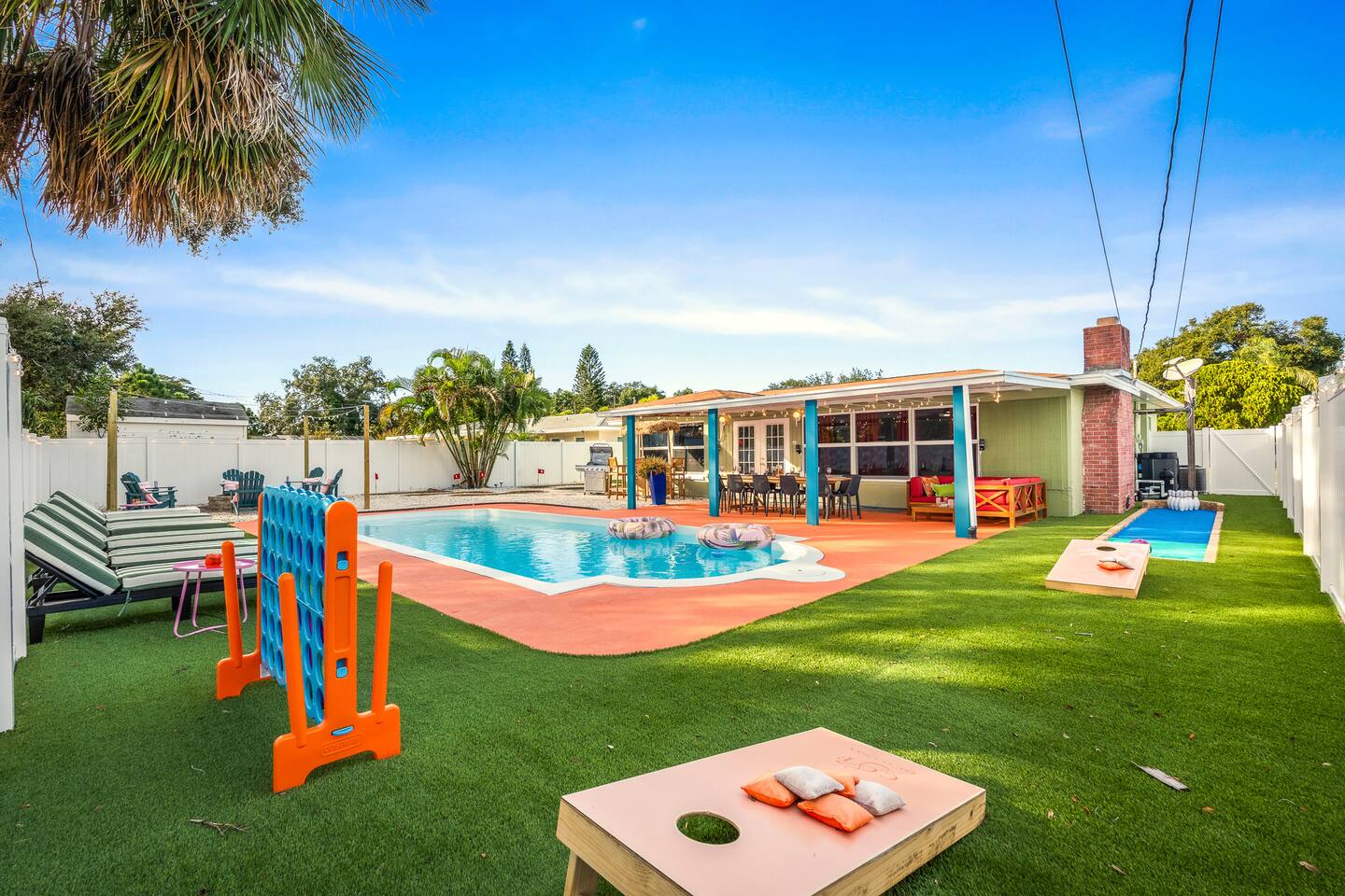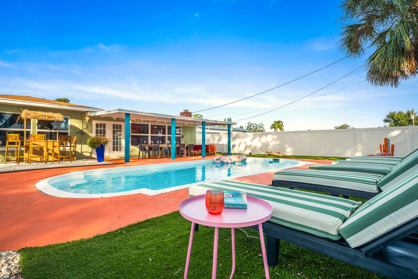 🏡This 4-bedroom/2-bath home offers 6 beds: • 1 King bedroom (connected to Jack n Jill bathroom) • 2 Queen bedroom (connected to Jack n Jill bathroom) • 1 King bedroom • Queen over queen bunk bedroom ⛳ Amenities: • Heated, in-ground pool – swim year-round • Backyard mini-golf course & outdoor bowling • Tiki bar with gas grill for sunset BBQs • Fire pit for cozy evenings under the stars • Sun loungers to soak up the Florida sunshine • Garage game room: pool table, classic Ms. Pac-Man, and many other games & activities ☀️ Family- & Vacation-Ready: • Fully stocked kitchen for easy cooking & entertaining • Towels, linens, and essentials provided • Beach gear and chairs for your Gulf Coast adventures • Pack-and-play crib and high chair included • Activities for kids, teens, and adults – fun for all ages 📍Prime Location & Boating Convenience: • Just 6 minutes to the sugar-white sand beaches of the Gulf Coast • 4 minutes to Belleair Causeway public boat ramp – perfect for boating & fishing • Double-wide driveway can accommodate a small boat and trailer up to 25' total length (including trailer tongue) – ideal for water lovers! • Super close to shopping, dining, and local attractions From poolside fun and backyard games to arcade challenges and boating adventures, this home offers everything you need for an unforgettable Florida getaway. Lounge, play, relax, and make memories with family and friends – your ultimate Largo vacation starts here! 🏝️ Additional Fee Required for Pool Heating • Pool heat: $30/day 📌House Rules Respecting the space ensures a smooth and enjoyable stay. Violation of these rules may result in immediate cancellation without refund: • No parties or events • Quiet hours are from 10 pm-8 am • No unregistered guests • No smoking • No open flames, candles, or matches • No shoes inside the house – cleaning/replacement fees apply for stains • Thermostat must be set between 69°F and 78°F • Keep doors/windows closed to avoid pest entry (Florida is a tropical climate) This home is equipped with outdoor security cameras as well as noise-detection hardware (which does not record audio) that monitors high noise levels. Pet fee: Pet fee is $150 per stay for 1 pet, and $50 per each additional pet. Please limit your pets to 2 total. Breaking any of the house rules—such as having unregistered guests, hosting parties, allowing unregistered pets, engaging in illegal activity, smoking indoors, or violating quiet hours —can and will result in the immediate cancellation of your reservation without a refund. Neighbors are diligent in reporting any violations, so please be respectful of the property, the furnishings, quiet hours, and the neighbors to ensure a positive stay! 😊
