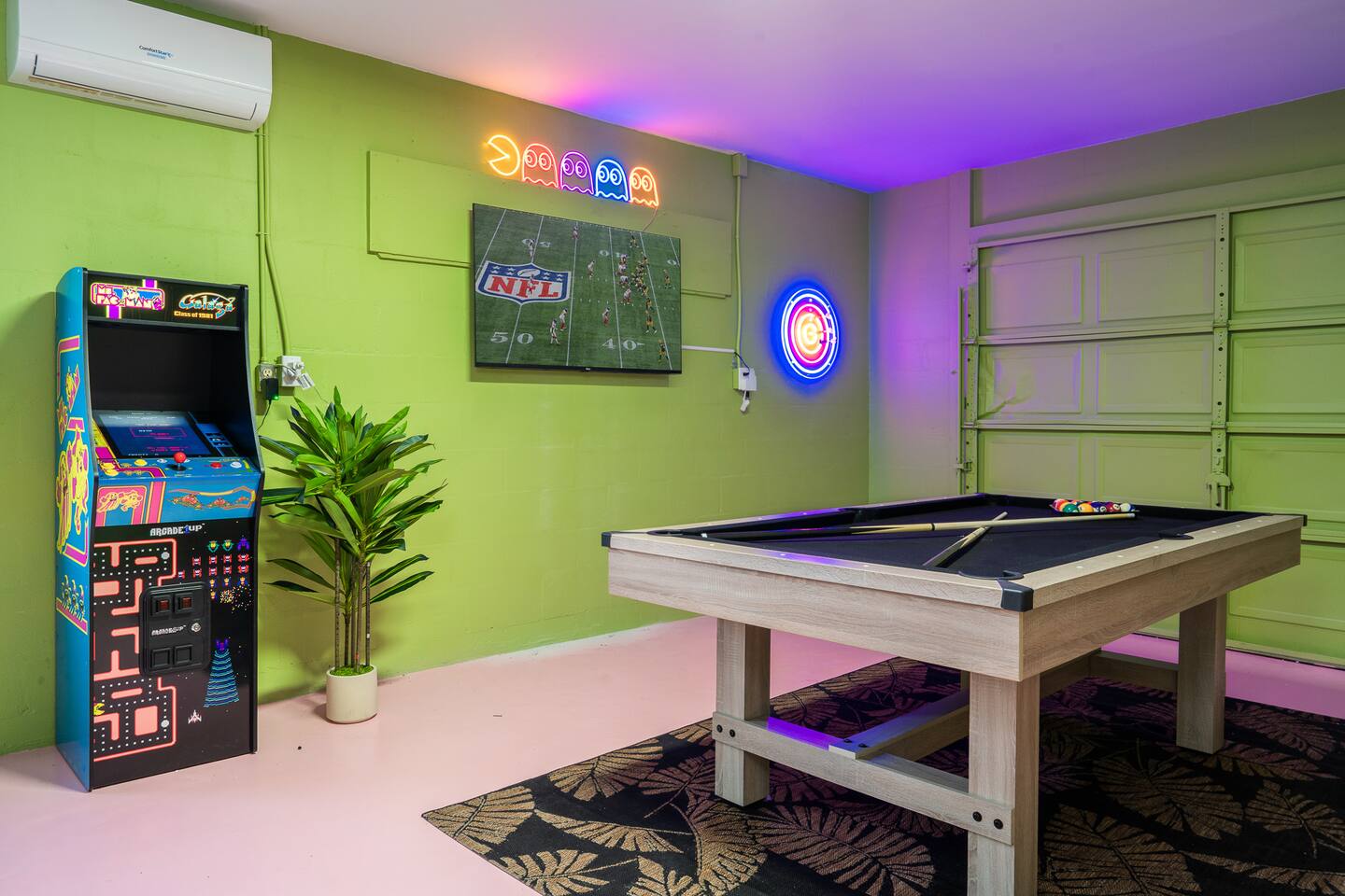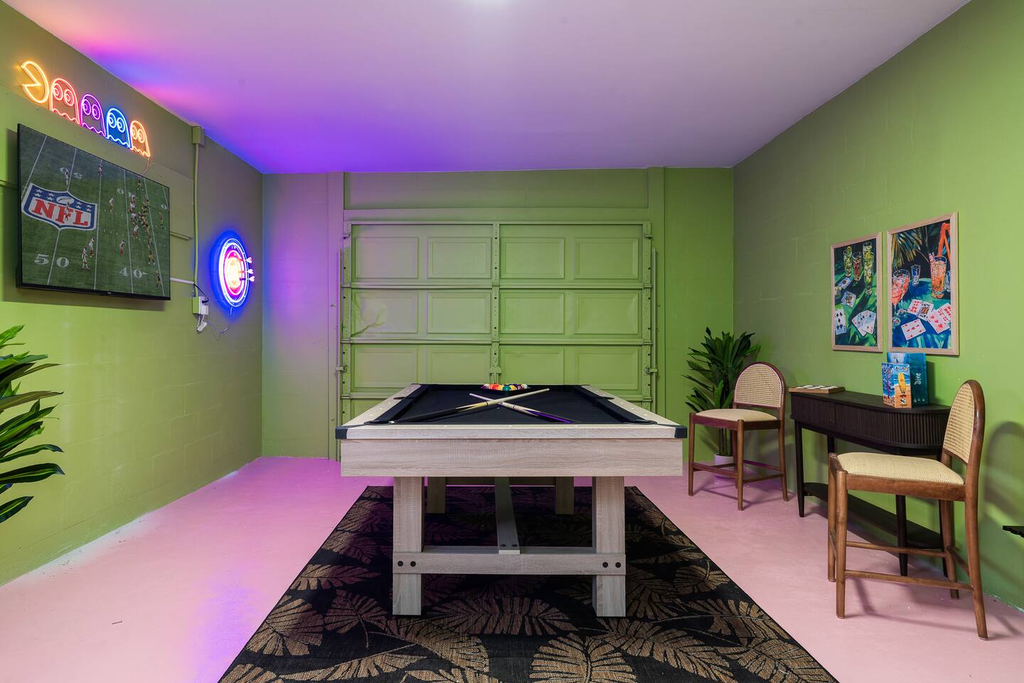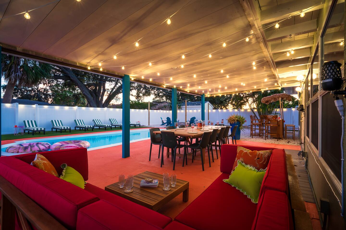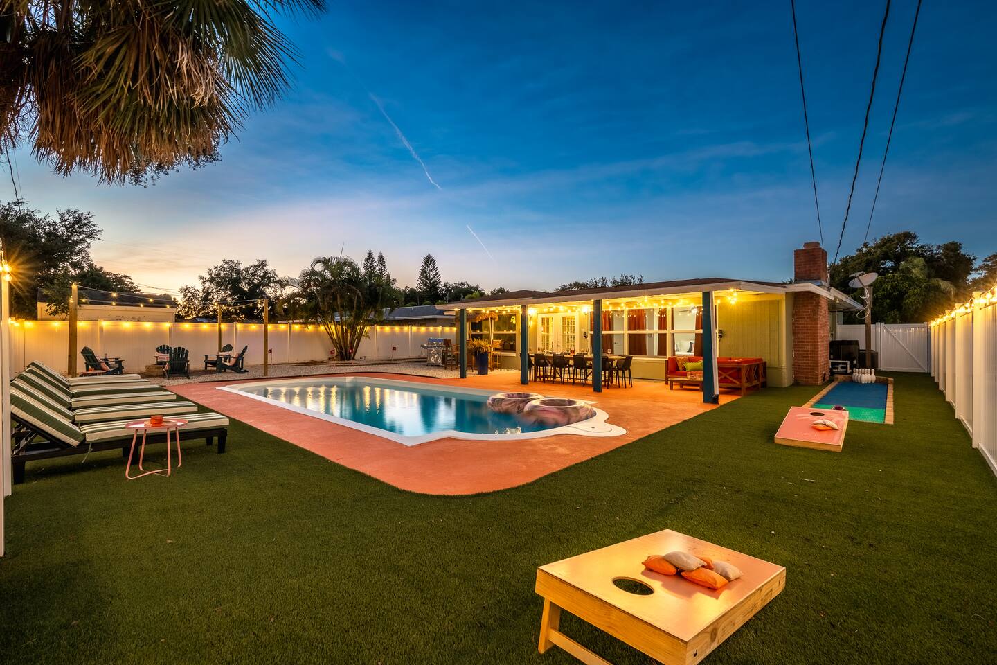 🏡This 4-bedroom/2-bath home offers 6 beds: • 1 King bedroom (connected to Jack n Jill bathroom) • 2 Queen bedroom (connected to Jack n Jill bathroom) • 1 King bedroom • Queen over queen bunk bedroom ⛳ Amenities: • Heated, in-ground pool – swim year-round • Backyard mini-golf course & outdoor bowling • Tiki bar with gas grill for sunset BBQs • Fire pit for cozy evenings under the stars • Sun loungers to soak up the Florida sunshine • Garage game room: pool table, classic Ms. Pac-Man, and many other games & activities ☀️ Family- & Vacation-Ready: • Fully stocked kitchen for easy cooking & entertaining • Towels, linens, and essentials provided • Beach gear and chairs for your Gulf Coast adventures • Pack-and-play crib and high chair included • Activities for kids, teens, and adults – fun for all ages 📍Prime Location & Boating Convenience: • Just 6 minutes to the sugar-white sand beaches of the Gulf Coast • 4 minutes to Belleair Causeway public boat ramp – perfect for boating & fishing • Double-wide driveway can accommodate a small boat and trailer up to 25' total length (including trailer tongue) – ideal for water lovers! • Super close to shopping, dining, and local attractions From poolside fun and backyard games to arcade challenges and boating adventures, this home offers everything you need for an unforgettable Florida getaway. Lounge, play, relax, and make memories with family and friends – your ultimate Largo vacation starts here! 🏝️ Additional Fee Required for Pool Heating • Pool heat: $30/day 📌House Rules Respecting the space ensures a smooth and enjoyable stay. Violation of these rules may result in immediate cancellation without refund: • No parties or events • Quiet hours are from 10 pm-8 am • No unregistered guests • No smoking • No open flames, candles, or matches • No shoes inside the house – cleaning/replacement fees apply for stains • Thermostat must be set between 69°F and 78°F • Keep doors/windows closed to avoid pest entry (Florida is a tropical climate) This home is equipped with outdoor security cameras as well as noise-detection hardware (which does not record audio) that monitors high noise levels. Pet fee: Pet fee is $150 per stay for 1 pet, and $50 per each additional pet. Please limit your pets to 2 total. Breaking any of the house rules—such as having unregistered guests, hosting parties, allowing unregistered pets, engaging in illegal activity, smoking indoors, or violating quiet hours —can and will result in the immediate cancellation of your reservation without a refund. Neighbors are diligent in reporting any violations, so please be respectful of the property, the furnishings, quiet hours, and the neighbors to ensure a positive stay! 😊