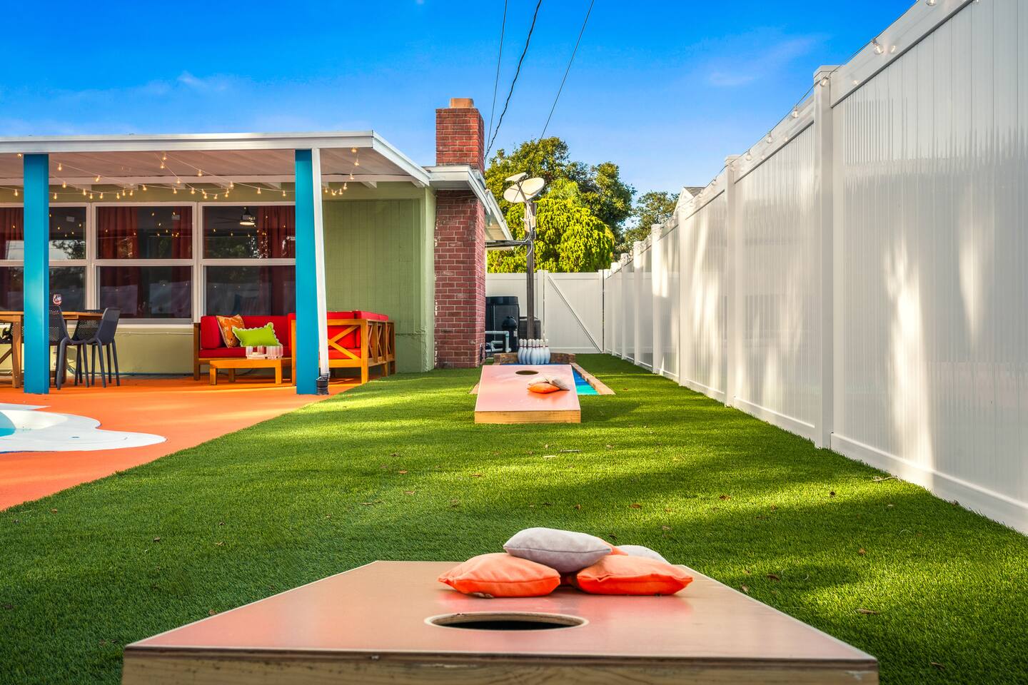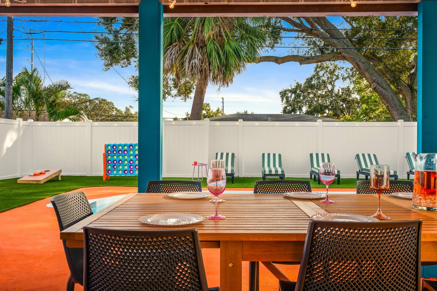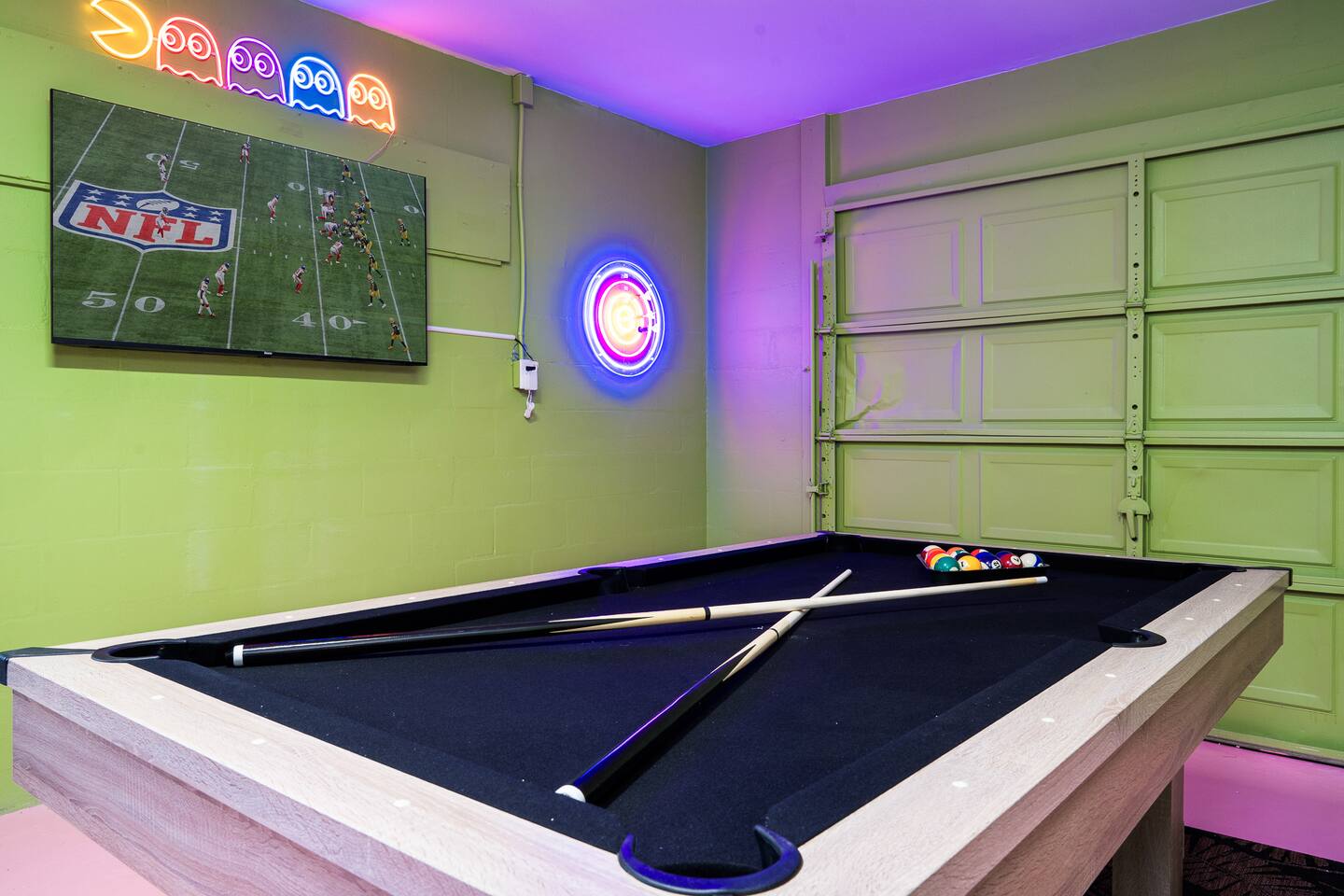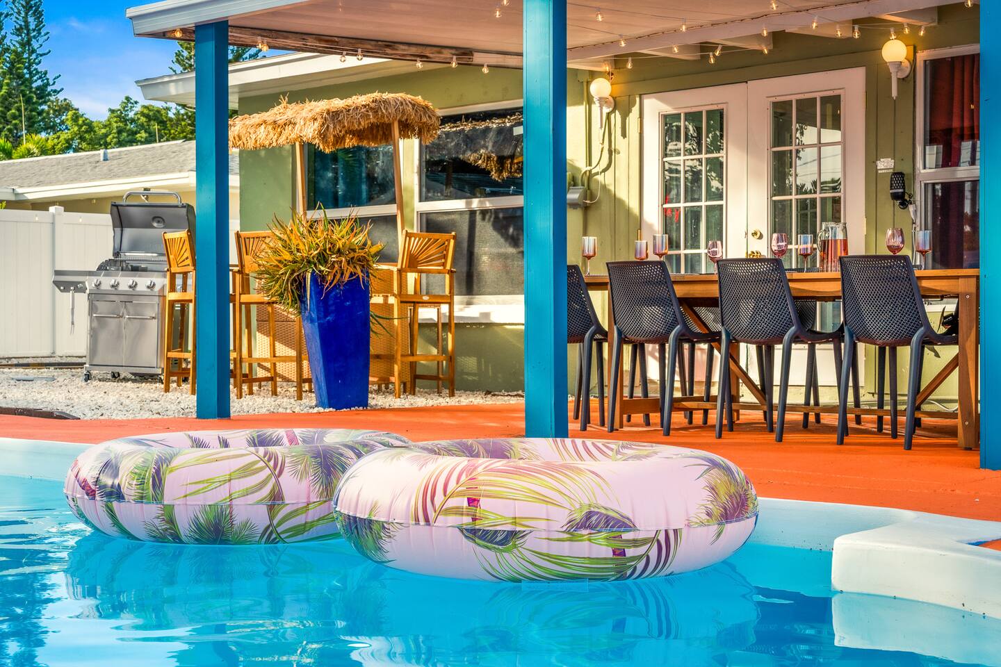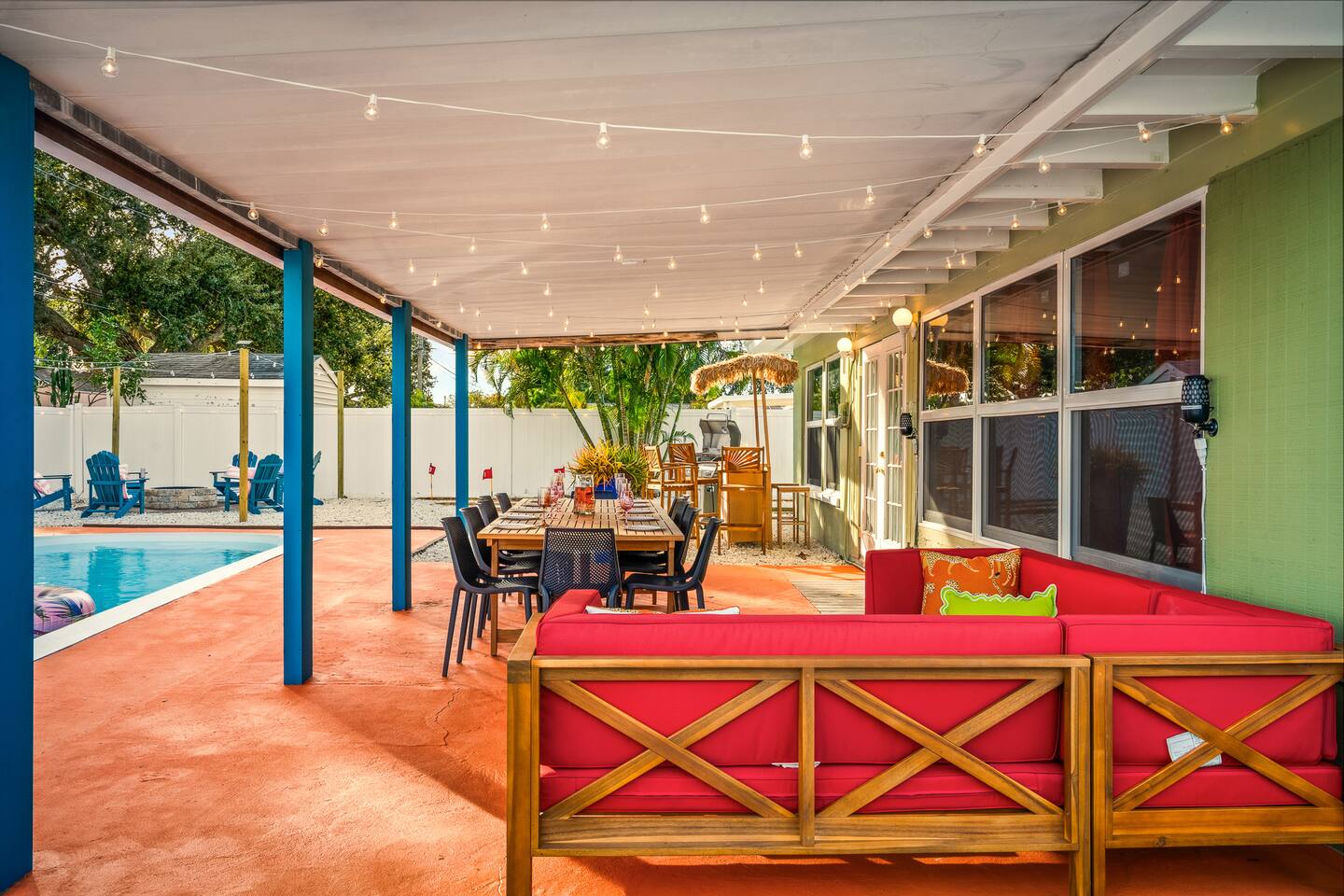 🏡This 4-bedroom/2-bath home offers 6 beds: • 1 King bedroom (connected to Jack n Jill bathroom) • 2 Queen bedroom (connected to Jack n Jill bathroom) • 1 King bedroom • Queen over queen bunk bedroom ⛳ Amenities: • Heated, in-ground pool – swim year-round • Backyard mini-golf course & outdoor bowling • Tiki bar with gas grill for sunset BBQs • Fire pit for cozy evenings under the stars • Sun loungers to soak up the Florida sunshine • Garage game room: pool table, classic Ms. Pac-Man, and many other games & activities ☀️ Family- & Vacation-Ready: • Fully stocked kitchen for easy cooking & entertaining • Towels, linens, and essentials provided • Beach gear and chairs for your Gulf Coast adventures • Pack-and-play crib and high chair included • Activities for kids, teens, and adults – fun for all ages 📍Prime Location & Boating Convenience: • Just 6 minutes to the sugar-white sand beaches of the Gulf Coast • 4 minutes to Belleair Causeway public boat ramp – perfect for boating & fishing • Double-wide driveway can accommodate a small boat and trailer up to 25' total length (including trailer tongue) – ideal for water lovers! • Super close to shopping, dining, and local attractions From poolside fun and backyard games to arcade challenges and boating adventures, this home offers everything you need for an unforgettable Florida getaway. Lounge, play, relax, and make memories with family and friends – your ultimate Largo vacation starts here! 🏝️ Additional Fee Required for Pool Heating • Pool heat: $30/day 📌House Rules Respecting the space ensures a smooth and enjoyable stay. Violation of these rules may result in immediate cancellation without refund: • No parties or events • Quiet hours are from 10 pm-8 am • No unregistered guests • No smoking • No open flames, candles, or matches • No shoes inside the house – cleaning/replacement fees apply for stains • Thermostat must be set between 69°F and 78°F • Keep doors/windows closed to avoid pest entry (Florida is a tropical climate) This home is equipped with outdoor security cameras as well as noise-detection hardware (which does not record audio) that monitors high noise levels. Pet fee: Pet fee is $150 per stay for 1 pet, and $50 per each additional pet. Please limit your pets to 2 total. Breaking any of the house rules—such as having unregistered guests, hosting parties, allowing unregistered pets, engaging in illegal activity, smoking indoors, or violating quiet hours —can and will result in the immediate cancellation of your reservation without a refund. Neighbors are diligent in reporting any violations, so please be respectful of the property, the furnishings, quiet hours, and the neighbors to ensure a positive stay! 😊
