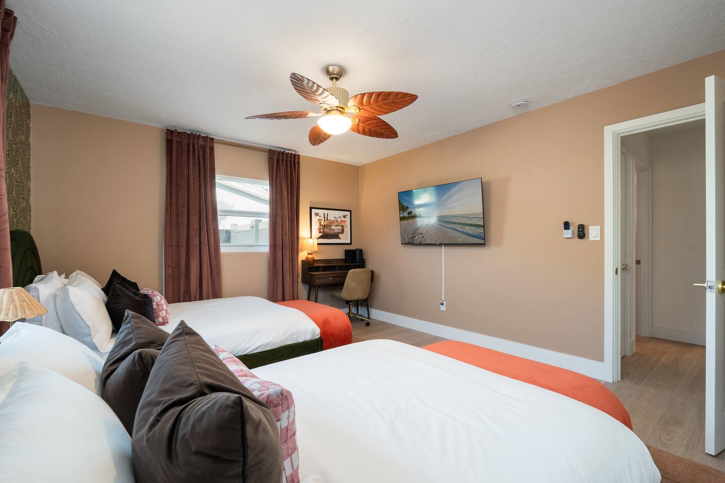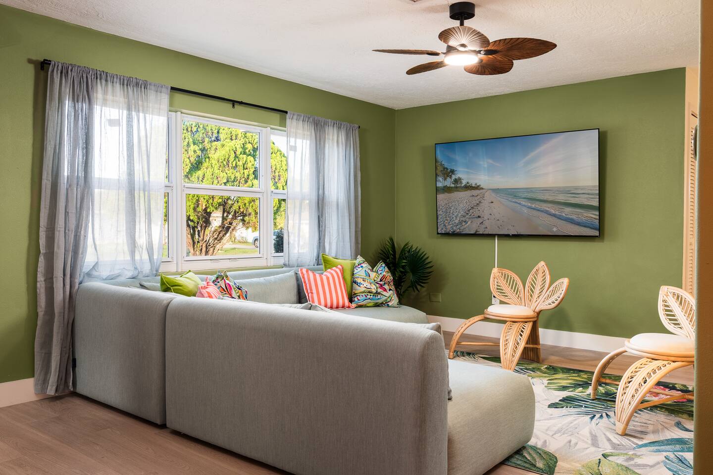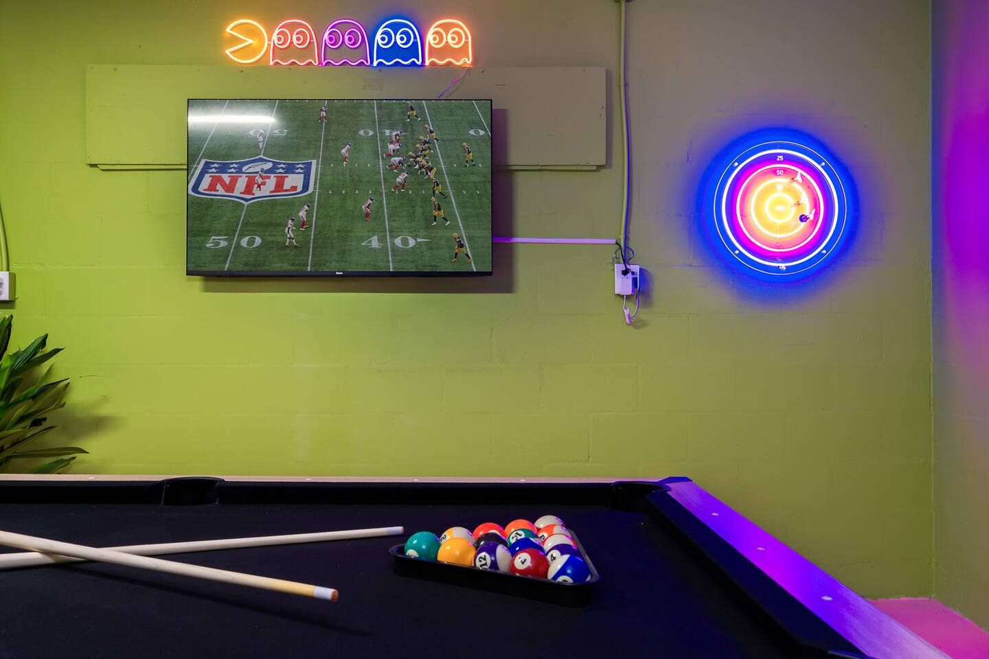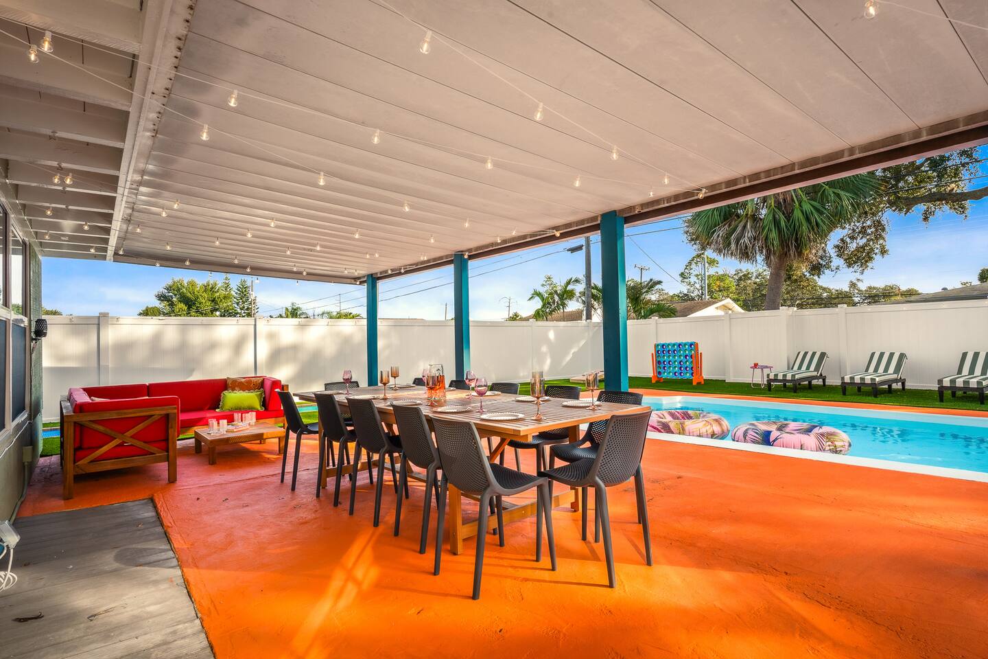 🏡This 4-bedroom/2-bath home offers 6 beds: • 1 King bedroom (connected to Jack n Jill bathroom) • 2 Queen bedroom (connected to Jack n Jill bathroom) • 1 King bedroom • Queen over queen bunk bedroom ⛳ Amenities: • Heated, in-ground pool – swim year-round • Backyard mini-golf course & outdoor bowling • Tiki bar with gas grill for sunset BBQs • Fire pit for cozy evenings under the stars • Sun loungers to soak up the Florida sunshine • Garage game room: pool table, classic Ms. Pac-Man, and many other games & activities ☀️ Family- & Vacation-Ready: • Fully stocked kitchen for easy cooking & entertaining • Towels, linens, and essentials provided • Beach gear and chairs for your Gulf Coast adventures • Pack-and-play crib and high chair included • Activities for kids, teens, and adults – fun for all ages 📍Prime Location & Boating Convenience: • Just 6 minutes to the sugar-white sand beaches of the Gulf Coast • 4 minutes to Belleair Causeway public boat ramp – perfect for boating & fishing • Double-wide driveway can accommodate a small boat and trailer up to 25' total length (including trailer tongue) – ideal for water lovers! • Super close to shopping, dining, and local attractions From poolside fun and backyard games to arcade challenges and boating adventures, this home offers everything you need for an unforgettable Florida getaway. Lounge, play, relax, and make memories with family and friends – your ultimate Largo vacation starts here! 🏝️ Additional Fee Required for Pool Heating • Pool heat: $30/day 📌House Rules Respecting the space ensures a smooth and enjoyable stay. Violation of these rules may result in immediate cancellation without refund: • No parties or events • Quiet hours are from 10 pm-8 am • No unregistered guests • No smoking • No open flames, candles, or matches • No shoes inside the house – cleaning/replacement fees apply for stains • Thermostat must be set between 69°F and 78°F • Keep doors/windows closed to avoid pest entry (Florida is a tropical climate) This home is equipped with outdoor security cameras as well as noise-detection hardware (which does not record audio) that monitors high noise levels. Pet fee: Pet fee is $150 per stay for 1 pet, and $50 per each additional pet. Please limit your pets to 2 total. Breaking any of the house rules—such as having unregistered guests, hosting parties, allowing unregistered pets, engaging in illegal activity, smoking indoors, or violating quiet hours —can and will result in the immediate cancellation of your reservation without a refund. Neighbors are diligent in reporting any violations, so please be respectful of the property, the furnishings, quiet hours, and the neighbors to ensure a positive stay! 😊