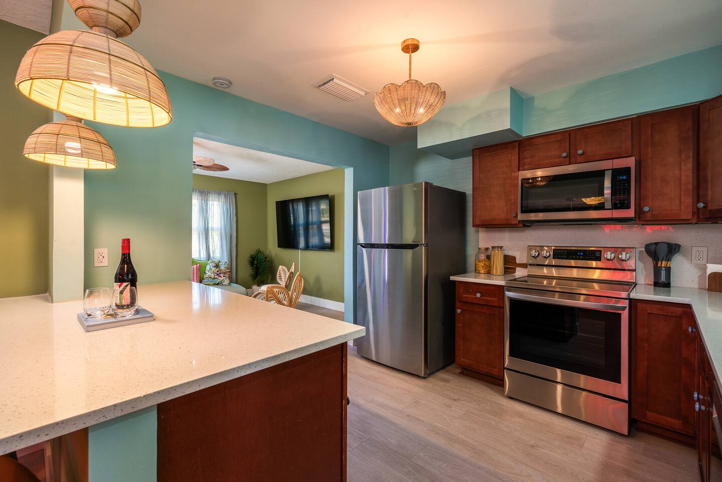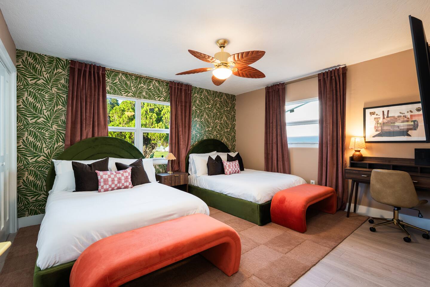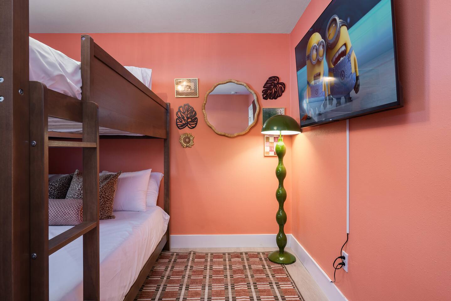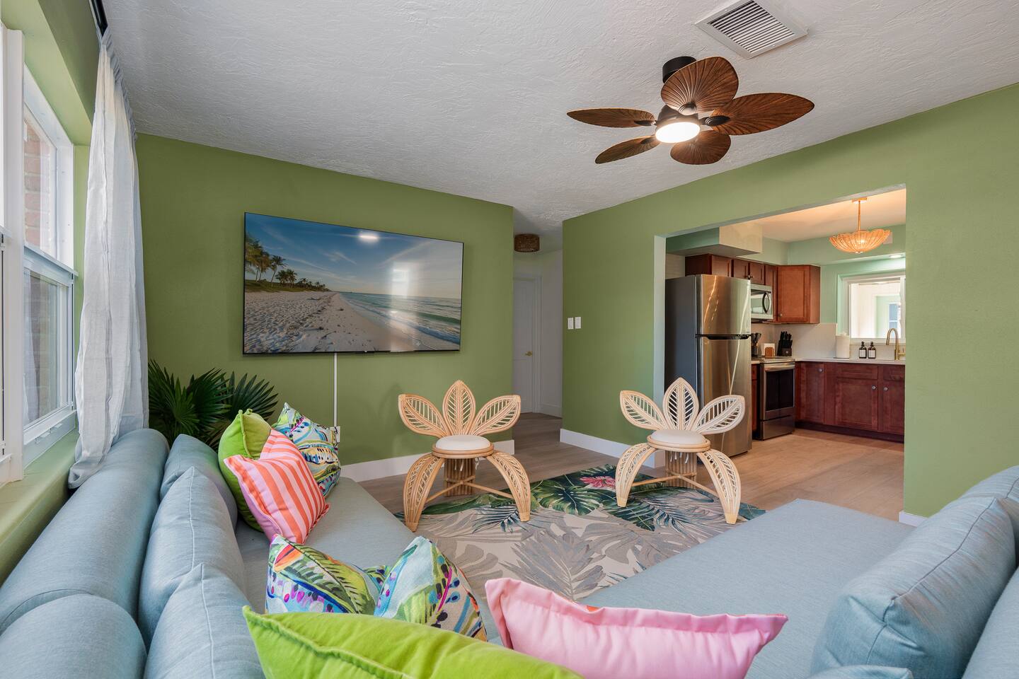 🏡This 4-bedroom/2-bath home offers 6 beds: • 1 King bedroom (connected to Jack n Jill bathroom) • 2 Queen bedroom (connected to Jack n Jill bathroom) • 1 King bedroom • Queen over queen bunk bedroom ⛳ Amenities: • Heated, in-ground pool – swim year-round • Backyard mini-golf course & outdoor bowling • Tiki bar with gas grill for sunset BBQs • Fire pit for cozy evenings under the stars • Sun loungers to soak up the Florida sunshine • Garage game room: pool table, classic Ms. Pac-Man, and many other games & activities ☀️ Family- & Vacation-Ready: • Fully stocked kitchen for easy cooking & entertaining • Towels, linens, and essentials provided • Beach gear and chairs for your Gulf Coast adventures • Pack-and-play crib and high chair included • Activities for kids, teens, and adults – fun for all ages 📍Prime Location & Boating Convenience: • Just 6 minutes to the sugar-white sand beaches of the Gulf Coast • 4 minutes to Belleair Causeway public boat ramp – perfect for boating & fishing • Double-wide driveway can accommodate a small boat and trailer up to 25' total length (including trailer tongue) – ideal for water lovers! • Super close to shopping, dining, and local attractions From poolside fun and backyard games to arcade challenges and boating adventures, this home offers everything you need for an unforgettable Florida getaway. Lounge, play, relax, and make memories with family and friends – your ultimate Largo vacation starts here! 🏝️ Additional Fee Required for Pool Heating • Pool heat: $30/day 📌House Rules Respecting the space ensures a smooth and enjoyable stay. Violation of these rules may result in immediate cancellation without refund: • No parties or events • Quiet hours are from 10 pm-8 am • No unregistered guests • No smoking • No open flames, candles, or matches • No shoes inside the house – cleaning/replacement fees apply for stains • Thermostat must be set between 69°F and 78°F • Keep doors/windows closed to avoid pest entry (Florida is a tropical climate) This home is equipped with outdoor security cameras as well as noise-detection hardware (which does not record audio) that monitors high noise levels. Pet fee: Pet fee is $150 per stay for 1 pet, and $50 per each additional pet. Please limit your pets to 2 total. Breaking any of the house rules—such as having unregistered guests, hosting parties, allowing unregistered pets, engaging in illegal activity, smoking indoors, or violating quiet hours —can and will result in the immediate cancellation of your reservation without a refund. Neighbors are diligent in reporting any violations, so please be respectful of the property, the furnishings, quiet hours, and the neighbors to ensure a positive stay! 😊