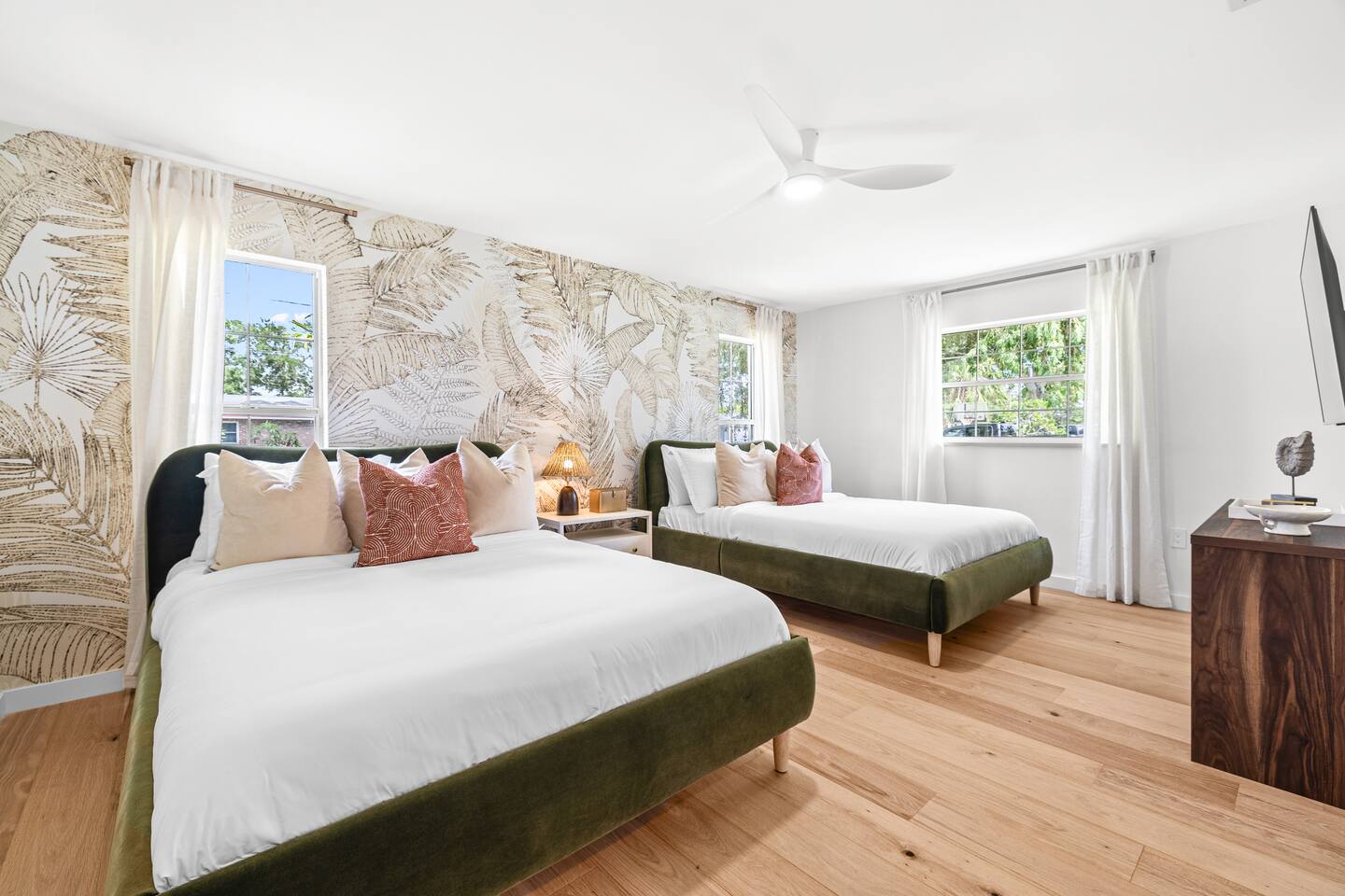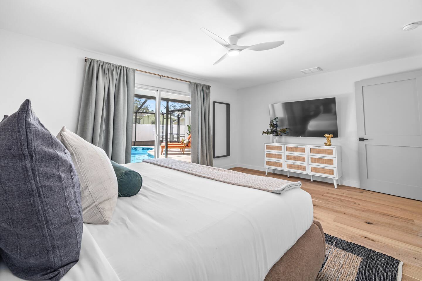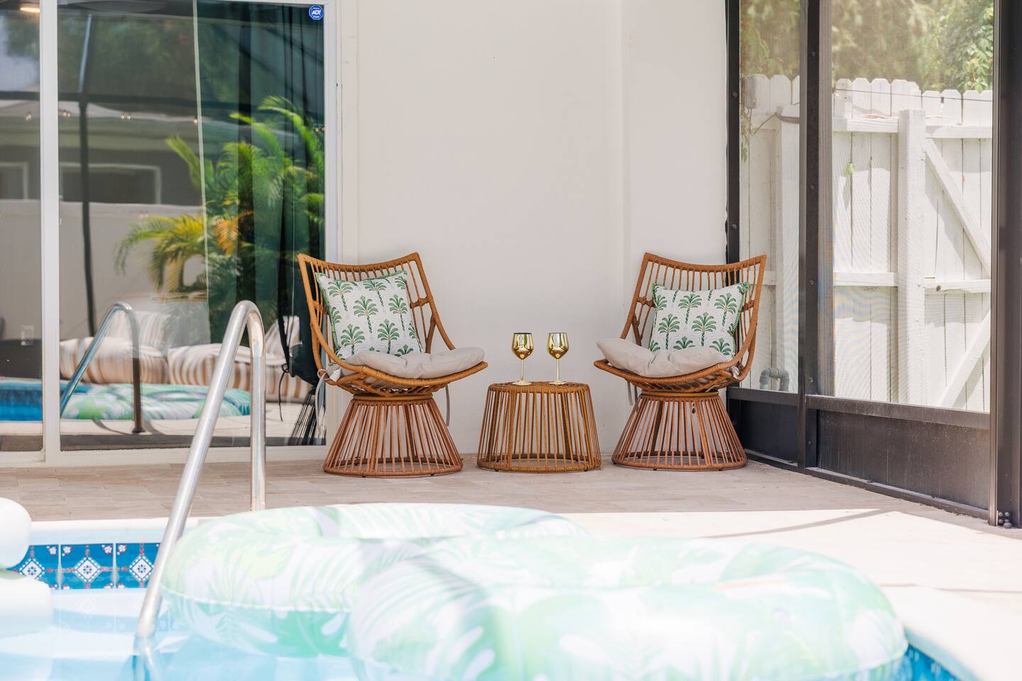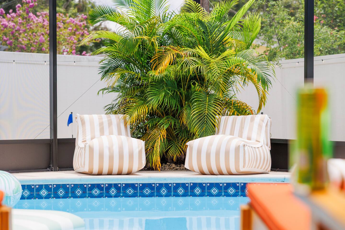 Unwind in style at the Luxe Palms- a modern villa packed with custom design, amenities, and fun! This 4 bedroom, 2 bathroom home can sleep up to 10 people. Enjoy the Florida sunshine in the heated pool, challenge your group to a game of mini golf, make smore's at the firepit or enjoy the world-famous beaches that are just a short drive away. With an indoor game room, spa-like custom designed bathrooms, this home has something for the whole family!