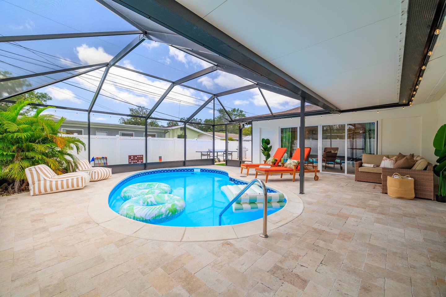 Enjoy some sunshine at this fun-filled home in Largo (15 minutes to the beach!) This 4-bedroom/2-bath home offers 7 beds: • 1 King in a guest bedroom • 2 Fulls in the primary suite • 1 full loft bunk over 1 queen bed in a guest bedroom • 2 queens in the guest bedroom Comfortably sleeps up to 10 guests and is perfect for your Florida getaway! Enjoy a heated pool with loungers, seating, and a grill — perfect for sunny days! ☀️🍹 Play a round of mini golf, Cornhole, or ping pong by the pool. 🎯 At night, roast marshmallows at the firepit or hit the game room for a round of pool and shuffleboard. You're a short drive to the famous white sand beaches — and we’ve got your Beach Kit ready with loungers, umbrella, and cooler! 🌟 Amenities • Yard Games & Board Games • Mini Golf • Billiards Table • Ping Pong • Kids Climbing Wall • Yard Games • Fire pit • Beach Kit (loungers, umbrella, cooler) • Beach Towels • Full Coffee Bar • Smart TVs 🏝️ Heated Pool – Additional Fee Required • Pool heat: $30/day 📌House Rules This home is equipped with outdoor security cameras only for security purposes in the front and back yards, as well as noise-detection hardware (which does not record audio) that monitors high noise levels. Breaking any of the house rules—such as having unregistered guests, hosting parties, allowing unregistered pets🐾, engaging in illegal activity, smoking indoors, or violating quiet hours 🔕—can and will result in the immediate cancellation of your reservation without a refund💸. Neighbors are diligent in reporting any violations, so please be respectful of the property, the furnishings, quiet hours🌙, and the neighbors to ensure a positive stay! 😊 📏 Please Note – House Rules Respecting the space ensures a smooth and enjoyable stay. Violation of these rules may result in immediate cancellation without refund: • No parties or events • Quiet hours are from 10 pm-8 am • No unregistered guests • No smoking • No open flames, candles, or matches • No shoes inside the house – cleaning/replacement fees apply for stains • Thermostat must be set between 69°F and 78°F • Keep doors/windows closed to avoid pest entry (Florida is a tropical climate) We’ve thoughtfully prepared this home to offer both fun and relaxation for your family or group. Enjoy every moment—indoors and out!🙂 The check-in instructions will be sent to you a day before your arrival 📅, so you'll have a clear guide to help with your check-in process 🏡. Similarly, the check-out instructions will be sent a day before your departure 🕒 to ensure a smooth check-out 🚪. If you need an early check-in ⏰ or late check-out 🛏️, please inform us ahead of time so we can check availability. Please note, this request is not guaranteed and depends on availability 🔄. We’re here to ensure you have a comfortable and enjoyable stay! 😊 If you need anything during your time here, don’t hesitate to reach out. Whether it’s recommendations, assistance with the property, or any special requests, we’re just a message away 📱. Pet fee: Pet fee is $150 per stay for 1 pet, and $50 per each additional pet. Please limit your pets to 2 total. Please note, we're happy to help during business hours, but in case of emergencies, we’re available 24/7 🚨. Please take a moment to carefully read the house rules 🏡 and any additional rules that may apply 🔑. These guidelines are in place to ensure a smooth and pleasant stay for everyone. If you have any questions or need clarifications, feel free to message us anytime 📩. We're here to help and make sure everything is clear!🙂